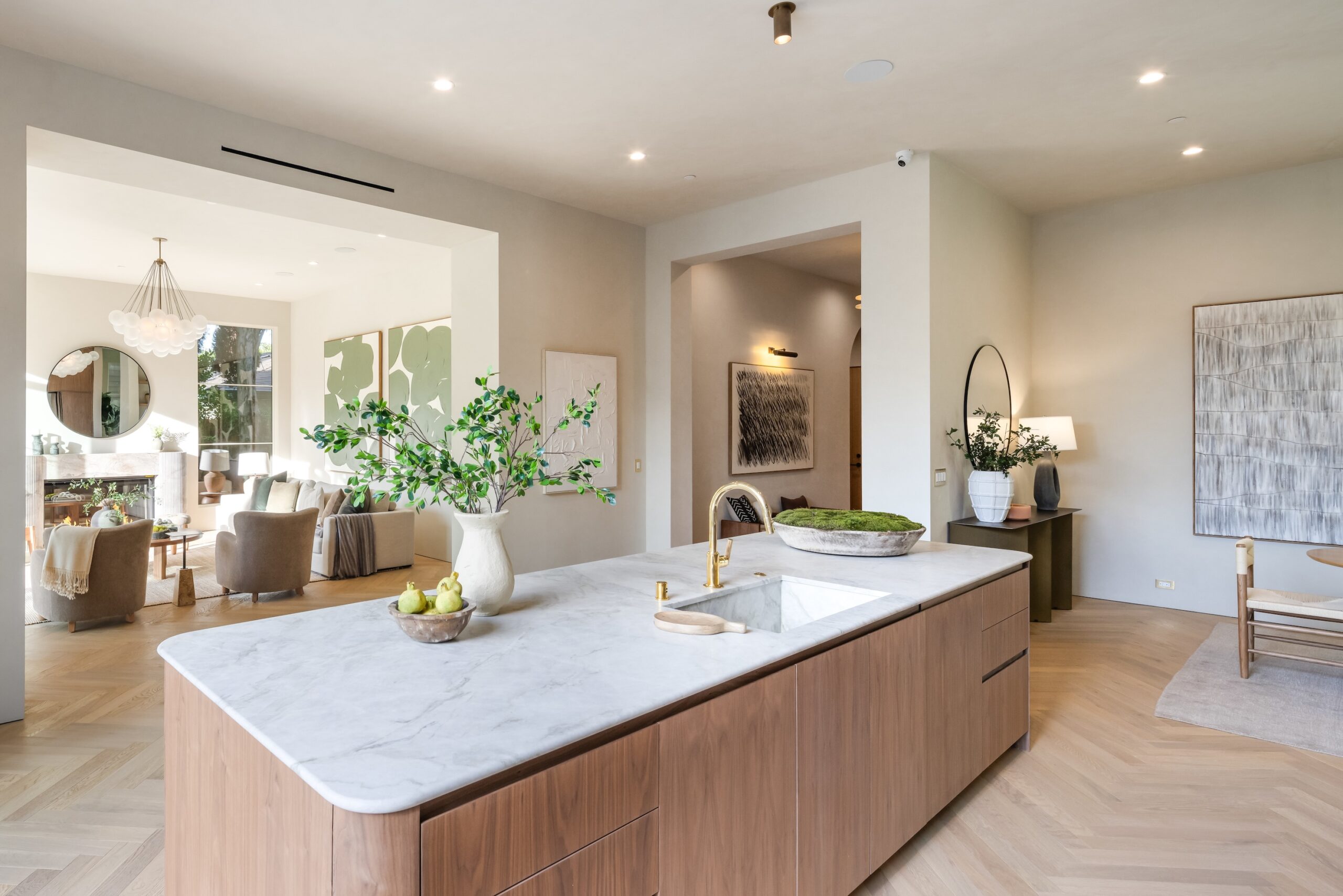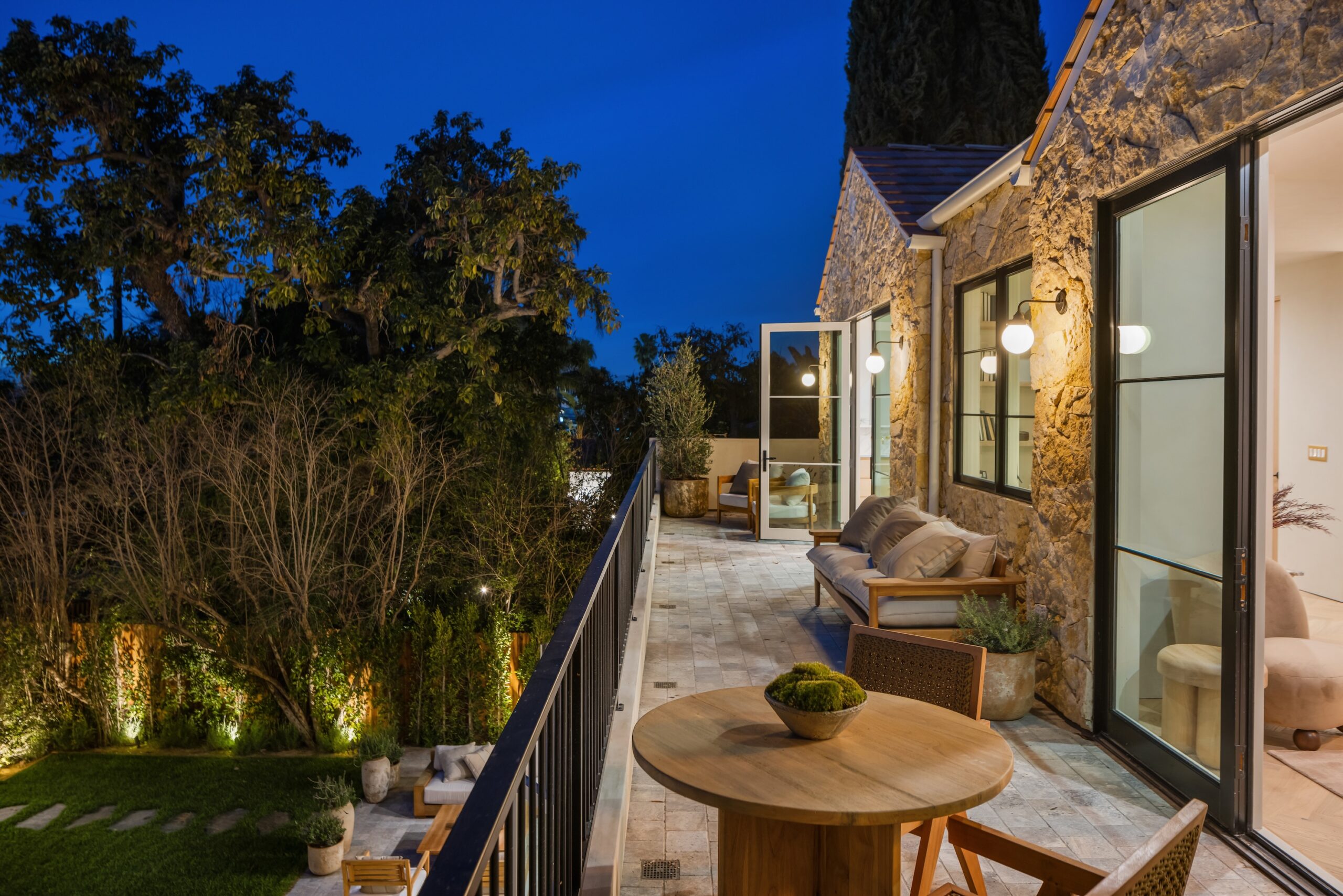string(1823) "4163 Ventura Canyon Ave presents a breathtaking fusion of elegance and contemporary luxury. Tucked behind gates in a lush, private setting, this newly built residence showcases exquisite craftsmanship, warm organic textures, and an effortless indoor-outdoor flow. Step through the grand arched entry into a sunlit interior defined by soaring ceilings, refined plaster walls, and European white oak flooring in a stunning chevron pattern. The open-concept living spaces exude warmth and sophistication, anchored by a chef's kitchen with custom walnut cabinetry, marble countertops, a prep kitchen for additional functionality, and seamless access to the outdoor oasis. The adjoining dining and family room, illuminated by expansive glass doors, extends onto an alfresco lounge overlooking the serene backyard. The primary suite is a private sanctuary, featuring a fireplace, vaulted ceilings, and direct access to a tranquil terrace. The spa-like ensuite is adorned with book-matched marble, dual rain showers, a freestanding soaking tub, and custom oak vanities. Generous secondary bedrooms boast designer finishes and oversized arched windows framing picturesque views. Outside, the meticulously landscaped grounds offer multiple patios, a lush lawn, and a sparkling pool and spa, perfect for entertaining or quiet relaxation. A detached guest house provides additional versatility, ideal for a home office, gym, or retreat. Every detail of this residence reflects an unparalleled commitment to quality and design, creating a home that is as striking as it is inviting. Nestled in a prime Sherman Oaks location, moments from fine dining and upscale shopping, this architectural masterpiece delivers the ultimate California lifestyle. Square footage is as follows: 4,089 Main House; 231 Cabana; 231 Rec Room; Total 4,551SF."