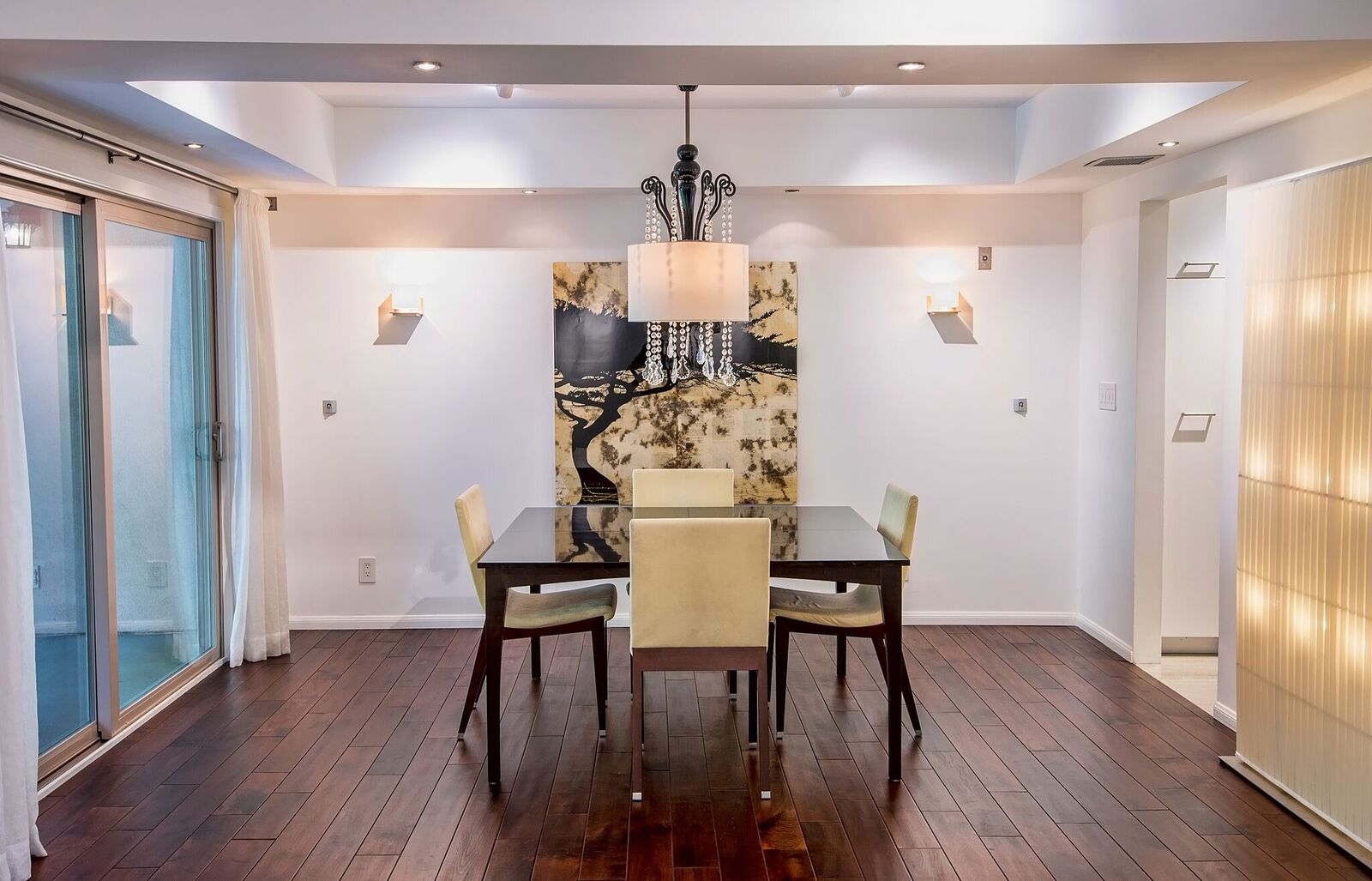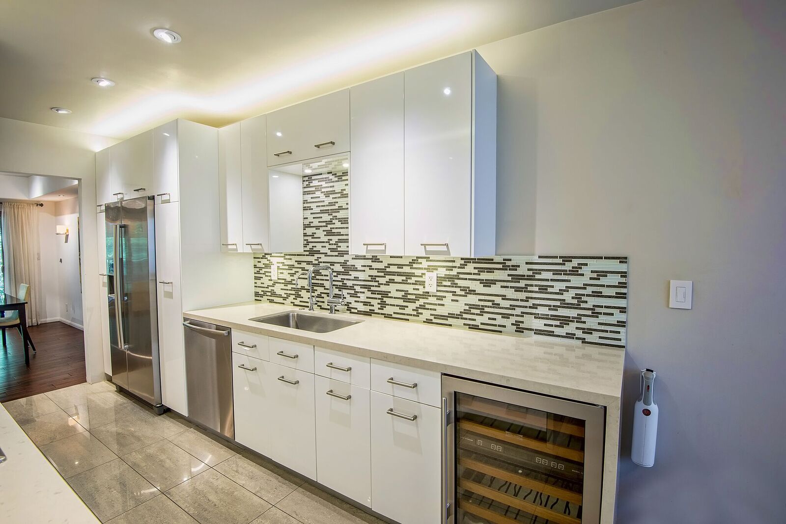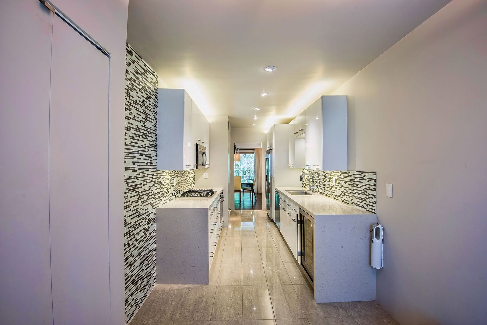 High-end designer done luxury condo in prime Beverly Hills location. Gourmet eat-in Kitchen with custom cabinetry, Caesarstone counters, Bosch stainless steel appliances and dual-zone Sub Zero wine refrigerator. Walnut wood flooring, and oversized balcony. Large Master bedroom suite with custom closets. Modern master bath with Karol cabinetry and Fantini fixtures. Separate guest powder room. Close to world-class shopping and trendy restaurants. In unit laundry with Bosch Washer/dryer. Low Homeowners dues that include earthquake insurance and strong reserves and 2 parking spaces. All offers will be reviewed as they come in, priced to sell immediately.