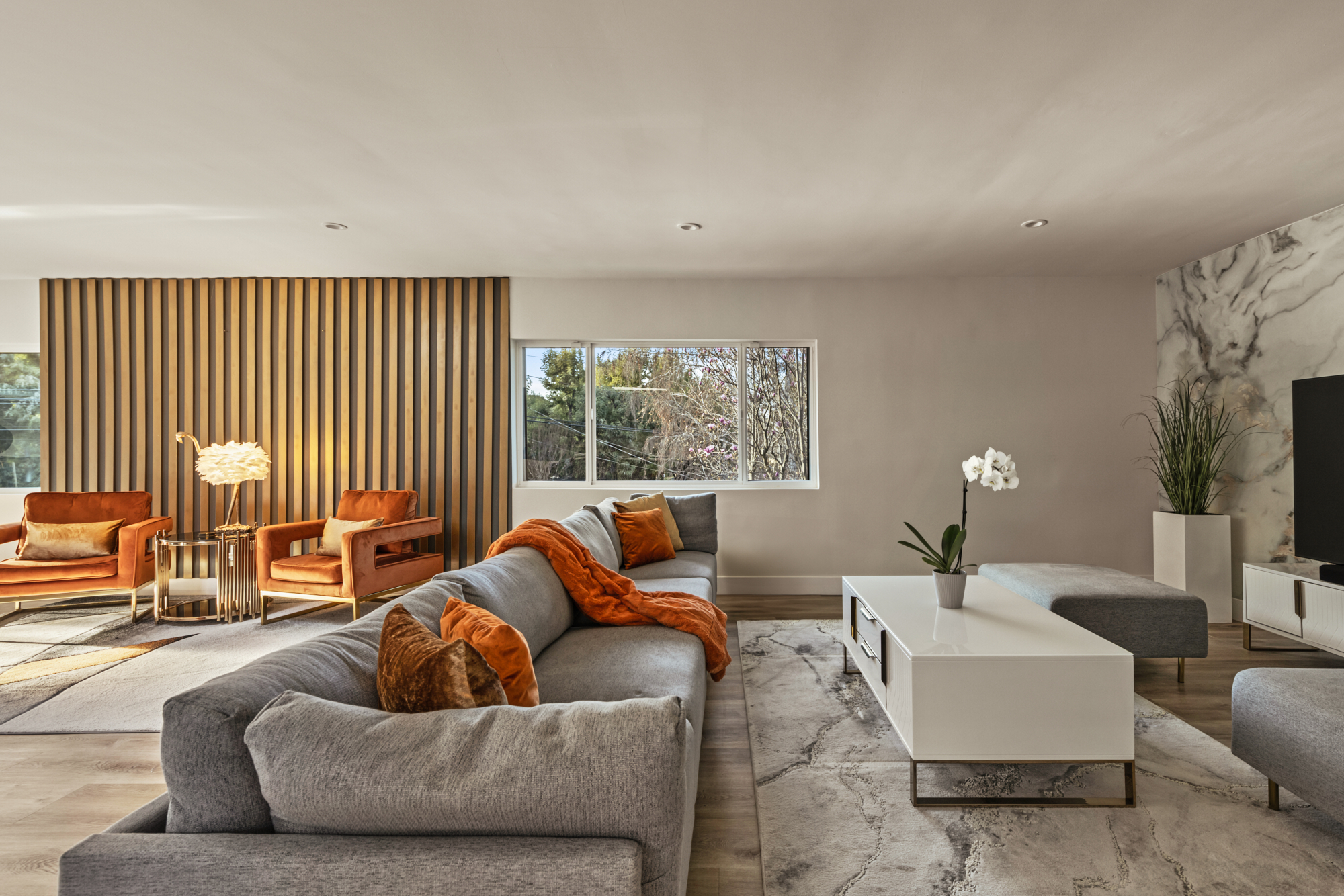 string(1106) "This exceptional single-story mid-century modern home in Woodland Hills sits on over half an acre along coveted Natoma Ave., where the street meets scenic hiking trails and the elevated setting provides privacy along with sweeping views of the hills and valley. Inside, double doors open to sun-filled spaces enhanced by expansive windows and skylights, leading to an open-concept living area designed for both style and comfort. The chef's kitchen features high-end appliances, a generous waterfall island, and refined finishes, flowing seamlessly into the living and dining areas anchored by a custom wine bar. The spacious primary suite offers a peaceful retreat with a walk-in closet and spa-like bath, while three versatile secondary bedrooms capture natural light and beautiful views. Outside, the resort-like backyard becomes an unforgettable highlight, complete with a sparkling pool, cascading waterfalls, ample lounging and gathering zones, multiple vantage points, a fire pit, bocce court, and lush landscaping is an ideal setting for effortless indoor-outdoor living and memorable entertaining."
