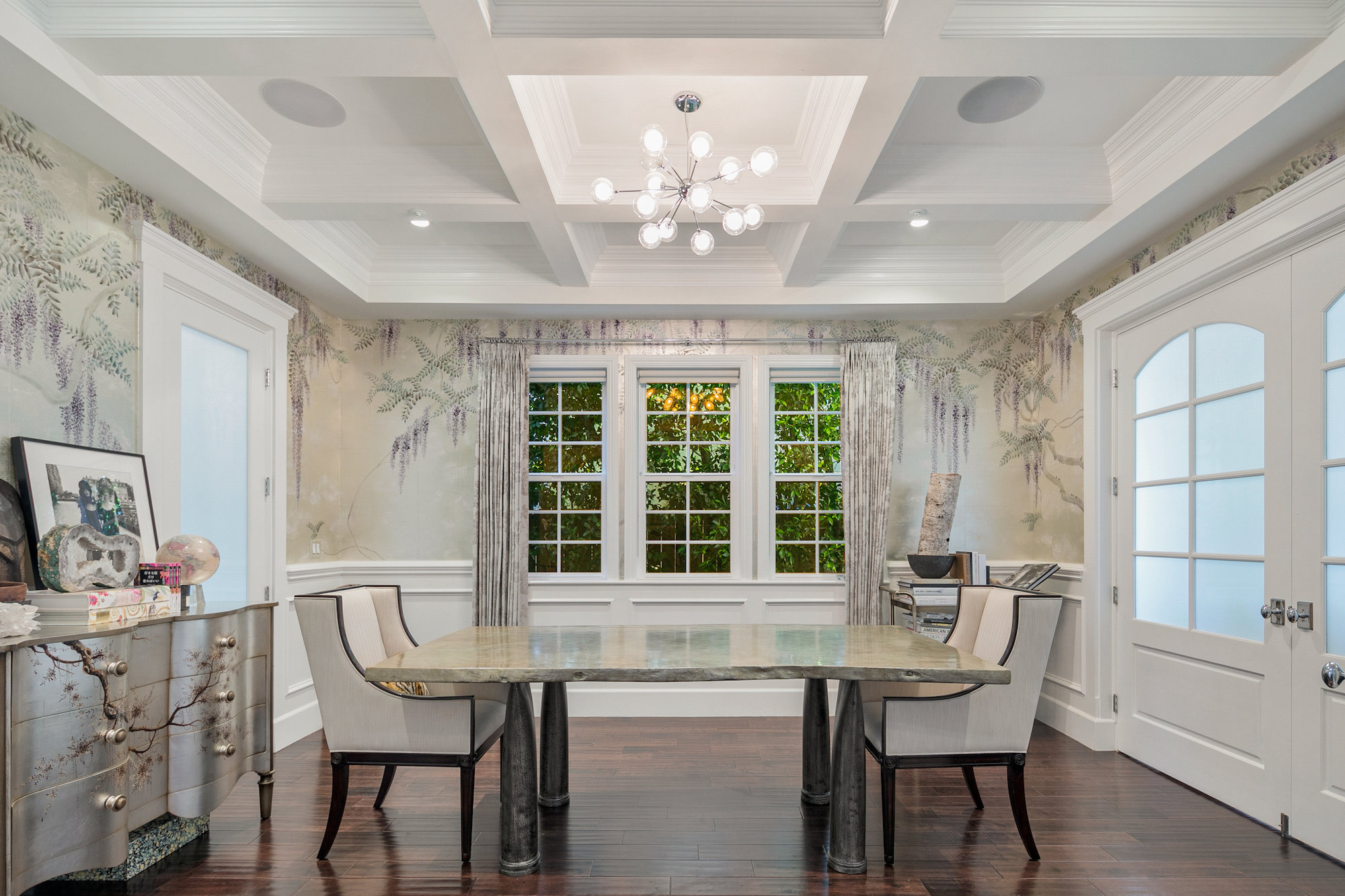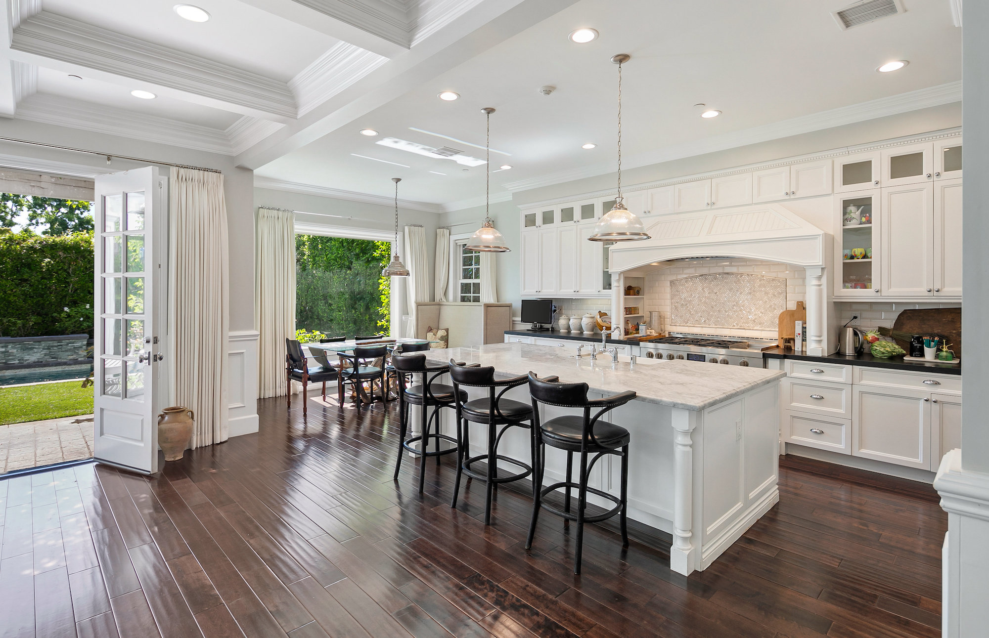 East Coast Traditional home located in the heart of Sherman Oaks. Completed in 2013, richly appointed and with abundant natural light throughout, this home offers the finest in casual yet luxurious living. 5 bedrooms and 5 1/2 baths + library/office with impressive high coffered ceilings and open hallways create an ambiance and openness that must be experienced. Floor plan with finest amenities and details, exquisite finishes, gourmet kitchen with professional appliances, extensive primary suit with sitting area, sumptuous primary bath and balcony off bedroom. Spectacular grounds feature heated pool with waterfall and spa. Surround sound and alarm system throughout the property. All important spaces flow seamlessly together and to the outdoors for the ideal Sherman Oaks lifestyle. Close to the Ventura Blvd shops and restaurants.