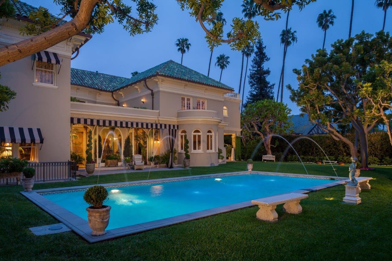 The Altman Brothers' just listed a Los Angeles Landmark known as Los Tiempos or the Dorothy Chandler Estate, famous for its residents, architecture, guests, events, and location. Local residents may recognize this name because of Dorothy Chandler Pavilion, located in Downtown Los Angeles. The music hall was named after Chandler, who took lifelong residency on Lorraine Boulevard, for being one of the most influential cultural philanthropists in Los Angeles and American history. She became a significant social and political force strong enough to save the Hollywood Bowl in 1950, when it closed due to a financial crisis, because of the unique combination of her passion for supporting the arts and higher education, her husband Norman Chandler — publisher of the Los Angeles Times 1945 to 1960 and the estate later coined The White House of the West for its presidential guests like Eisenhower, Kennedy, Johnson, and Nixon. In 1964 Time Magazine praised Chandler for her fundraising as "perhaps the most impressive display of virtuoso money-raising and civic citizenship in the history of U.S. womanhood." The estate, its lavishly appointed music room and it's almost acre of grounds were often the venue for her philanthropic passion which leads to it being registered as a Historic-Cultural Monument in 2004. The landmark estate is a classic example of American Beaux Arts architecture, an academic neoclassical style heavily influenced architecture in the US from 1880 to 1920. At the time of its conception in 1913, the estate was already receiving notoriety for its design by renowned architects J. Martyn Haenke, William Dodd, and Julia Morgan of Hearst Castle fame. The trophy residence is displayed in the historic Windsor Square, a residential development that has grown since its beginnings in 1911 when the prominent financier, George A.J. Howard, envisioned a beautiful tranquil park as a setting for upscale family homes. As a result of its expensive deed minimum — at the time an enormous amount of $12,550 per home, many outstanding architects designed homes for the area just east of Hancock Park, including Paul Williams and A.C. Martin. Many of the city's elite owned property in Windsor Square including Oil magnate John Paul Getty who bought a property on Irving Blvd that is now Los Angeles's official mayor's residence. The area was designated a City of Los Angeles Historic Preservation Overlay Zone on September 29, 2004. Since then the estate underwent a major five-year restoration and upgrade by the current owners. The current owners added a Creston control system, new plumbing system (with soft water system & filter), new drainage, new sewer line, updated electrical system, new roofs and copper gutters, hand-made, carved custom cabinetry throughout, 400 year old French limestone floors in kitchen, security cameras, new alarm system, new swimming pool with Ozone system, new landscaping, new irrigation system, outdoor lighting and countless other major upgrades.
