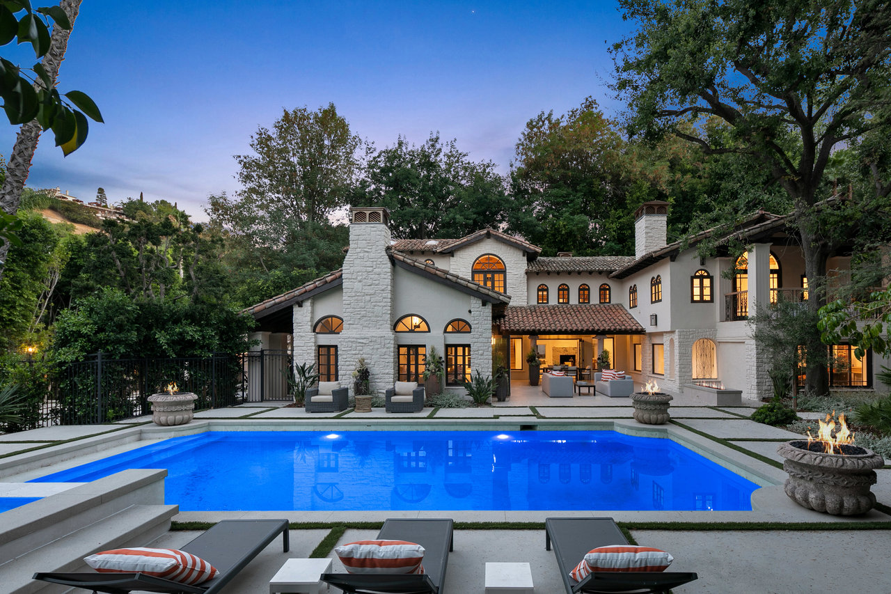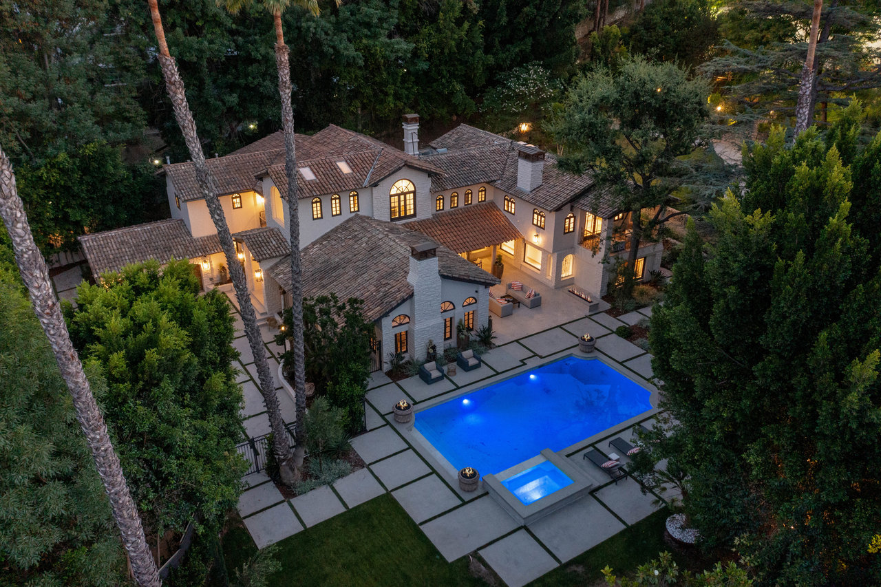 string(1182) "Located South of Ventura Blvd, in the heart of Encino, this magnificent Mediterranean home has been tastefully remodeled from head to toe. Spread over 1.14 Acres, with lush gardens, pool and a fully floodlit basketball court, the property resonates the feeling of living in a dream compound. Drive through your private gates to a parking forecourt for at least 6 cars and a separate 2 car garage, you are then greeted by an expansive ~7,250 Sq Ft home, comprising 6 Beds, and 8 baths. Soaring ceilings in the living and family room create the perfect setting for entertaining and hosting. The fully fitted kitchen is decked out with Miele appliances, a unique 6 burner stove top with pot filler, dishwasher, double oven, microwave, and cappuccino machine, and plenty of cabinet space and storage. The Primary bedroom is located in its own wing of the house, with spa like amenities in the bathroom, along with a large balcony over looking the pool. Four other bedrooms are located in the main house, in addition to a screening room, dedicated laundry room, and office. The property is located moments from Ventura Blvd, and all the amenities and restaurants the Valley has to offer."