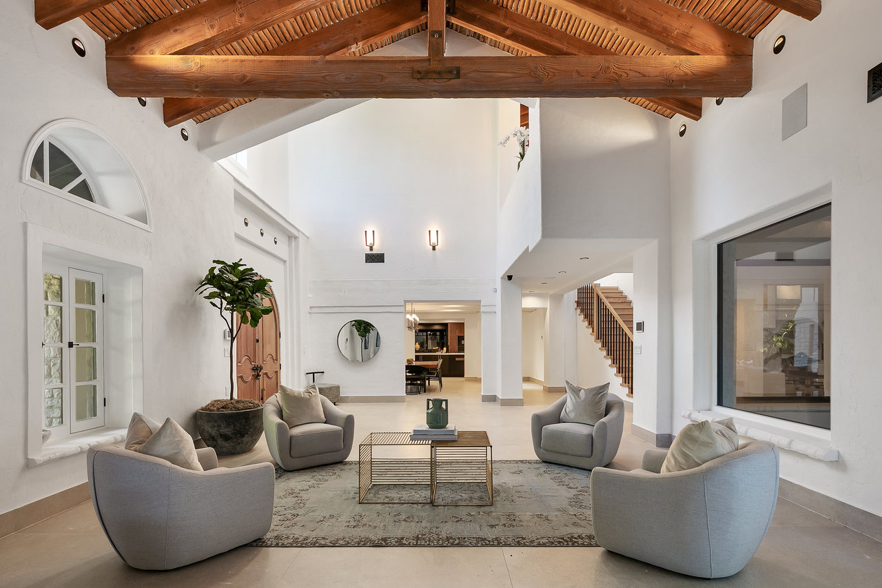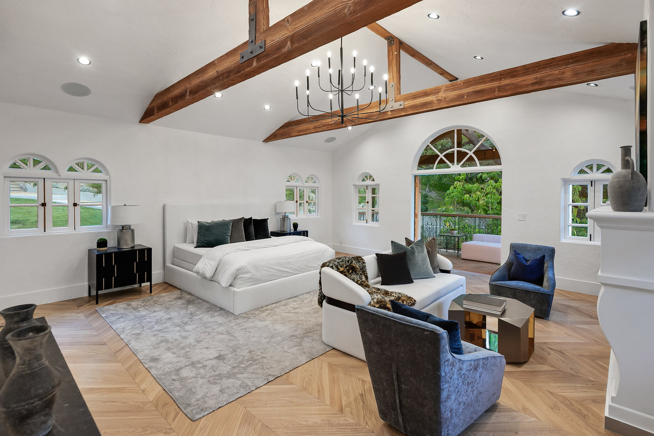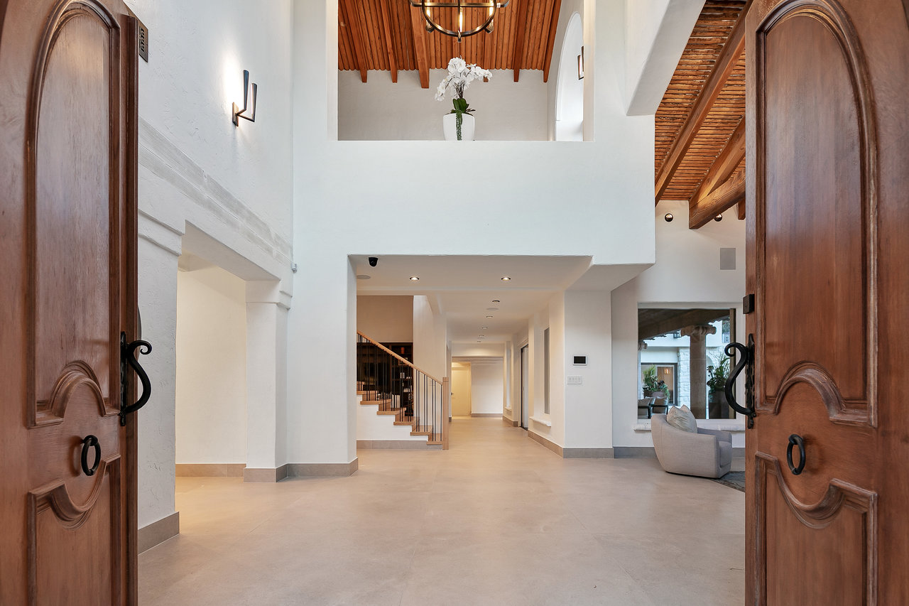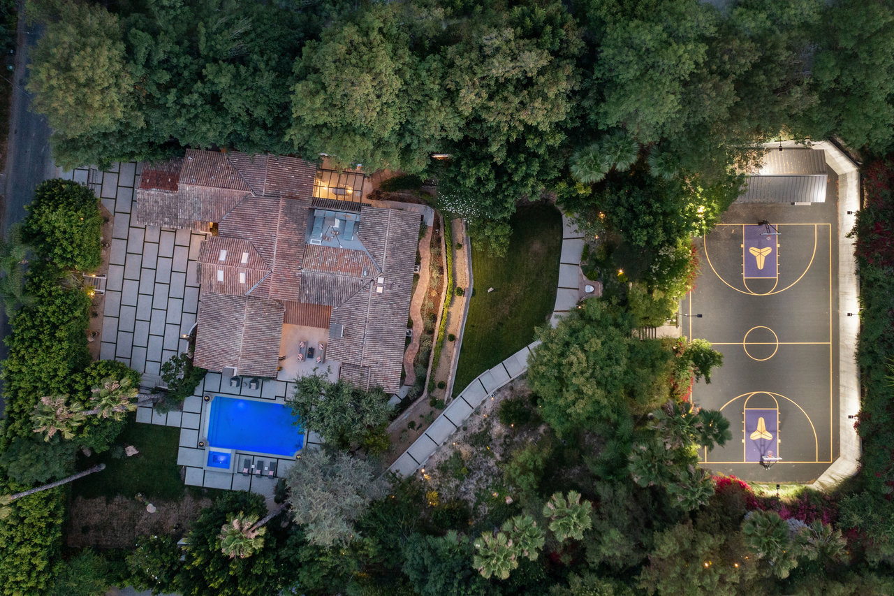 Located South of Ventura Blvd, in the heart of Encino, this magnificent Mediterranean home has been tastefully remodeled from head to toe. Spread over 1.14 Acres, with lush gardens, pool and a fully floodlit basketball court, the property resonates the feeling of living in a dream compound. Drive through your private gates to a parking forecourt for at least 6 cars and a separate 2 car garage, you are then greeted by an expansive ~7,250 Sq Ft home, comprising 6 Beds, and 8 baths. Soaring ceilings in the living and family room create the perfect setting for entertaining and hosting. The fully fitted kitchen is decked out with Miele appliances, a unique 6 burner stove top with pot filler, dishwasher, double oven, microwave, and cappuccino machine, and plenty of cabinet space and storage. The Primary bedroom is located in its own wing of the house, with spa like amenities in the bathroom, along with a large balcony over looking the pool. Four other bedrooms are located in the main house, in addition to a screening room, dedicated laundry room, and office. The property is located moments from Ventura Blvd, and all the amenities and restaurants the Valley has to offer.