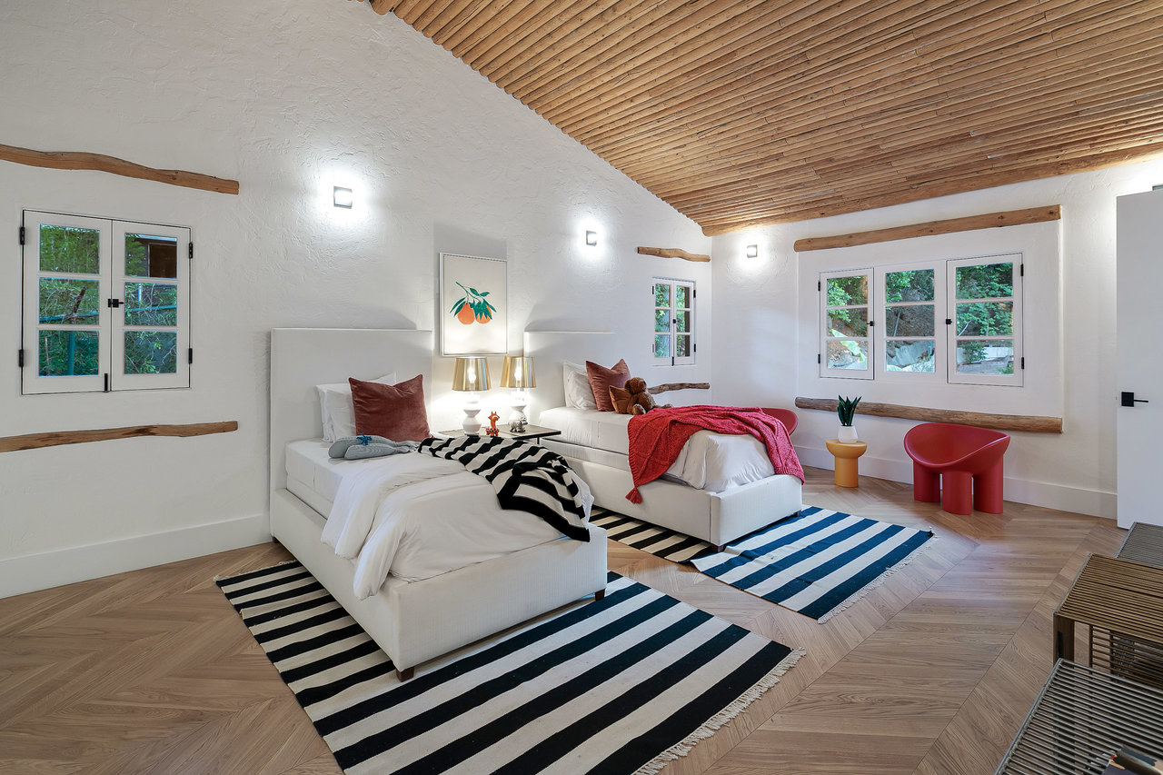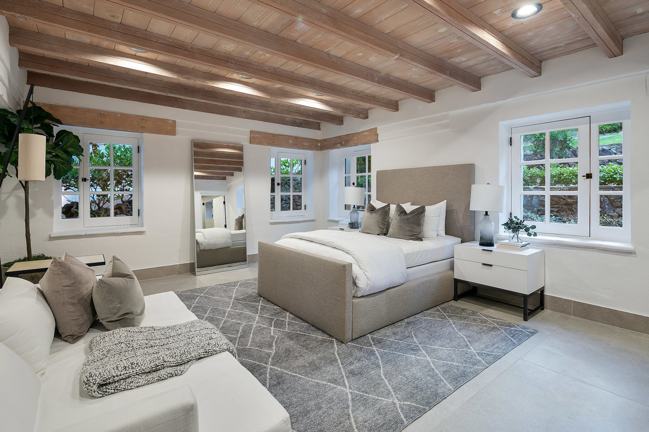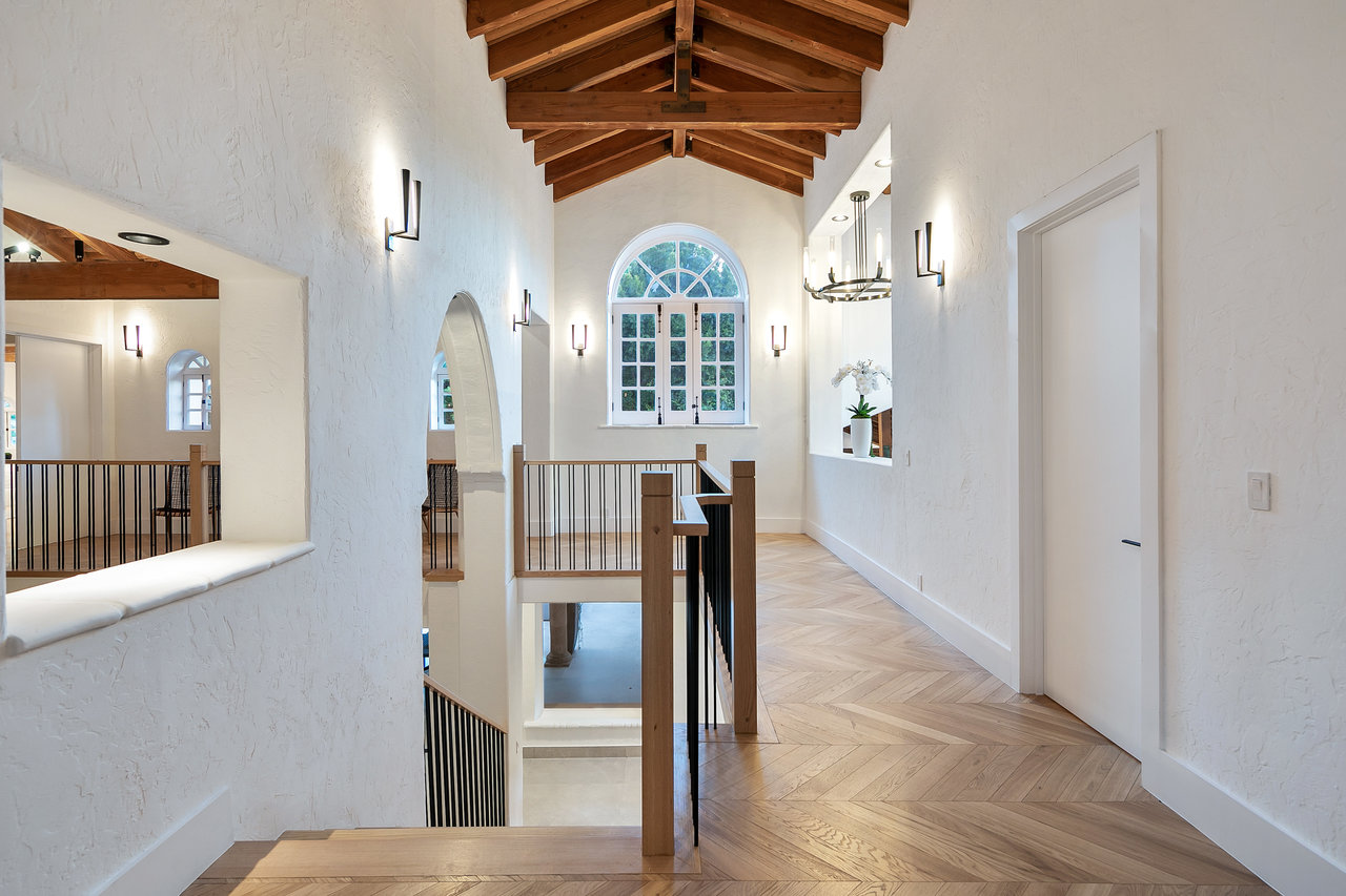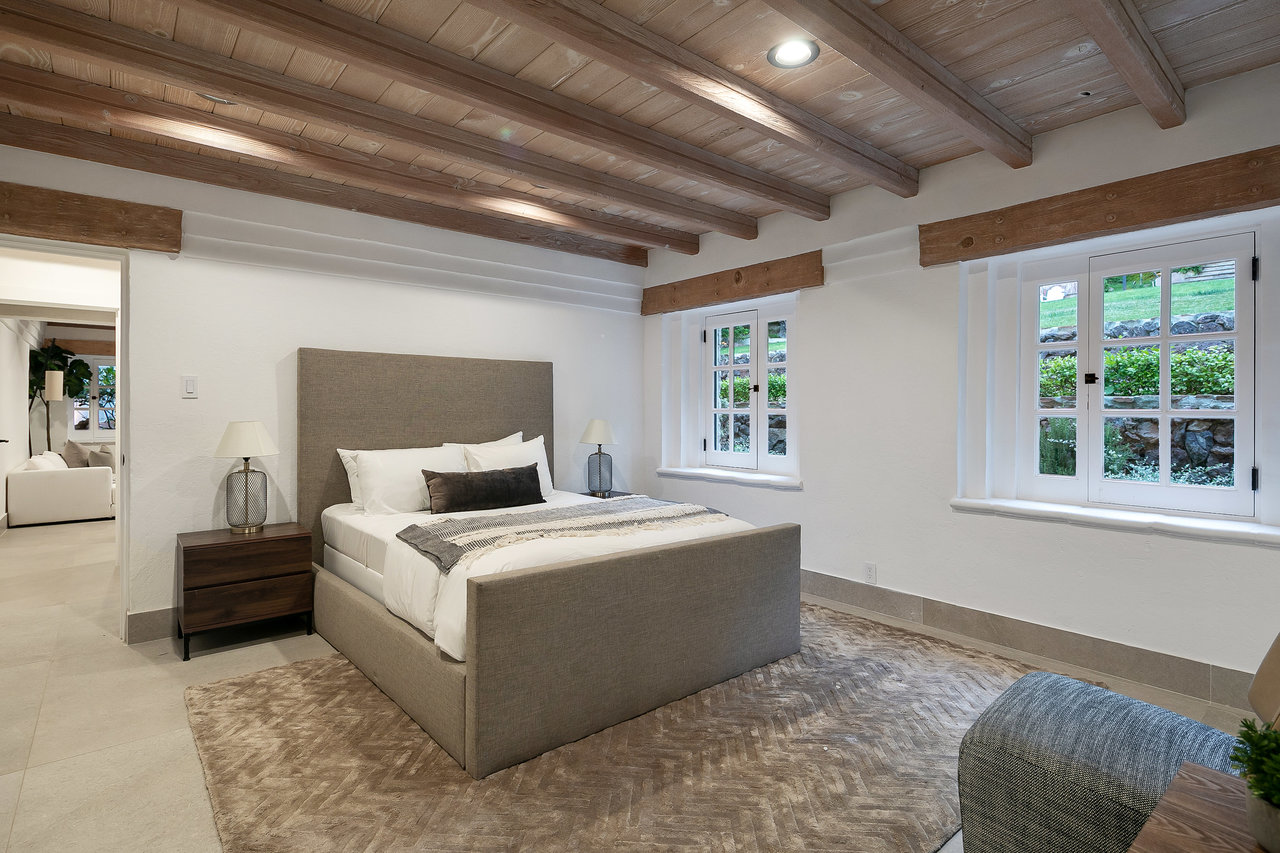 Located South of Ventura Blvd, in the heart of Encino, this magnificent Mediterranean home has been tastefully remodeled from head to toe. Spread over 1.14 Acres, with lush gardens, pool and a fully floodlit basketball court, the property resonates the feeling of living in a dream compound. Drive through your private gates to a parking forecourt for at least 6 cars and a separate 2 car garage, you are then greeted by an expansive ~7,250 Sq Ft home, comprising 6 Beds, and 8 baths. Soaring ceilings in the living and family room create the perfect setting for entertaining and hosting. The fully fitted kitchen is decked out with Miele appliances, a unique 6 burner stove top with pot filler, dishwasher, double oven, microwave, and cappuccino machine, and plenty of cabinet space and storage. The Primary bedroom is located in its own wing of the house, with spa like amenities in the bathroom, along with a large balcony over looking the pool. Four other bedrooms are located in the main house, in addition to a screening room, dedicated laundry room, and office. The property is located moments from Ventura Blvd, and all the amenities and restaurants the Valley has to offer.