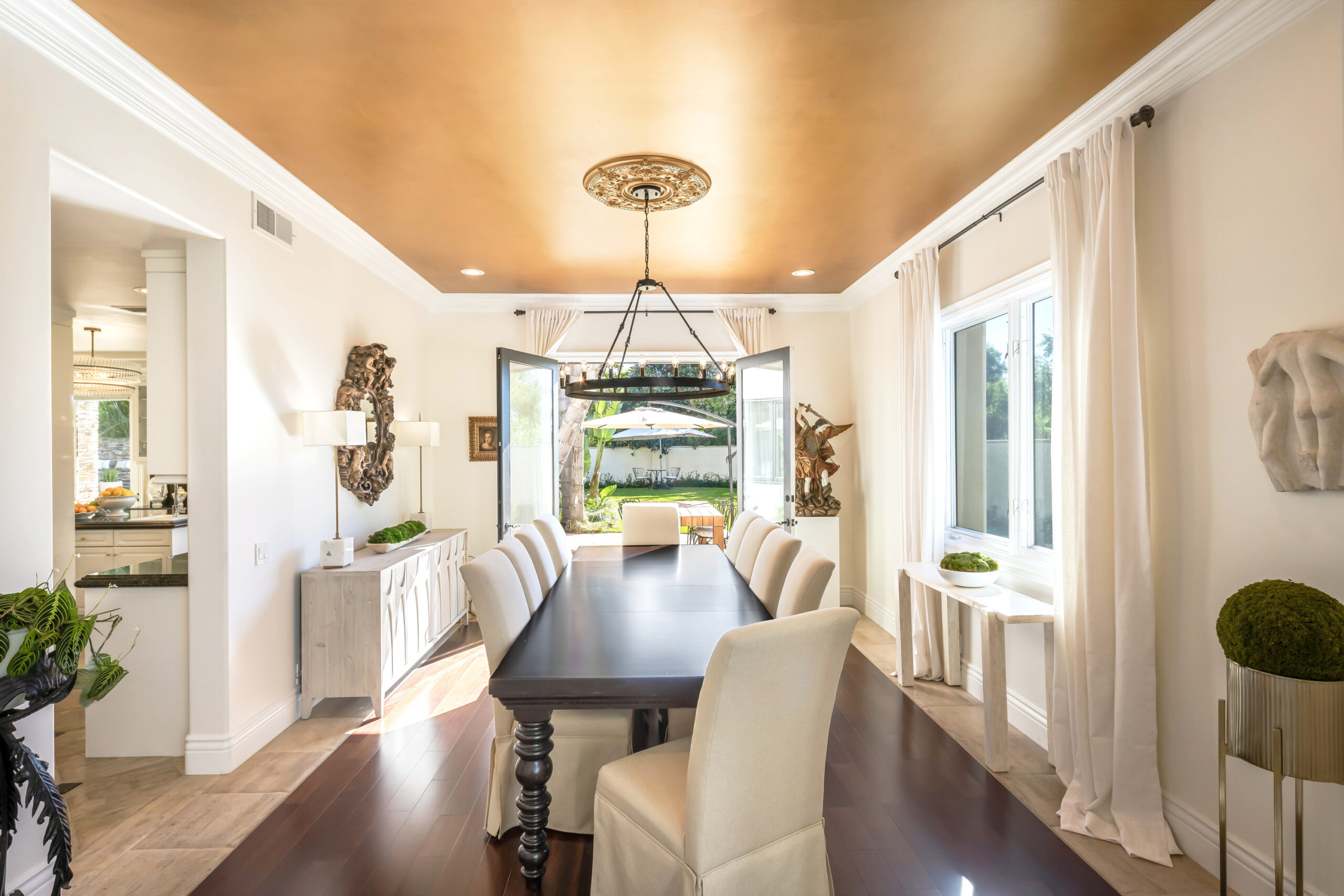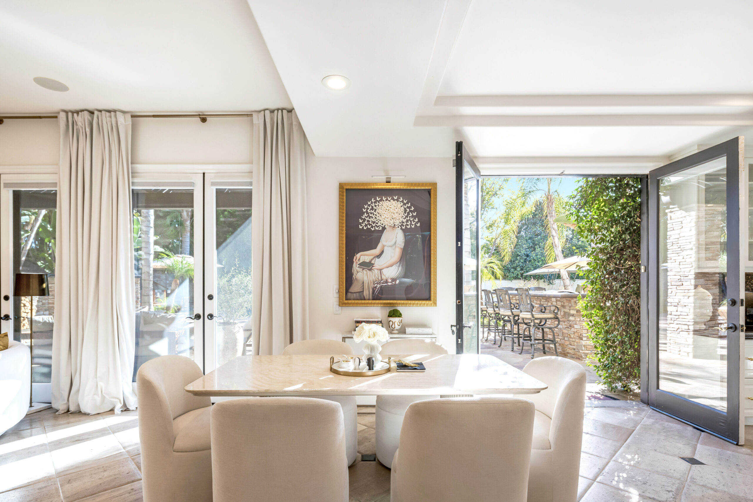 string(1763) "This architectural masterpiece, nestled in the prestigious cul-de-sac enclave of The Heights, offers unparalleled privacy and tranquility. Crafted with entertainment in mind, the residence features a spacious open floor plan, highlighted by soaring ceilings and oversized windows. This estate, formerly home to three notable celebrities, features a personal touch from Tupac Shakur, who etched lyrics into the backyard cement. A long, private driveway leads to ample parking, accommodating a fleet of vehicles. The gourmet chef's kitchen boasts new state-of-the-art Italian appliances, a coffee bar, and a walk-in pantry. Set on an acre of land, the sun-drenched backyard showcases a stunning pool and spa, multiple seating areas, a gas fireplace, and a well-appointed outdoor kitchen, complete with a wet bar, ice maker, refrigerator, grill, warming oven, stove, and an additional sink. The main level includes a formal dining room, a spacious family room with French doors opening to the backyard, a downstairs ensuite bedroom, and a generously sized office. A grand, sweeping staircase ascends to the luxurious primary suite, which features a fireplace, a private sitting area, a balcony, and a walk-in shoe closet. The spa-inspired bathroom offers a steam shower, a deep jetted tub, a cozy fireplace, an expansive marble vanity, and a chandelier. The suite is further enhanced by floor-to-ceiling mirrored entrances that lead to two large, separate walk-in closets. The upper level is completed by four additional bedrooms and a spacious landing area. The estate is surrounded by lush, tropical landscaping and features a pool, spa, outdoor barbecue area, and wet bar perfect for outdoor entertaining. Don't miss the opportunity to own this incredible estate."