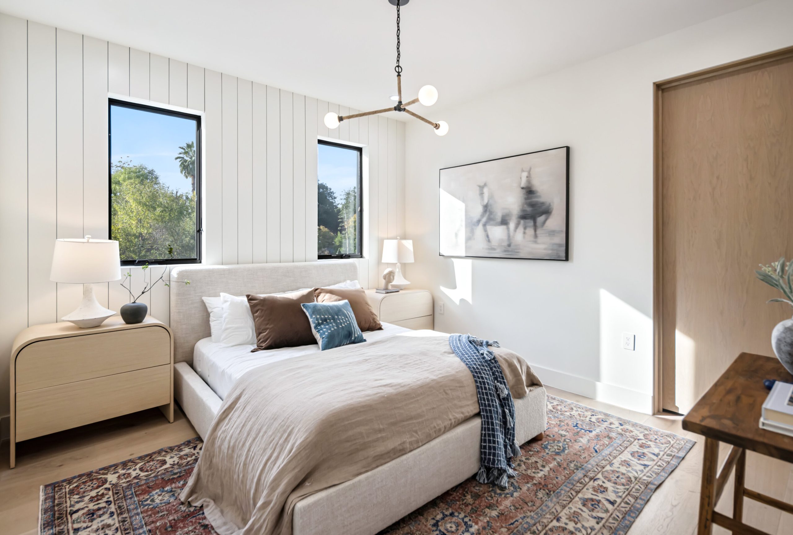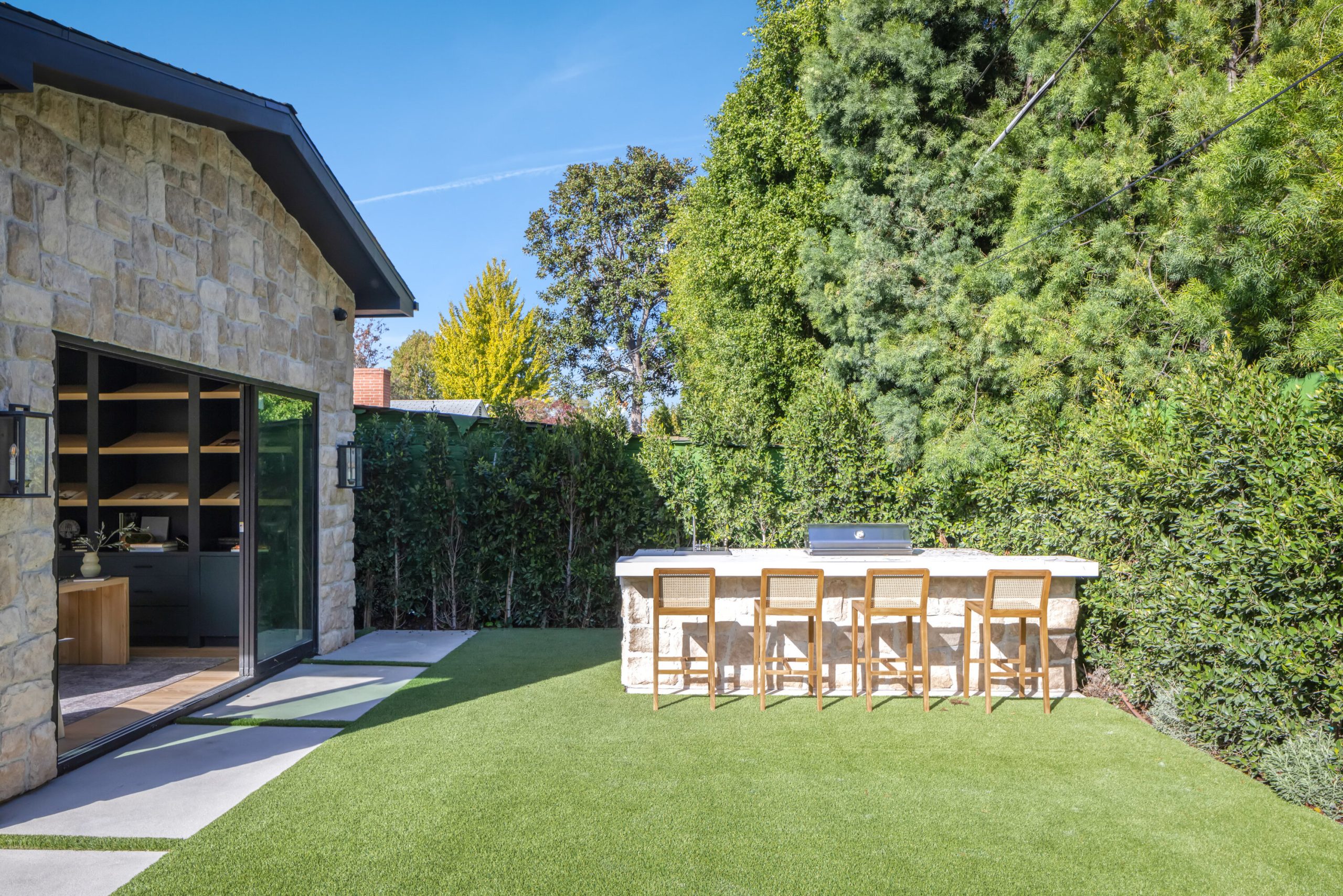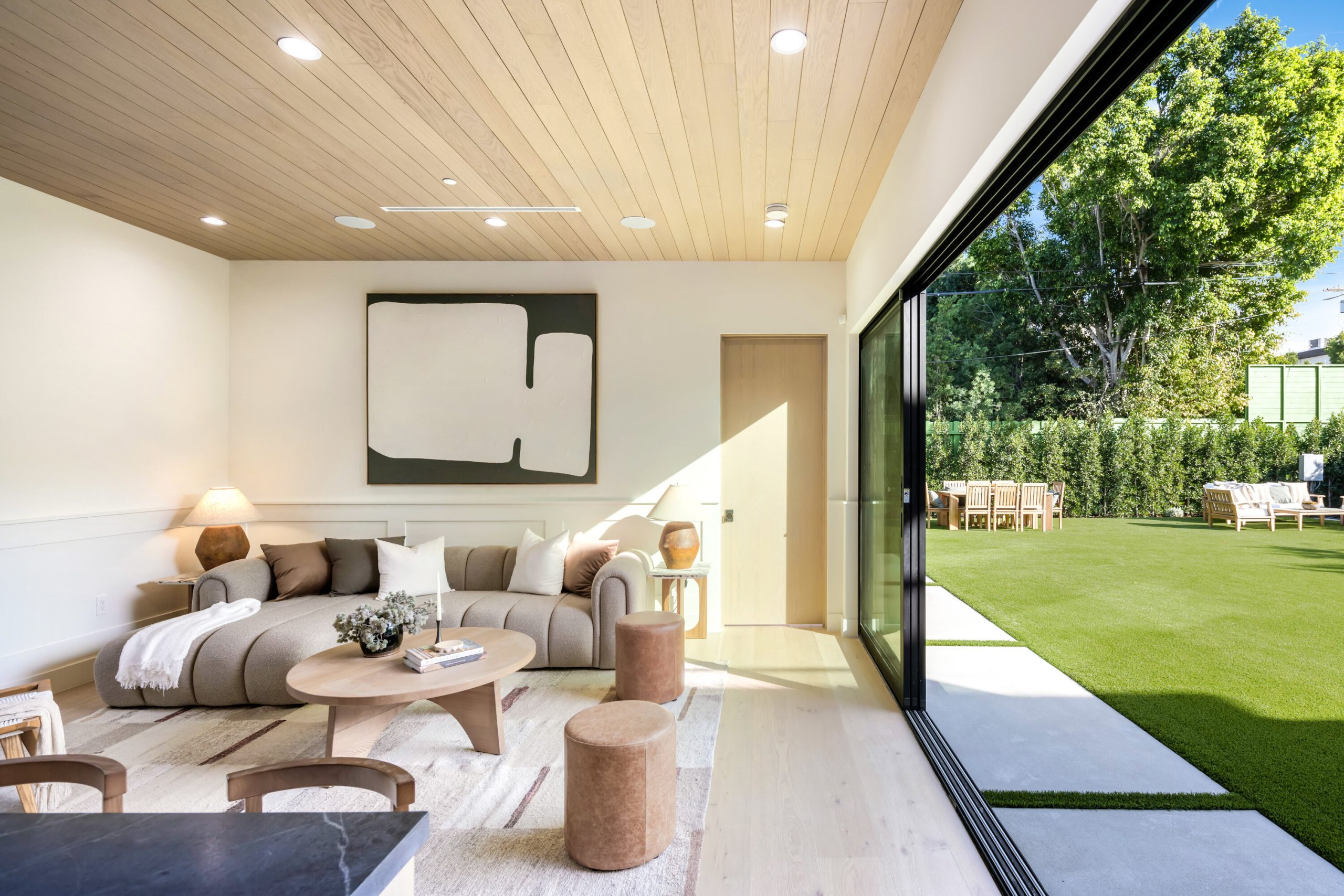 A striking statement in farmhouse luxury, this newly built estate with a detached ADU/guest house rests on a generous lot in the heart of Valley Village. Crafted for both everyday comfort and sophisticated entertaining, the open-concept main living space is centered around a chef's kitchen outfitted with premium Thermador smart appliances and an expansive island with seating. A formal dining area and spacious living room complete the main level, highlighted by an oversized sliding glass door that opens wide for seamless indoor-outdoor living.Step outside to discover a private backyard oasis featuring a sparkling pool and spa, framed by low-maintenance artificial turf that invites relaxation and play. Upstairs, four ensuite bedrooms provide ample retreat, complemented by a dedicated laundry room. The refined primary suite offers a private balcony, custom walk-in closet, and spa-inspired bath with soaking tub, rainfall shower, and dual vanity.The attached ADU, with its own private entrance, presents a versatile living arrangement with a comfortable lounge, kitchenette, two bedrooms, and two bathrooms ideal for extended family, guests, or a home office. Additional highlights include a multifunctional media room, soaring ceilings, a two-car garage, and a Control4 smart home system with integrated speakers, Nest thermostat, and security cameras.Perfectly positioned within the highly regarded Colfax School District, this property is just moments from the vibrant dining, shopping, and entertainment and Ventura Boulevard.