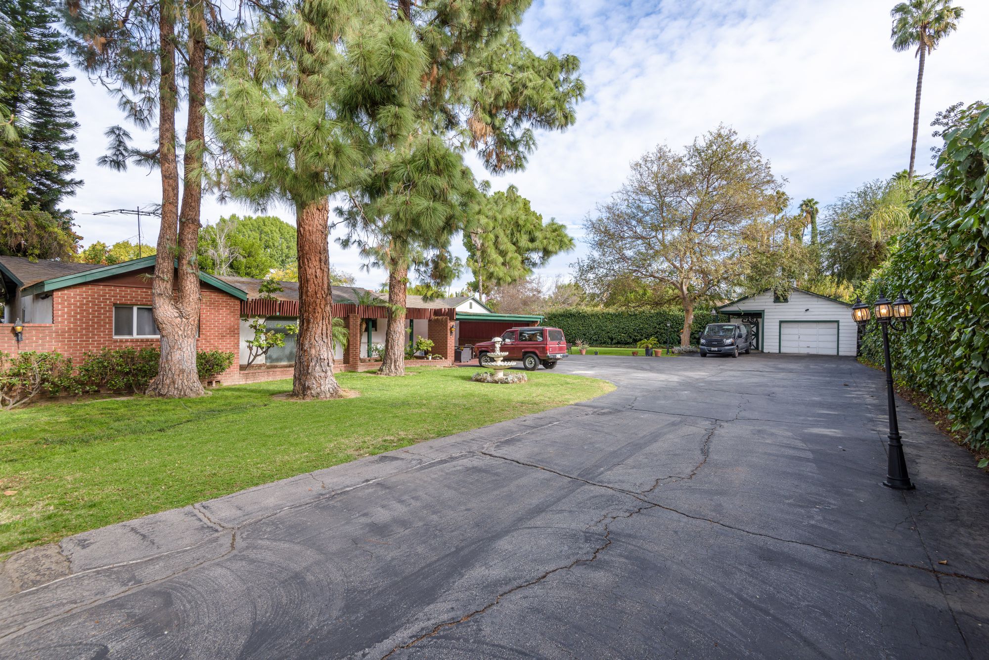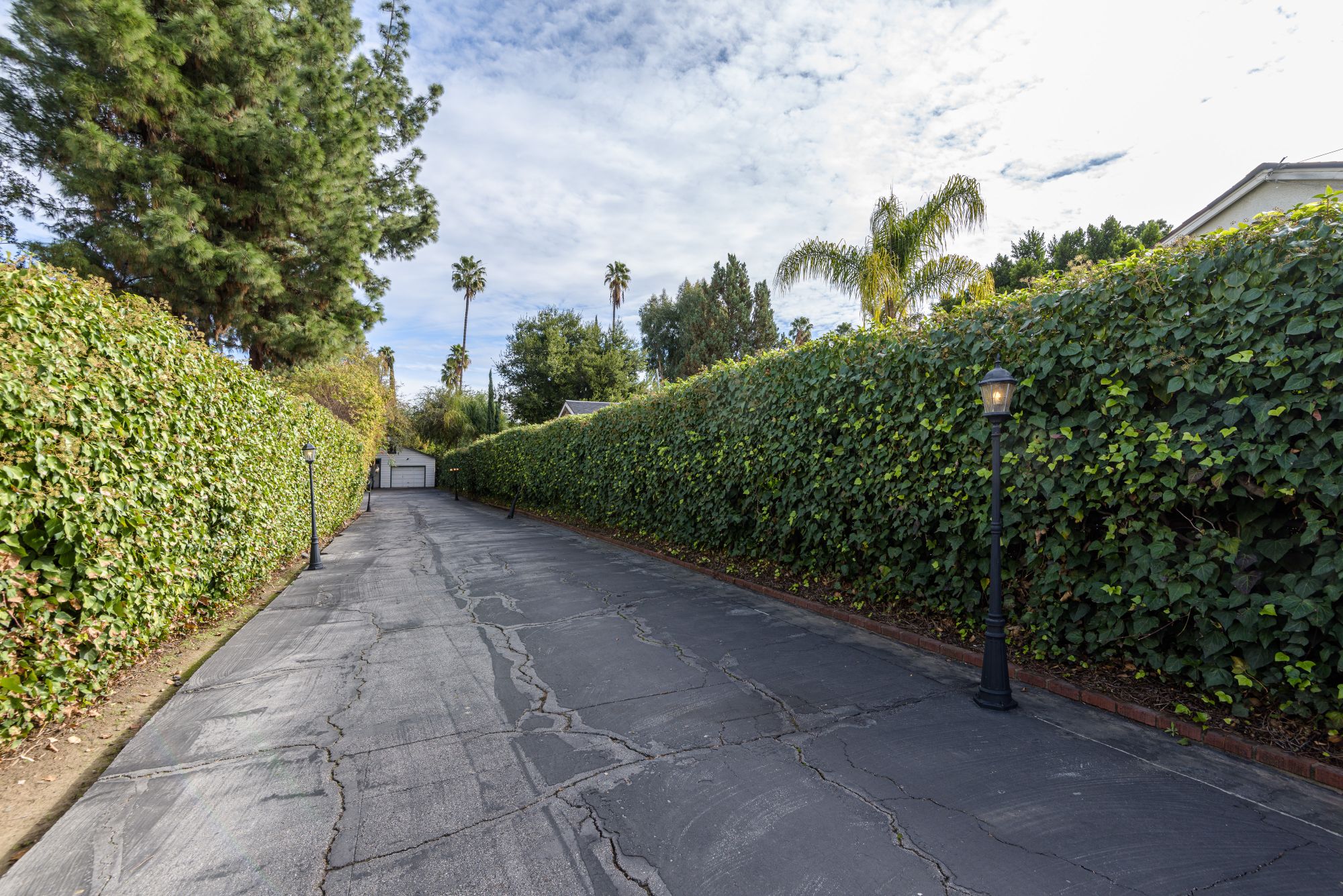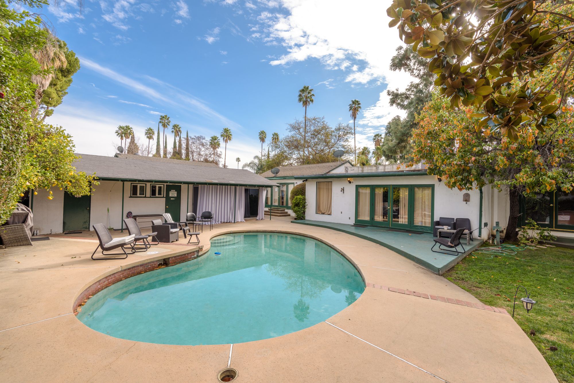 This private, gated estate is the perfect opportunity to develop with an ample lot size and the availability to adjoin the buildings on the property. Current TENANT is paying 10K a month. Two grand gates open up to a 50 yd long driveway leading to the property that encompasses 2,800 square feet of living space with 3 bedrooms and 2 bathrooms. Secured with security systems and an intercom, this property allows for privacy and safety. In addition to the main house, there are 2 guest houses. The first is a 600 sq ft. pool house with 1 bedroom and 2 baths. The second is an 800 sq ft. studio divided into 2 separate rooms. A very large garage that can be altered. A large pool and jacuzzi in the backyard make the perfect entertainment space and ensures there is space to renovate.