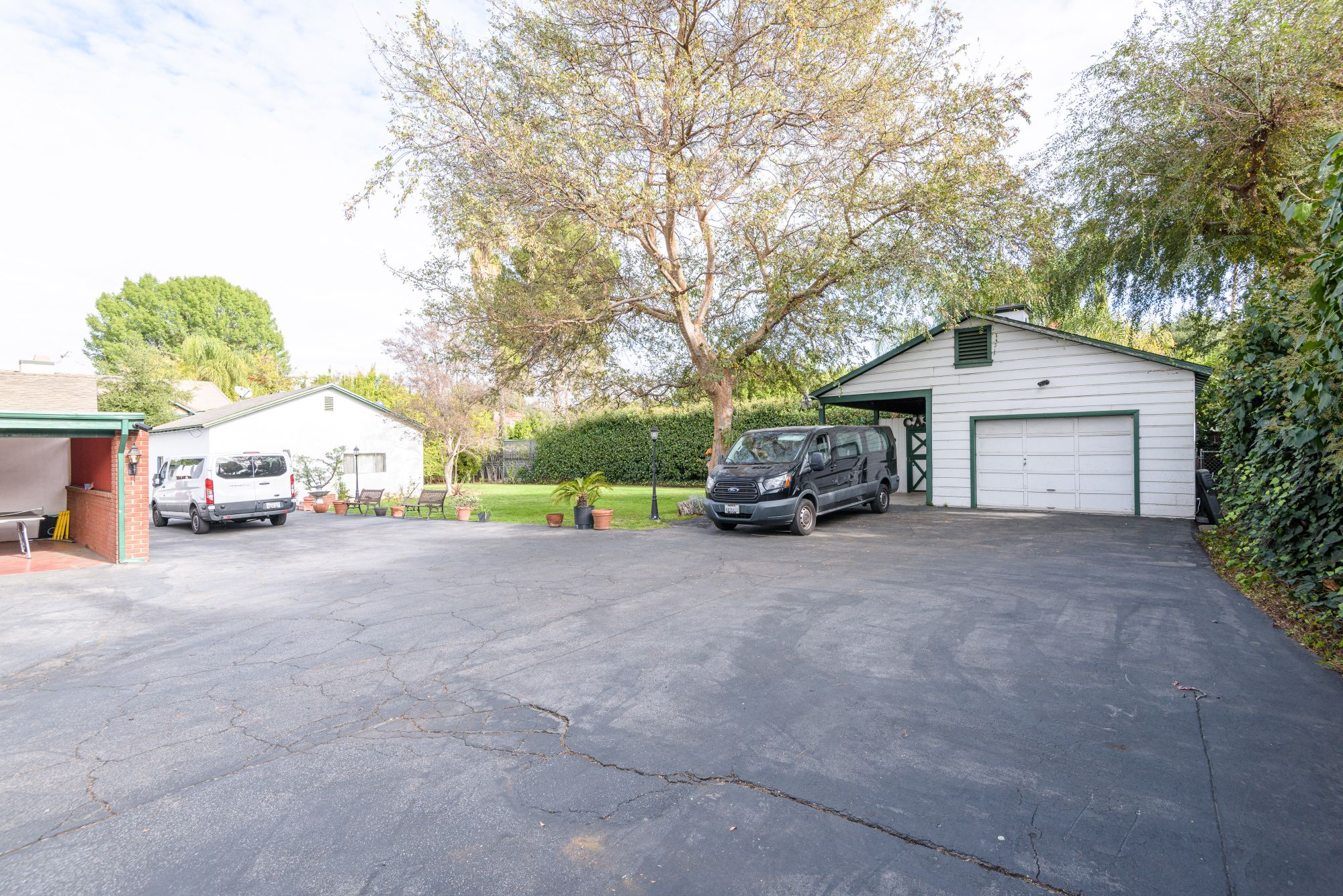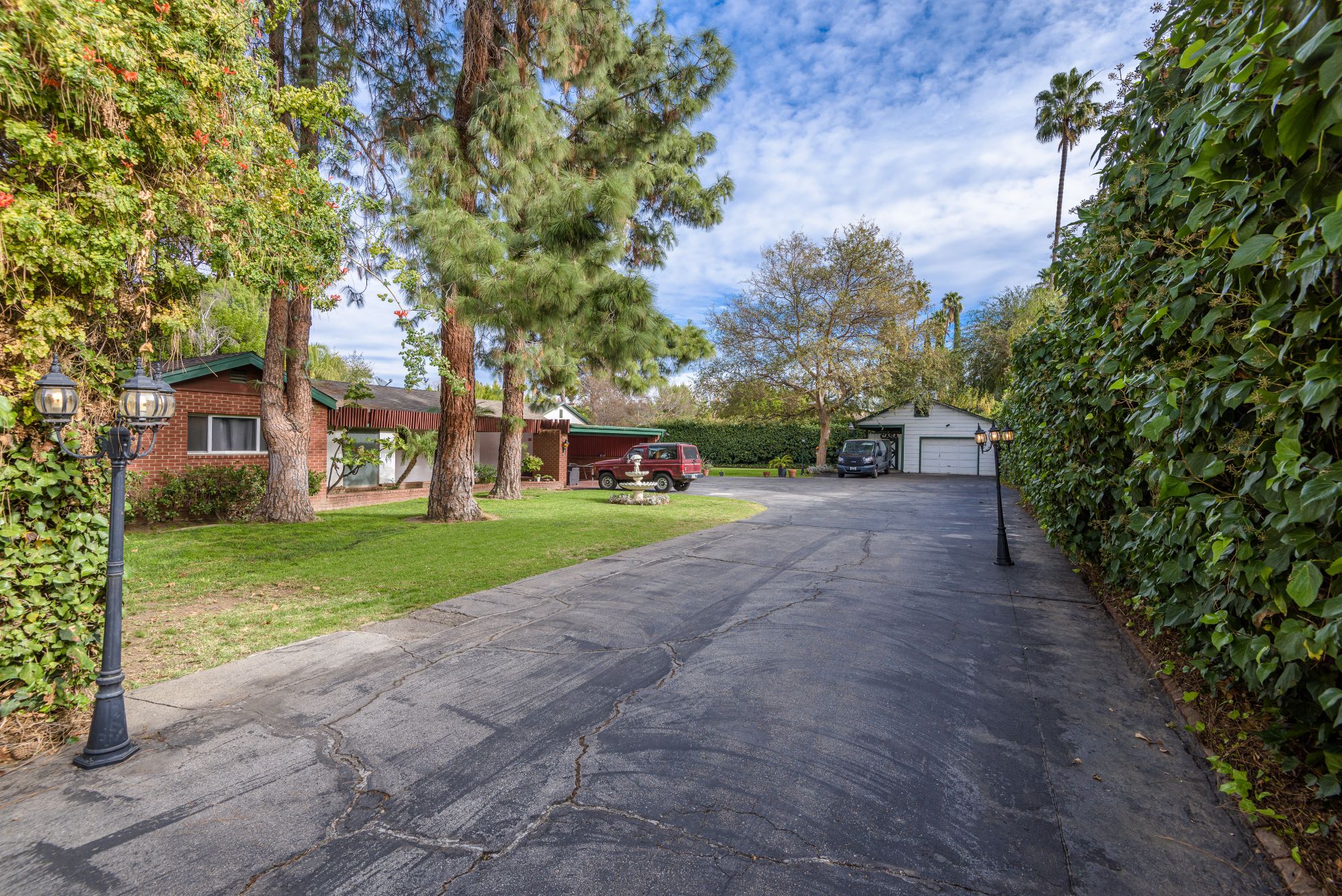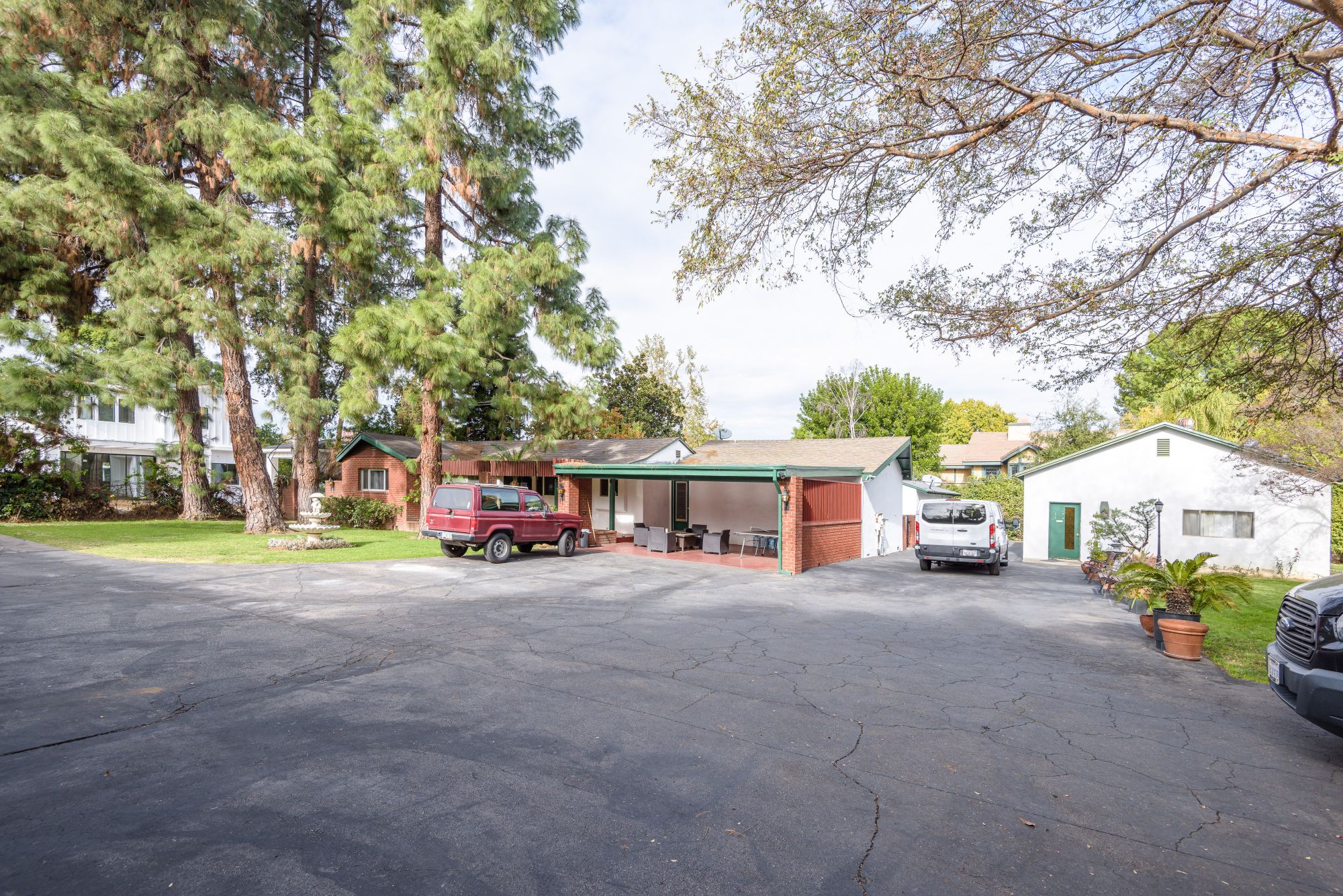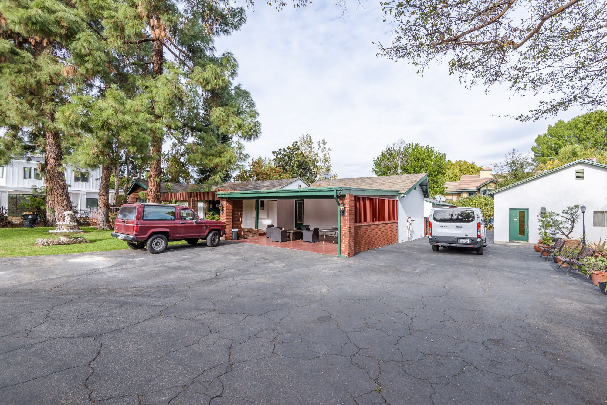 This private, gated estate is the perfect opportunity to develop with an ample lot size and the availability to adjoin the buildings on the property. Current TENANT is paying 10K a month. Two grand gates open up to a 50 yd long driveway leading to the property that encompasses 2,800 square feet of living space with 3 bedrooms and 2 bathrooms. Secured with security systems and an intercom, this property allows for privacy and safety. In addition to the main house, there are 2 guest houses. The first is a 600 sq ft. pool house with 1 bedroom and 2 baths. The second is an 800 sq ft. studio divided into 2 separate rooms. A very large garage that can be altered. A large pool and jacuzzi in the backyard make the perfect entertainment space and ensures there is space to renovate.