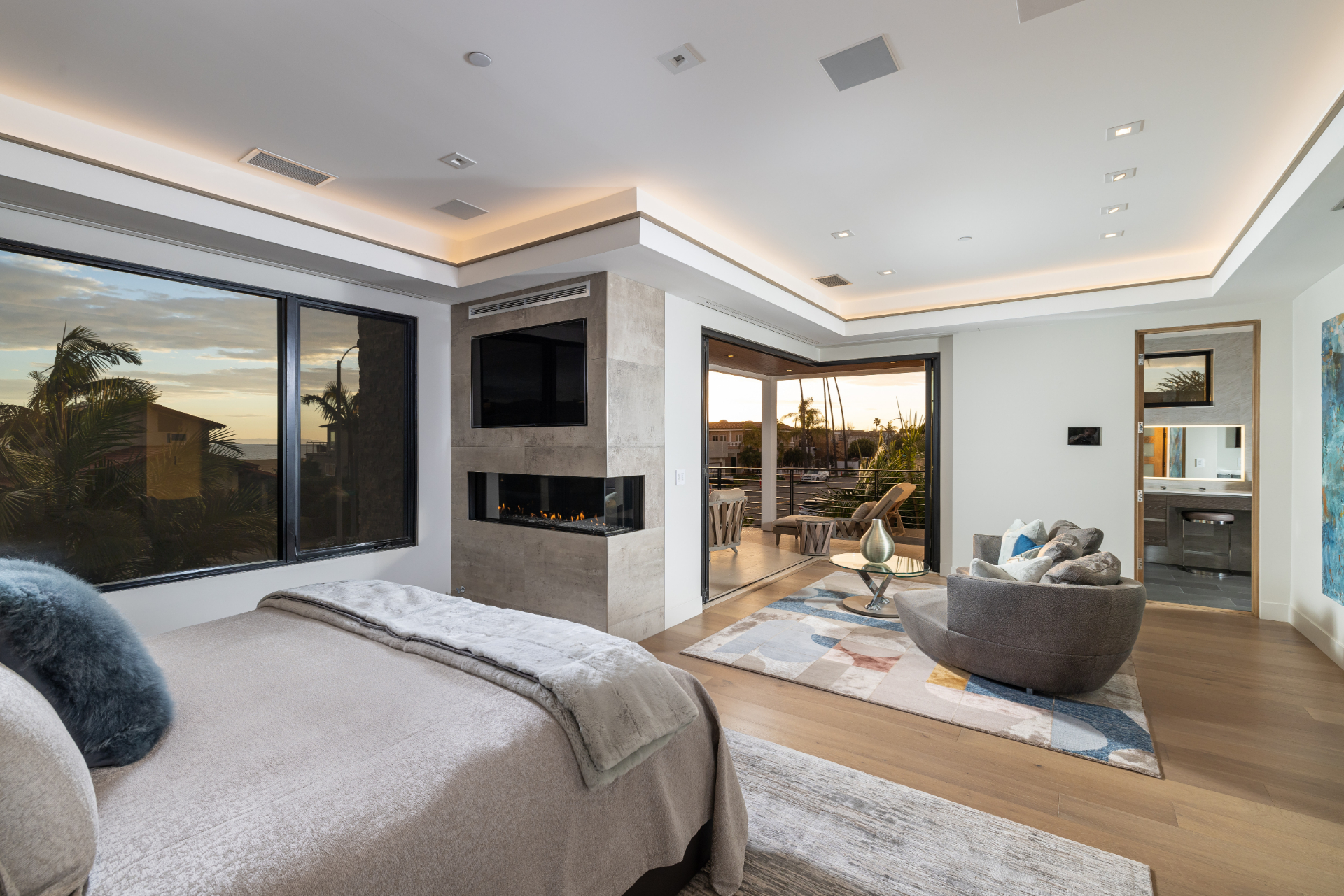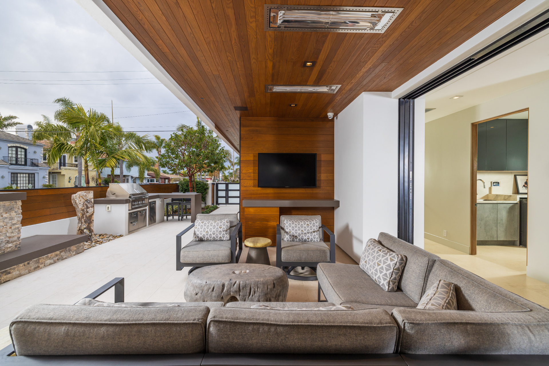 Moments to the beach, this stunning, warm architectural custom designed home offers over 4,000sf of living space on an expansive corner lot. Located in highly coveted Seal Beach, this masterpiece offers the quintessential California Beach lifestyle with luxury, design, and comfort. This ultra-rare entertainer's dream offers 3 bedrooms, 3.5 bathrooms, plus an office. Finished 2020 the open floor plan seamlessly blends indoor and outdoor living on both floors, with La Cantina bi-folding and sliding doors throughout the property creating a seamless transition. The kitchen is a chef's dream, featuring custom high-gloss Italian laminated finishes, top of the line Miele appliances. Entertain outdoors with your fireplace, mounted flat screen TV, and built-in overhead heaters. An elevator provides access to all living levels for added convenience. Upstairs is White Oak Engineered Hardwood Flooring, spacious TV room, complete with a refrigerator, freezer, sink and wine room. The primary bedroom suite offers a wall of disappearing doors that open up to a private terrace with ocean and sunset views, fireplace, custom walk-in closet, en suite bath with a freestanding tub, grand walk-in shower and dual vanities. This home is equipped with modern amenities such as a Control 4 AV system and smart home upgrades, a Nuvo whole house filtration/water softener system, ensuring both comfort and convenience. Additional features include a garage with a Direct Lift car lift which holds an SUV. Located just a short 5-block walk to charming Main Street, residents can enjoy easy access to a variety of restaurants and shops, making it a perfect blend of luxury and convenience.