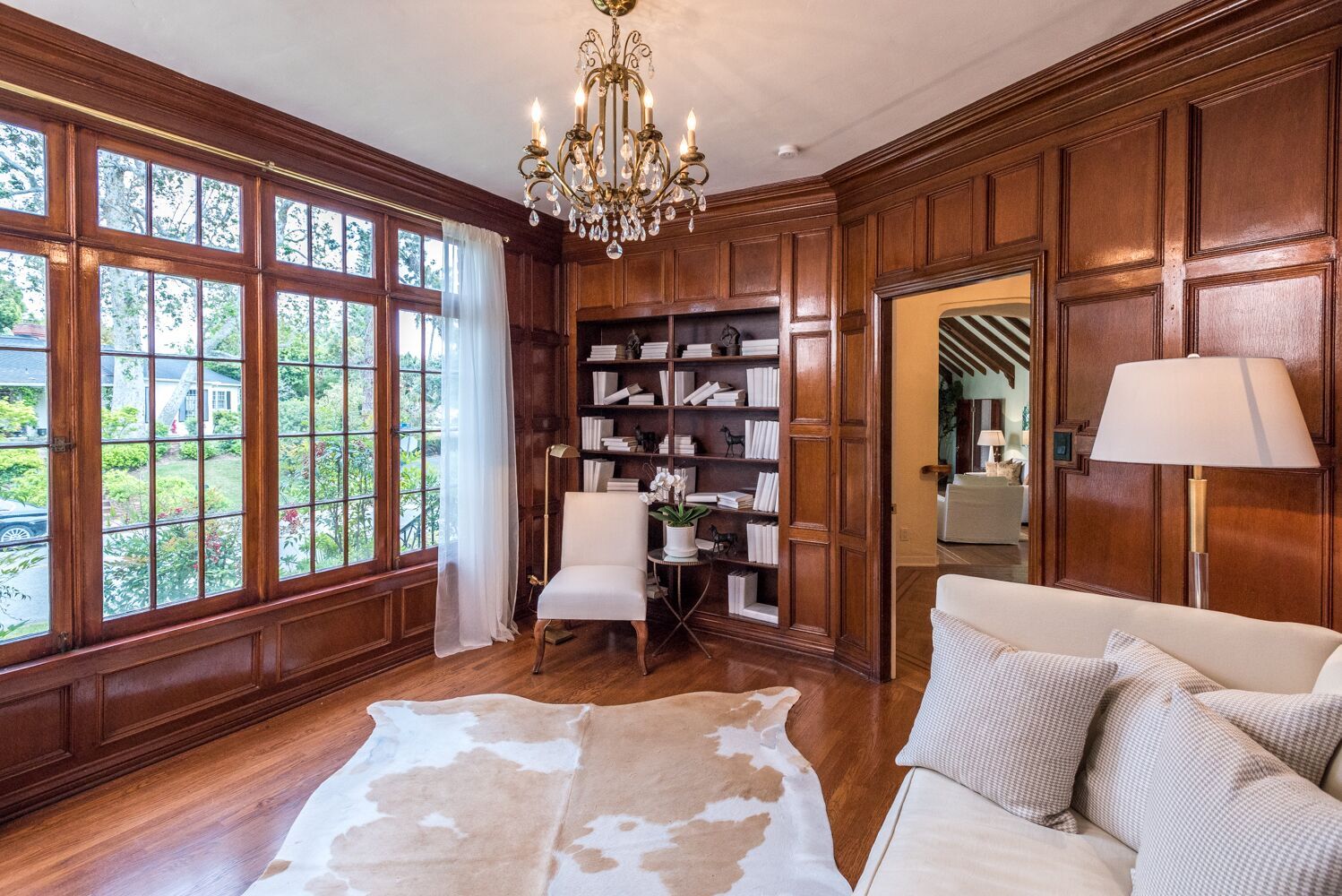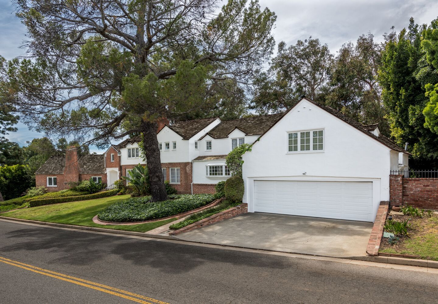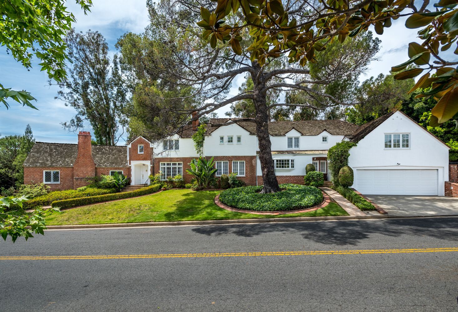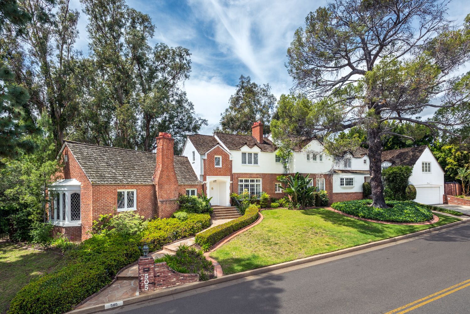 Located on one of Brentwood's most prestigious streets. This iconic Traditional home combines updated elements that complement the home's original charm. The property is spread over half an acre and features 6 bedrooms and 6.5 baths, all surrounded by mature and lush landscaping giving you complete privacy. Open the front door to an impressive formal foyer which steps down into the light-filled elegant living room with wood floors, exposed wooden beams, and fireplace. Make your way through the grand library with wood paneled walls, formal dining room with gorgeous crown molding, private office, and a separate family room that opens to the Chef's kitchen which boasts a large island, custom cabinets, Viking appliances and breakfast area. Unwind in the expansive master retreat and indulge in the updated bathroom with dual vanities and wainscoting walls. Other features include large guest rooms, an additional upstairs family room and plenty of outdoor space for luxurious, relaxed living.