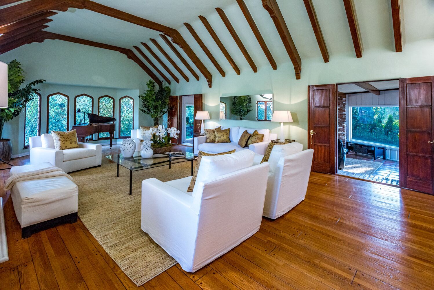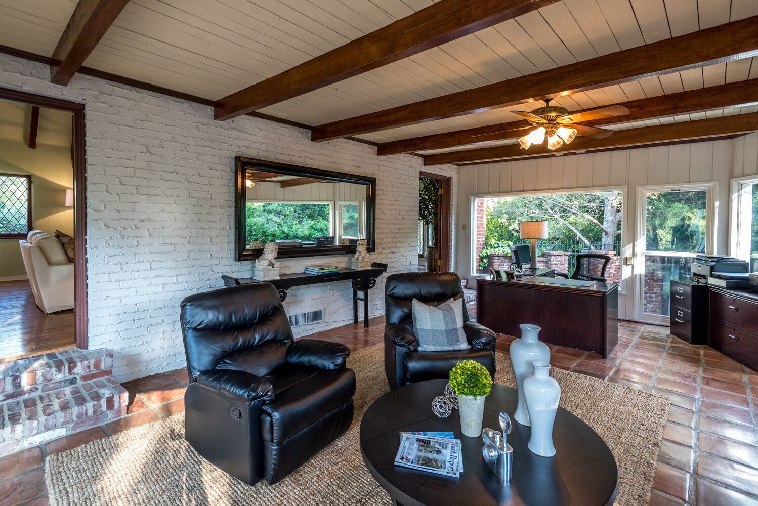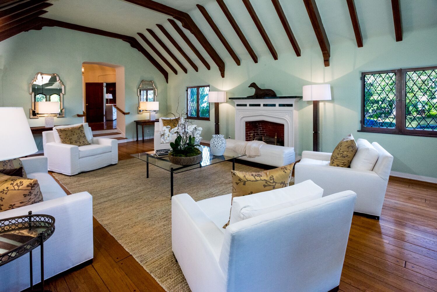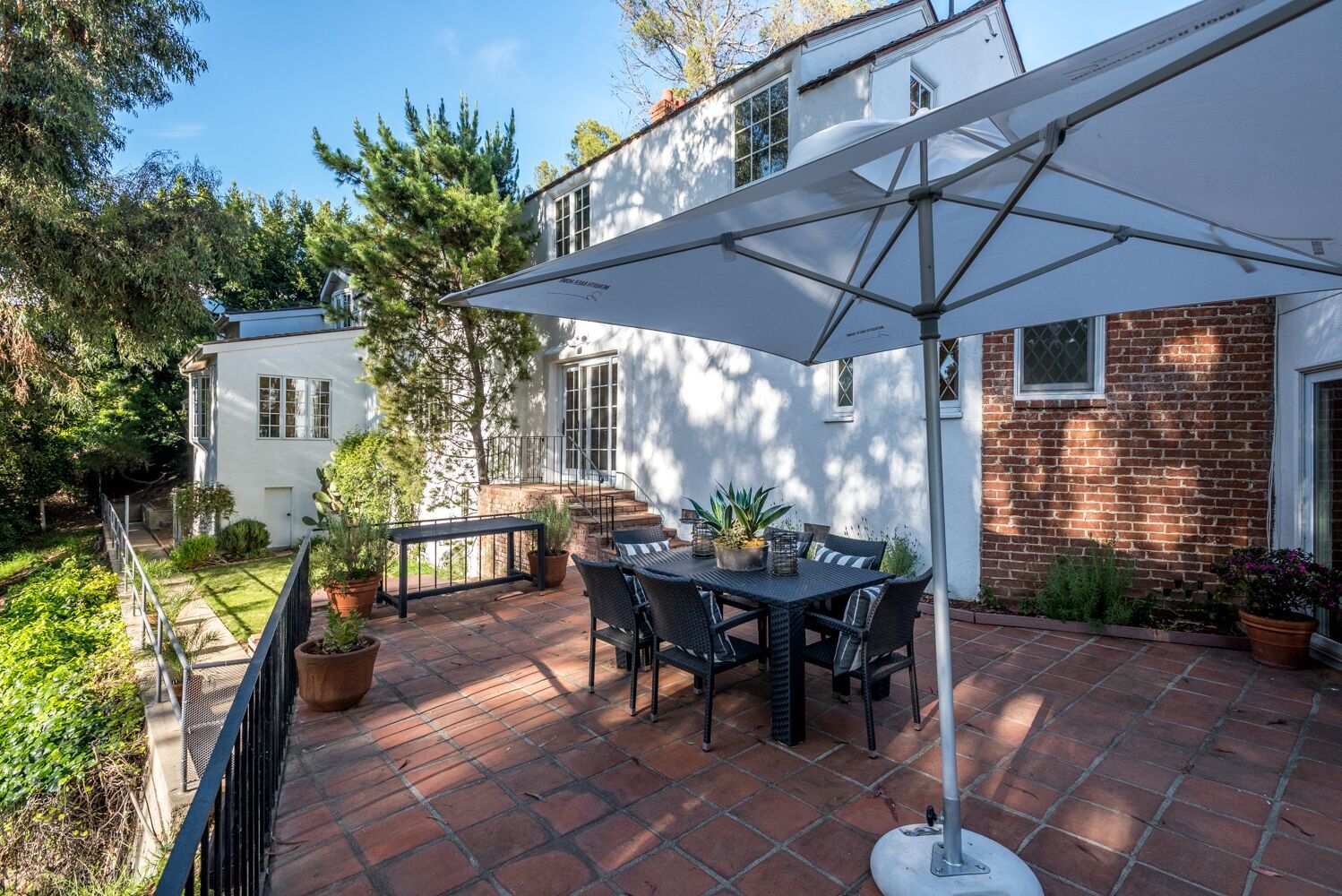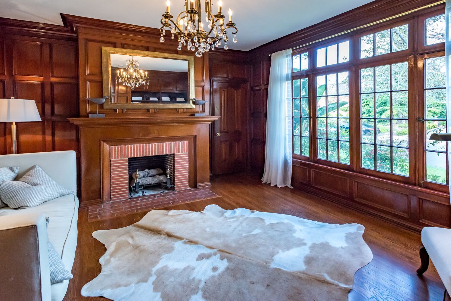Located on one of Brentwood's most prestigious streets. This iconic Traditional home combines updated elements that complement the home's original charm. The property is spread over half an acre and features 6 bedrooms and 6.5 baths, all surrounded by mature and lush landscaping giving you complete privacy. Open the front door to an impressive formal foyer which steps down into the light-filled elegant living room with wood floors, exposed wooden beams, and fireplace. Make your way through the grand library with wood paneled walls, formal dining room with gorgeous crown molding, private office, and a separate family room that opens to the Chef's kitchen which boasts a large island, custom cabinets, Viking appliances and breakfast area. Unwind in the expansive master retreat and indulge in the updated bathroom with dual vanities and wainscoting walls. Other features include large guest rooms, an additional upstairs family room and plenty of outdoor space for luxurious, relaxed living.