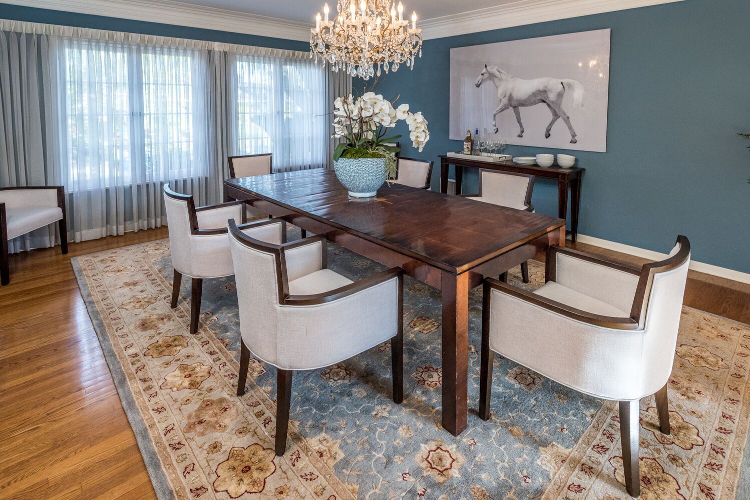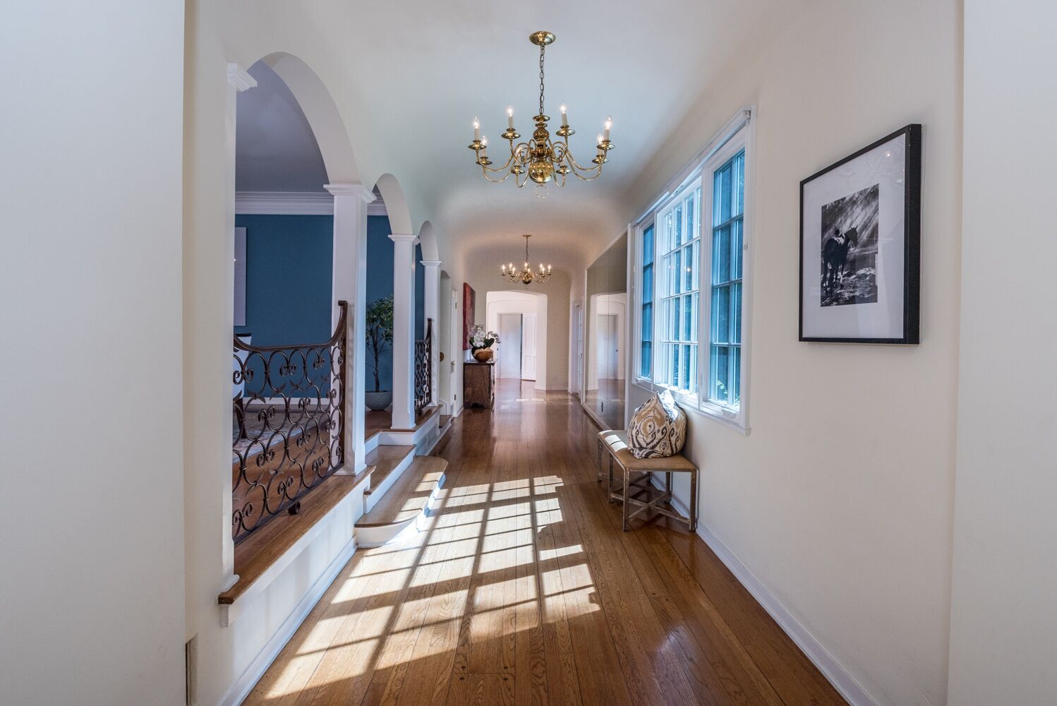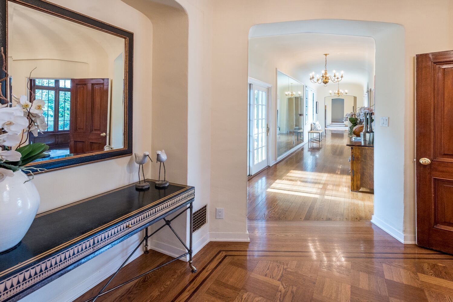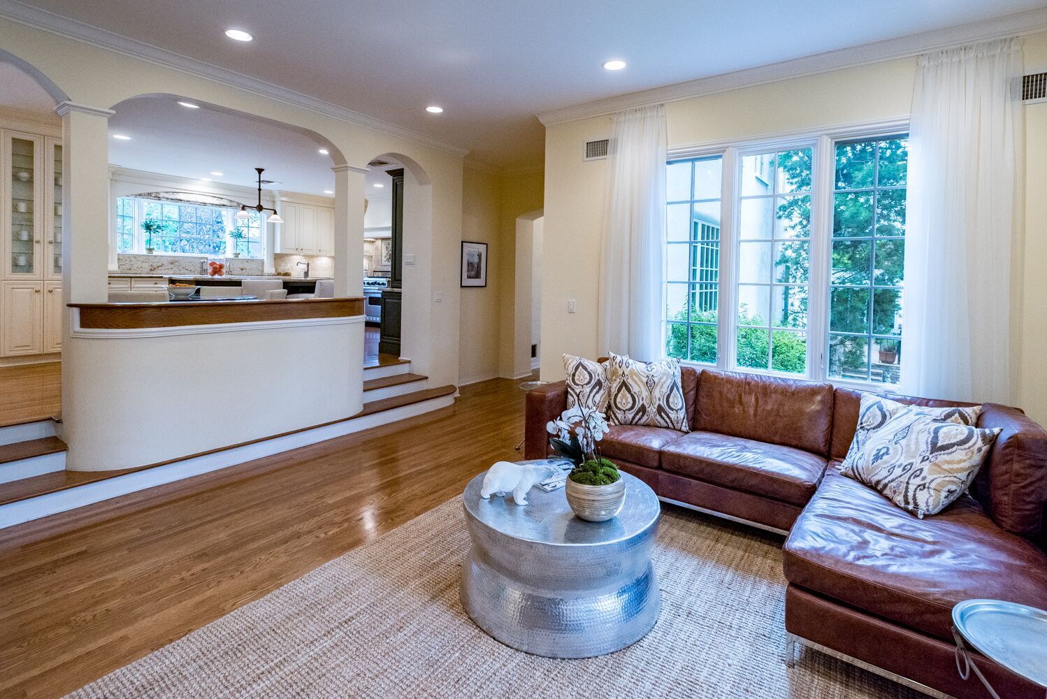 Located on one of Brentwood's most prestigious streets. This iconic Traditional home combines updated elements that complement the home's original charm. The property is spread over half an acre and features 6 bedrooms and 6.5 baths, all surrounded by mature and lush landscaping giving you complete privacy. Open the front door to an impressive formal foyer which steps down into the light-filled elegant living room with wood floors, exposed wooden beams, and fireplace. Make your way through the grand library with wood paneled walls, formal dining room with gorgeous crown molding, private office, and a separate family room that opens to the Chef's kitchen which boasts a large island, custom cabinets, Viking appliances and breakfast area. Unwind in the expansive master retreat and indulge in the updated bathroom with dual vanities and wainscoting walls. Other features include large guest rooms, an additional upstairs family room and plenty of outdoor space for luxurious, relaxed living.