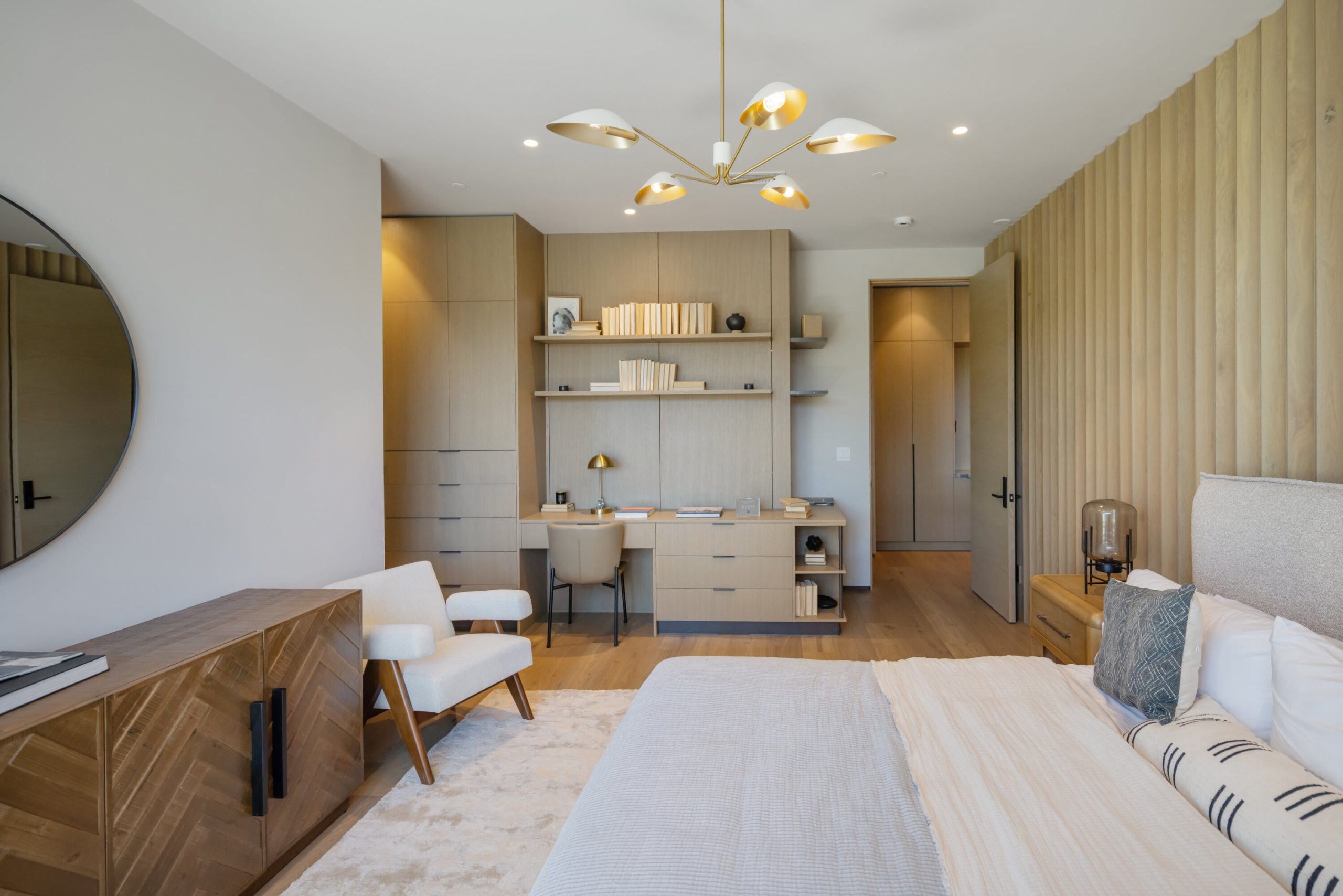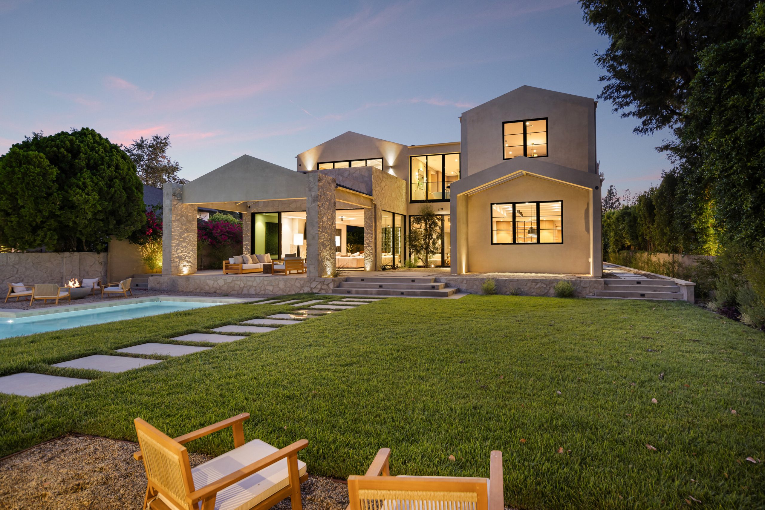 string(3137) "Welcome to 5056 Louise Avenue, a newly built architectural masterpiece created by Evan Gaskin Designs, nestled on a sprawling lot in the heart of Encino. This stunning residence, situated in Amestoy Estates, was designed with intention blending natural light, rich wood accents, and elegant stone elements to create a serene and luxurious living environment. Enter the main house to discover a bright, open floor plan that seamlessly connects sophisticated indoor living with the tranquility of the outdoors. Anchoring the main living space is a striking stone fireplace, a full custom bar, and a temperature-controlled wine room ideal for entertaining and relaxed evenings alike. The Chef's kitchen is a true centerpiece, featuring top-of-the-line Wolf appliances and a breathtaking oversized marble island that invites gathering and culinary creativity. The home offers five spacious bedrooms, each with its own en-suite bath. One guest suite is located on the main level, while the remaining four reside upstairs, including the expansive primary retreat. The primary suite boasts its own private terrace overlooking the lush backyard, and a spa-inspired bathroom complete with an oversized steam shower, luxurious soaking tub, and high-end fixtures by Jessi. The accompanying walk-in closet is a showstopper both in size and design. Throughout the home, you'll find quartz and all-natural tile surfaces, with premium fixtures by Phyllrich. Smart home automation by Crestron is seamlessly integrated into all main areas and the primary suite, providing effortless control over lighting, sound, and more. Floor-to-ceiling sliding glass doors lead you to a beautifully landscaped backyard oasis featuring a sparkling pool and spa. Across from the main home sits a spectacular 2,000-square-foot guest house and pool house, a gym, a recreation room, and a second full bar offering the ultimate in entertainment and relaxation. Security and convenience have been carefully considered, with a hardwired camera system covering both the interior and exterior, including front and backyard surveillance. 5056 Louise Ave is more than a home it's a lifestyle. Come experience the timeless elegance, thoughtful craftsmanship, and modern luxury that define this extraordinary Encino estate."