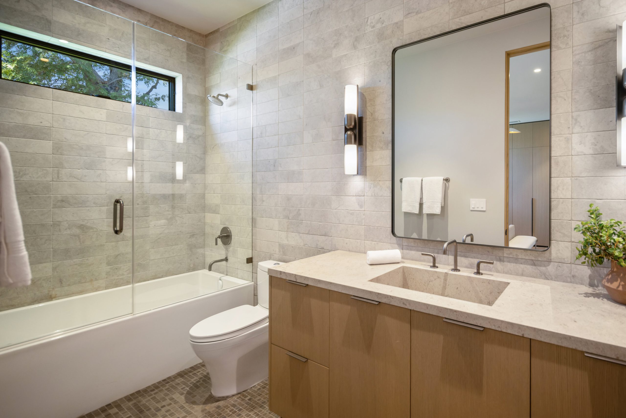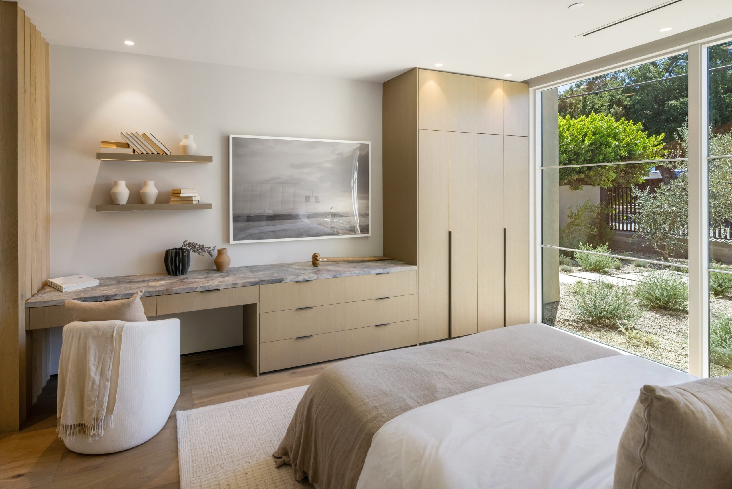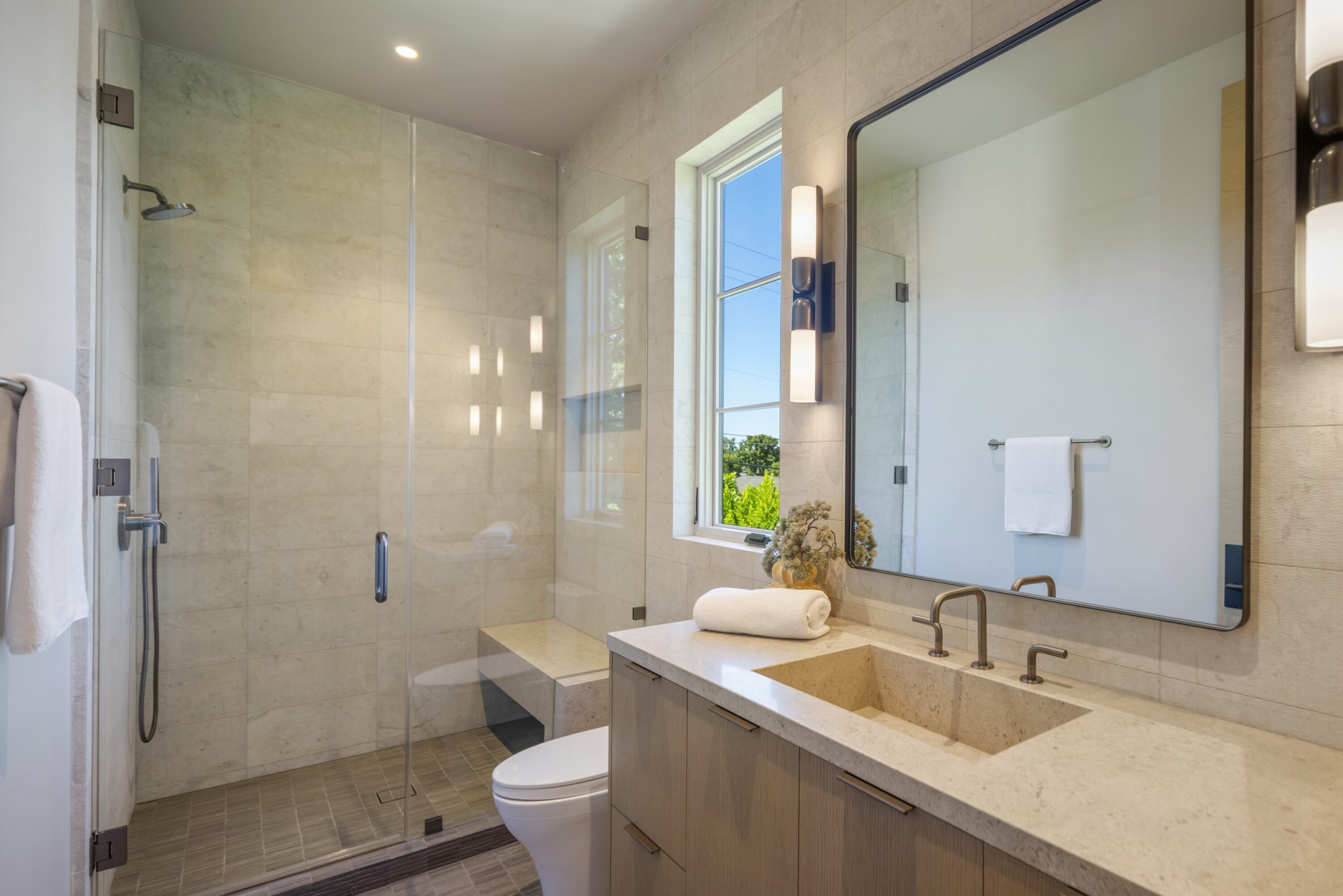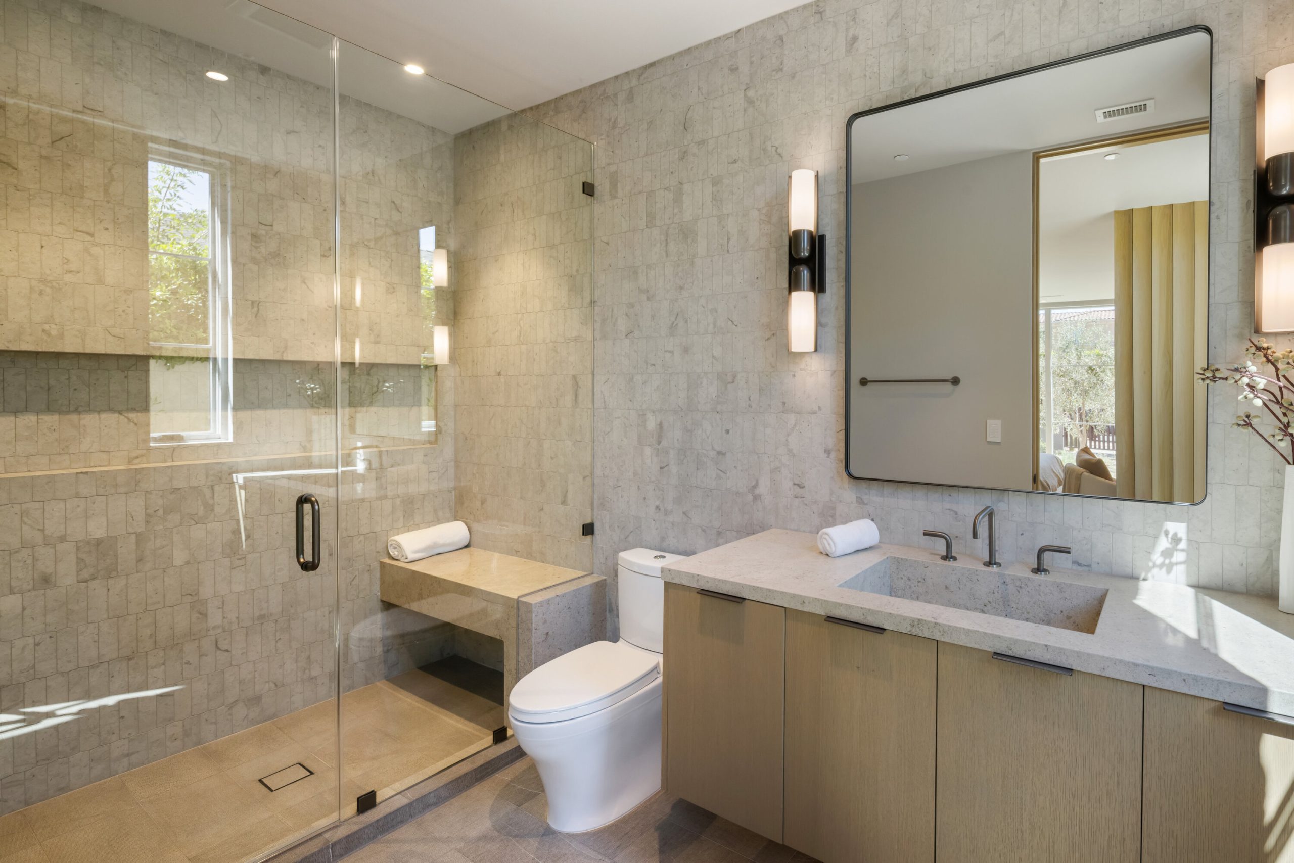 Welcome to 5056 Louise Avenue, a newly built architectural masterpiece created by Evan Gaskin Designs, nestled on a sprawling lot in the heart of Encino. This stunning residence, situated in Amestoy Estates, was designed with intention blending natural light, rich wood accents, and elegant stone elements to create a serene and luxurious living environment. Enter the main house to discover a bright, open floor plan that seamlessly connects sophisticated indoor living with the tranquility of the outdoors. Anchoring the main living space is a striking stone fireplace, a full custom bar, and a temperature-controlled wine room ideal for entertaining and relaxed evenings alike. The Chef's kitchen is a true centerpiece, featuring top-of-the-line Wolf appliances and a breathtaking oversized marble island that invites gathering and culinary creativity. The home offers five spacious bedrooms, each with its own en-suite bath. One guest suite is located on the main level, while the remaining four reside upstairs, including the expansive primary retreat. The primary suite boasts its own private terrace overlooking the lush backyard, and a spa-inspired bathroom complete with an oversized steam shower, luxurious soaking tub, and high-end fixtures by Jessi. The accompanying walk-in closet is a showstopper both in size and design. Throughout the home, you'll find quartz and all-natural tile surfaces, with premium fixtures by Phyllrich. Smart home automation by Crestron is seamlessly integrated into all main areas and the primary suite, providing effortless control over lighting, sound, and more. Floor-to-ceiling sliding glass doors lead you to a beautifully landscaped backyard oasis featuring a sparkling pool and spa. Across from the main home sits a spectacular 2,000-square-foot guest house and pool house, a gym, a recreation room, and a second full bar offering the ultimate in entertainment and relaxation. Security and convenience have been carefully considered, with a hardwired camera system covering both the interior and exterior, including front and backyard surveillance. 5056 Louise Ave is more than a home it's a lifestyle. Come experience the timeless elegance, thoughtful craftsmanship, and modern luxury that define this extraordinary Encino estate.