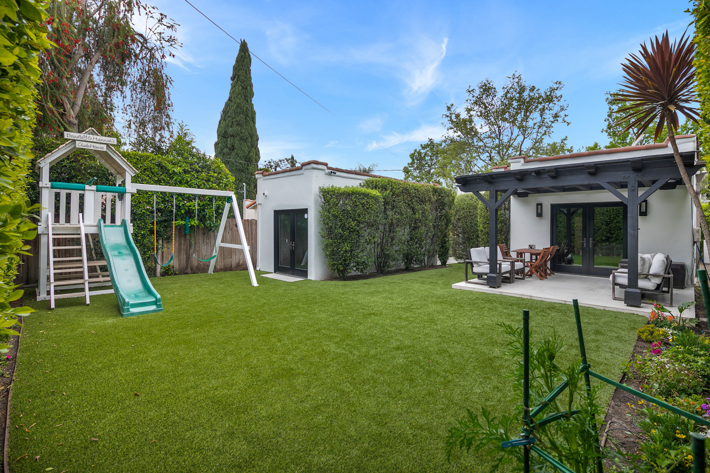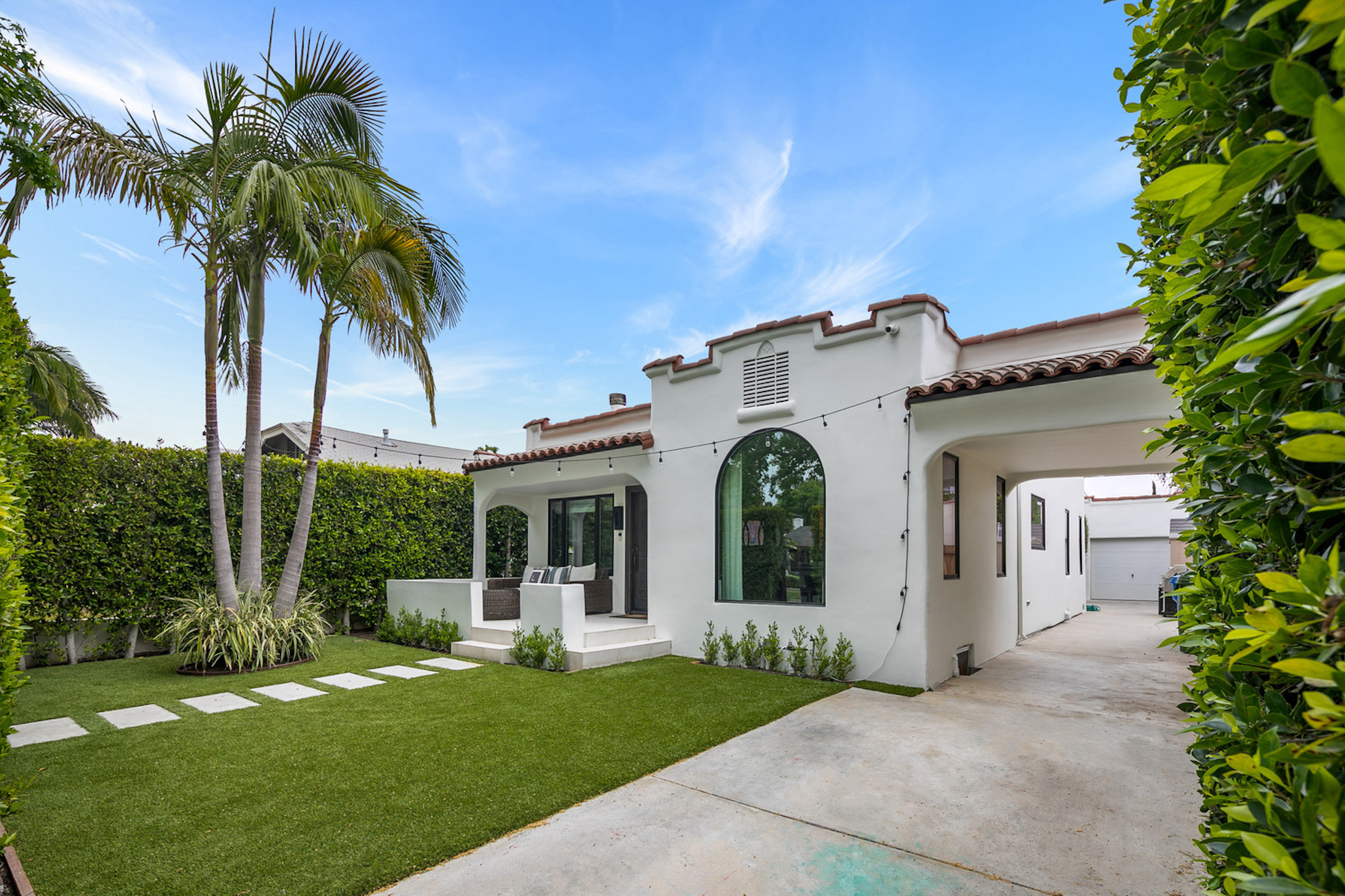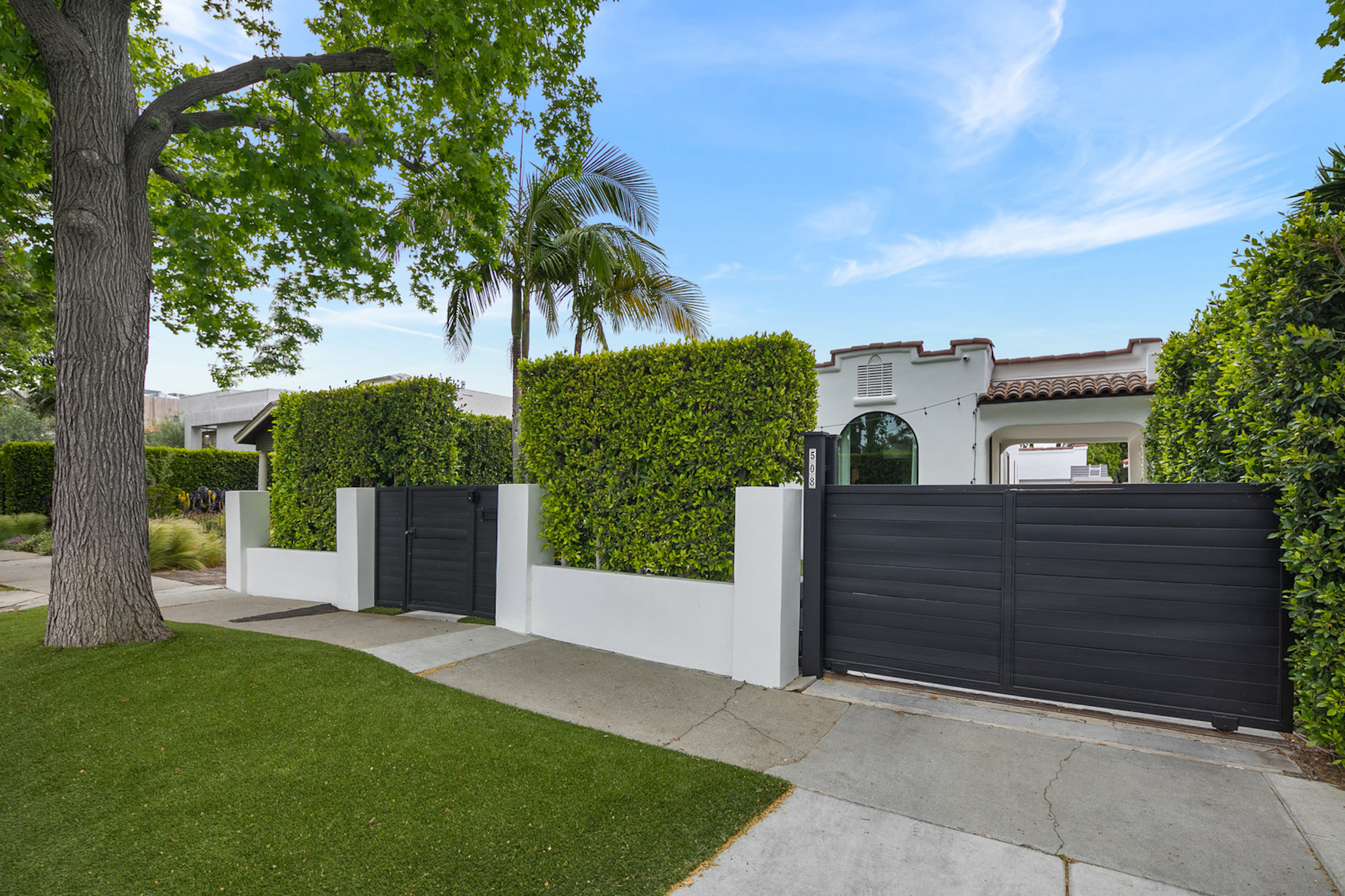 This Gated and Private Spanish Bungalow is located in one of the most desirable neighborhoods in West Hollywood. Recently updated with a contemporary edge while maintaining the charm and sophistication of the original architecture, this almost 1,600sf home showcases 3 bedrooms, 2 bathrooms, high ceilings, a masterfully designed open floor plan, dark hardwood floors, and an abundance of natural light throughout. Offering seamless flow from each room to the next, the spacious living room with a fireplace is open to the formal dining room and chef's kitchen equipped with stainless steel top-of-the-line appliances and a breakfast bar. Large glass doors from the expansive master suite frame views of the backyard filled with lush greenery just beyond the custom pergola. With ample entertainment and relaxation space, the backyard is lined by tall, flourishing greenery offering serenity and privacy. Parking for 4 cars behind the automatic gate with a 1 car garage (or ADU), carport and long driveway. Located in a highly coveted area, this home is just moments away from the best dining and shopping in Los Angeles. A must-see!!