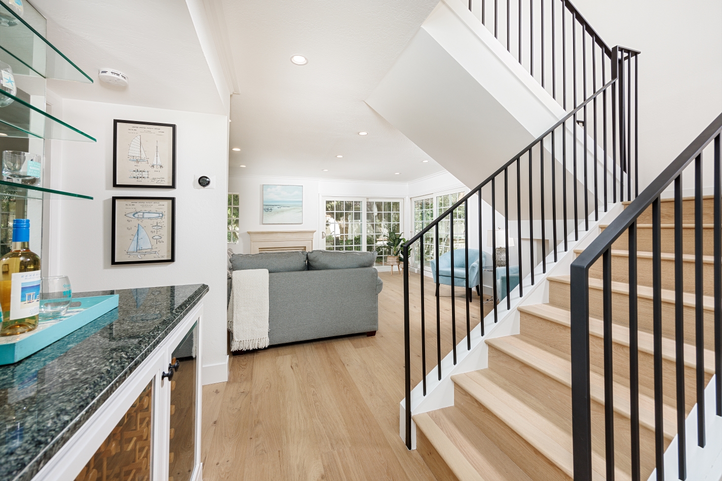 Beautifully remodeled home on a quiet cul de sac in the sought after Bluffs neighborhood. Stunning kitchen with white quartz countertops, brand new 36” Bertazzoni range, and a charming breakfast nook. There is a downstairs primary bedroom and a secondary living room upstairs that could double as an office, den, or theatre room. Engineered hardwood floors throughout the house tie all the rooms together. Oversized windows on every wall of the house bring in tremendous amounts of natural light. Leaving the brand new light fixtures needed only at night. It is one of the very few Bluffs homes with a wrap around patio on all 3 sides. The only attached wall to the neighbor is at the garage. The back patio overlooks a green belt and connects to all the wonderful trails, walking paths, and the 10.1 mile back-bay walking and biking loop. It is in one of the best school districts Newport Beach has to offer including Corona Del Mar High School. It is also close to the Newport Beach pristine beaches, Fashion Island, Balboa Island, and has easy access to the 73 and 55 freeways. Don’t hesitate before this gem is off the market.