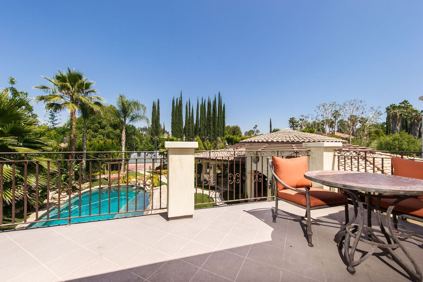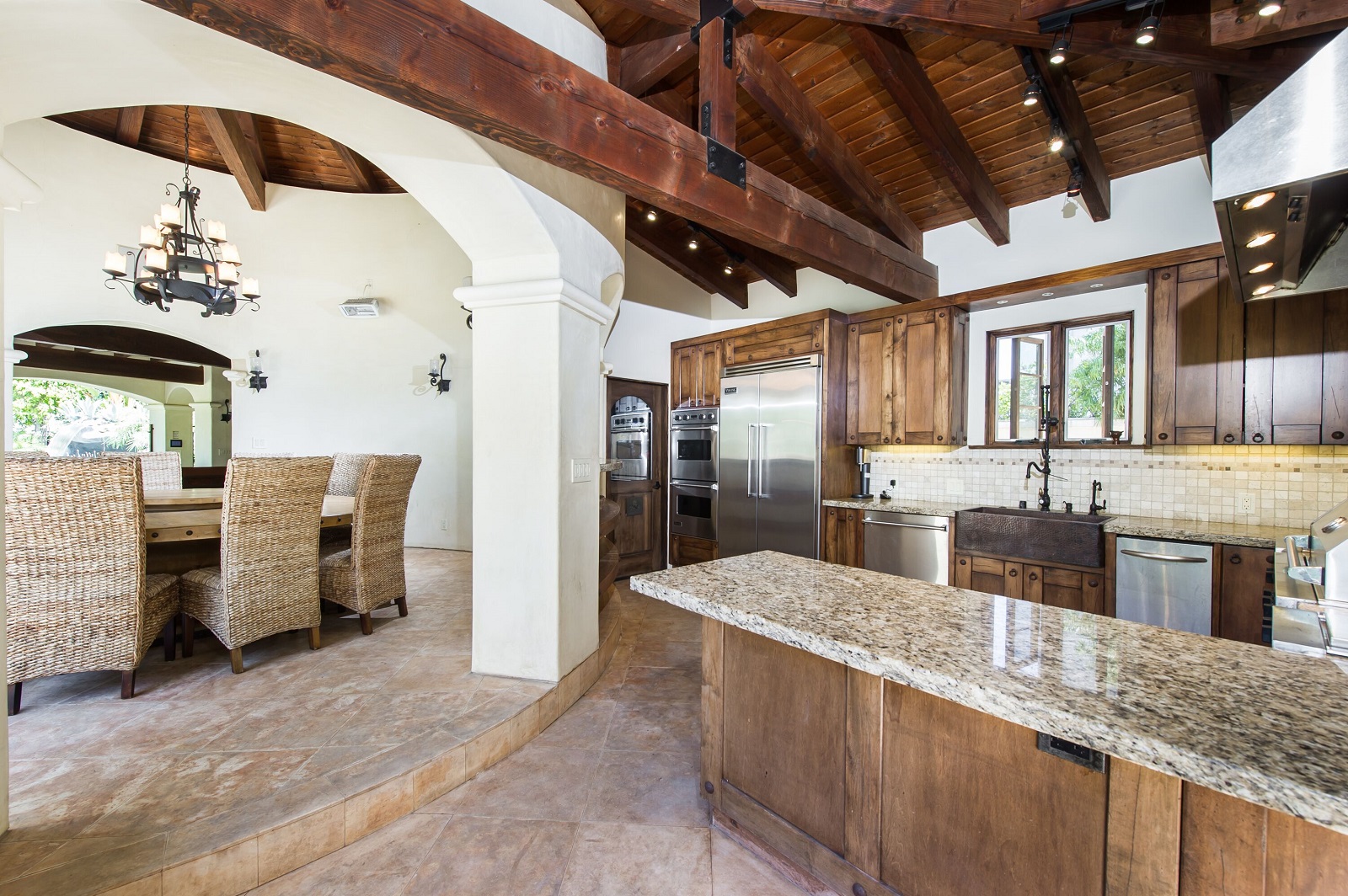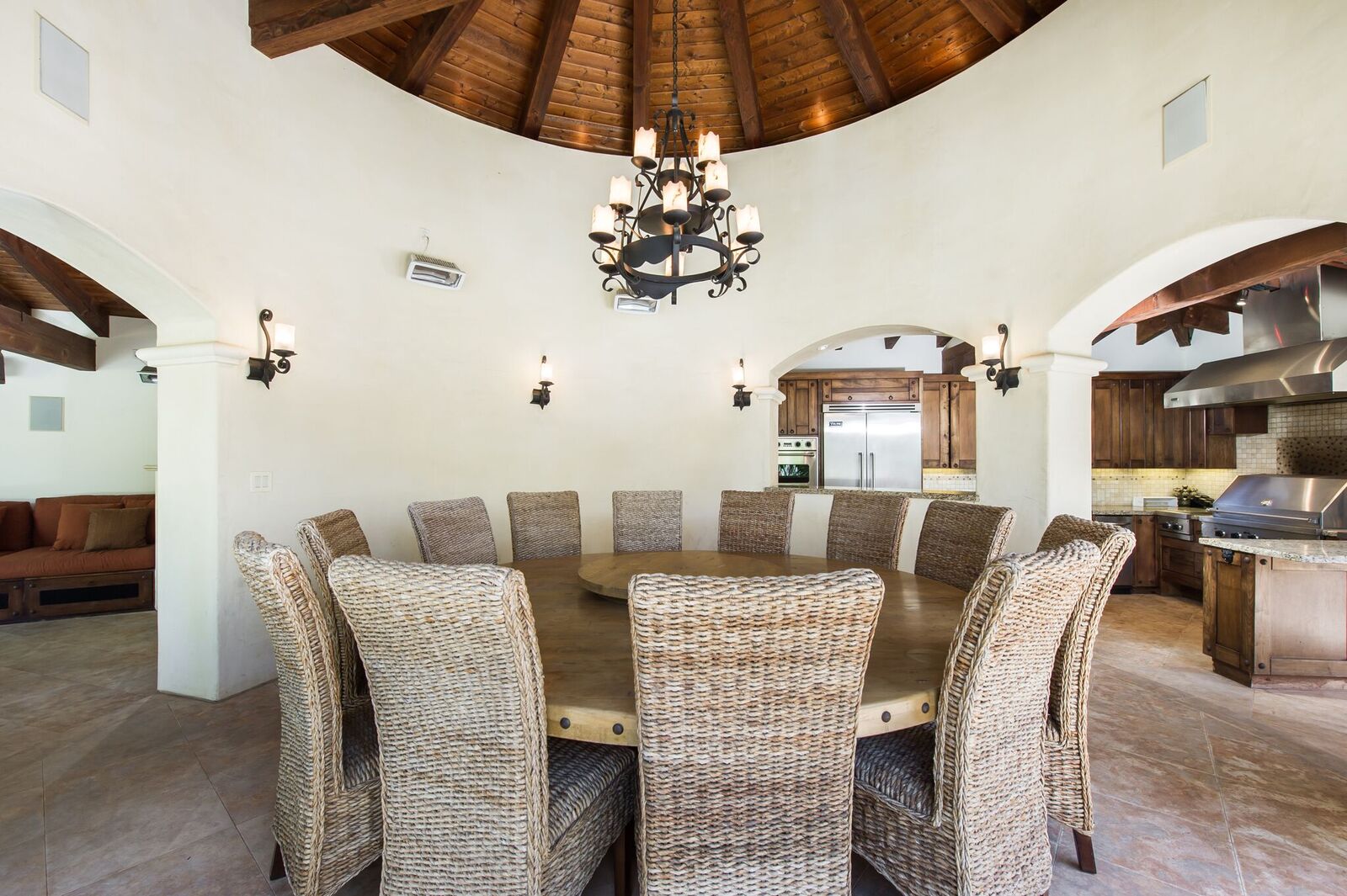 Impressive Spanish estate reminiscent of a 5-star resort. S of Ventura, this gorgeous gated property spares no expense! Beamed ceilings, stunning wrought ironwork and hardwood/travertine floors throughout. Expansive fireplace with a massive 150in projection screen. State-of-the-art kitchen feat Viking appliances with breakfast area. Master retreat opens to a marvelous balcony and features a lounge area, bath with spa tub, steam shower, and separate laundry. The secret hallway opens to reveals 3BD. Saltwater wave pool with beach entry, grotto spa, firepit, misters, cabanas, and over 1500sf pool house with gourmet kitchen, bar, wine cellar, living room, bath, and shower. Climate controlled doghouse, washing station, turf dog run with dog septic tank. Other features include Custom built theater, full NEST integration, huge built-in fish tank, TigerTurf, parking for 20+, hookah lounge, game room, 2 wine celliers, 7 fireplaces, guest suite with separate entrance, 3 dining room, 2 laundry room, and pro-style basketball court.