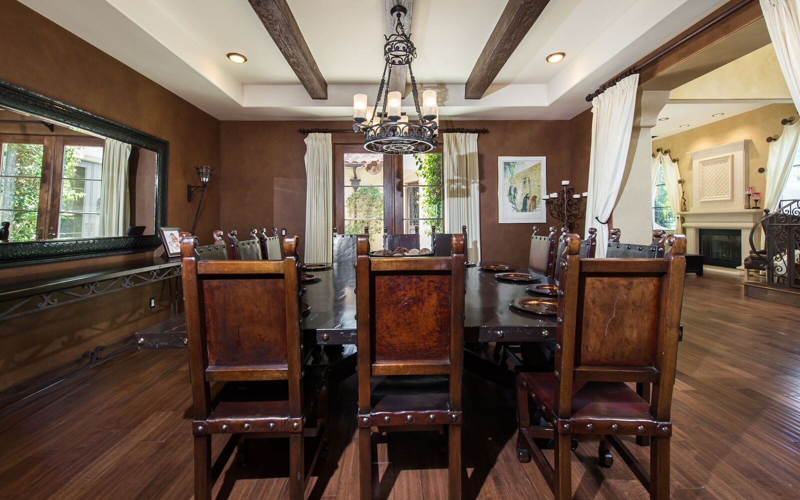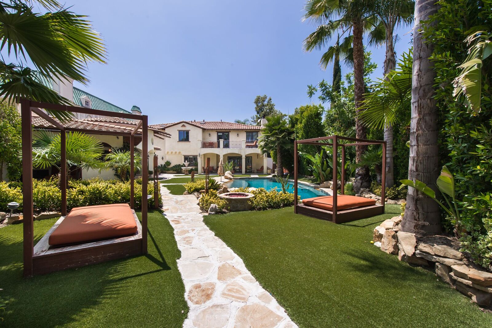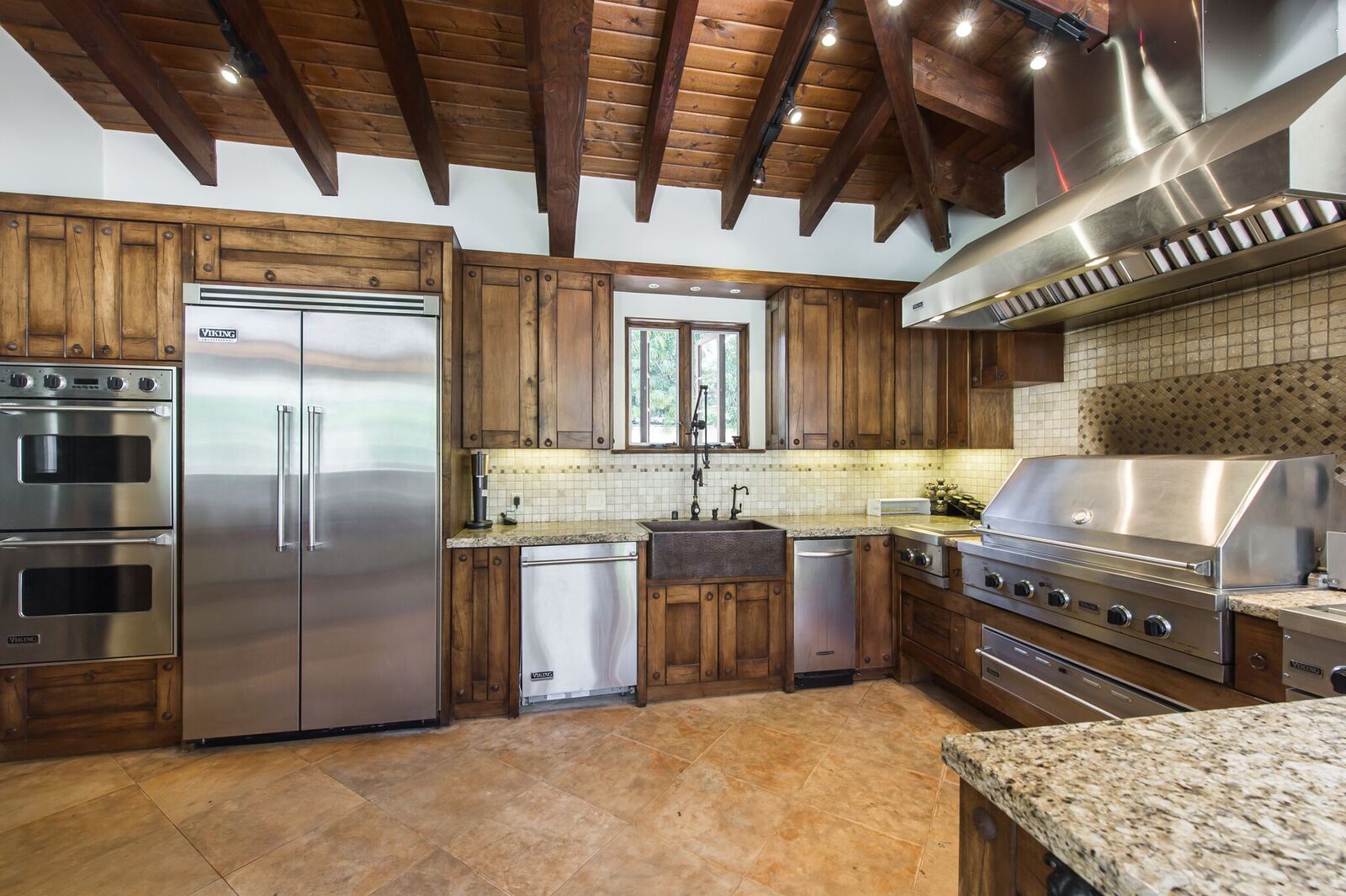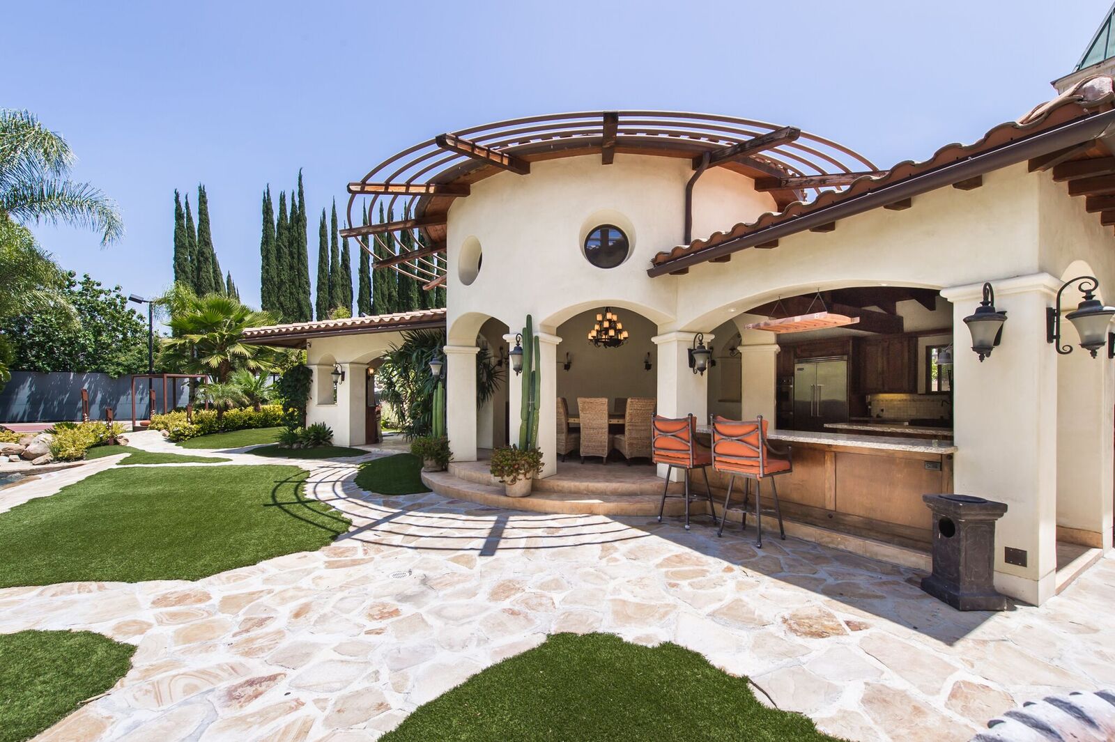 Impressive Spanish estate reminiscent of a 5-star resort. S of Ventura, this gorgeous gated property spares no expense! Beamed ceilings, stunning wrought ironwork and hardwood/travertine floors throughout. Expansive fireplace with a massive 150in projection screen. State-of-the-art kitchen feat Viking appliances with breakfast area. Master retreat opens to a marvelous balcony and features a lounge area, bath with spa tub, steam shower, and separate laundry. The secret hallway opens to reveals 3BD. Saltwater wave pool with beach entry, grotto spa, firepit, misters, cabanas, and over 1500sf pool house with gourmet kitchen, bar, wine cellar, living room, bath, and shower. Climate controlled doghouse, washing station, turf dog run with dog septic tank. Other features include Custom built theater, full NEST integration, huge built-in fish tank, TigerTurf, parking for 20+, hookah lounge, game room, 2 wine celliers, 7 fireplaces, guest suite with separate entrance, 3 dining room, 2 laundry room, and pro-style basketball court.