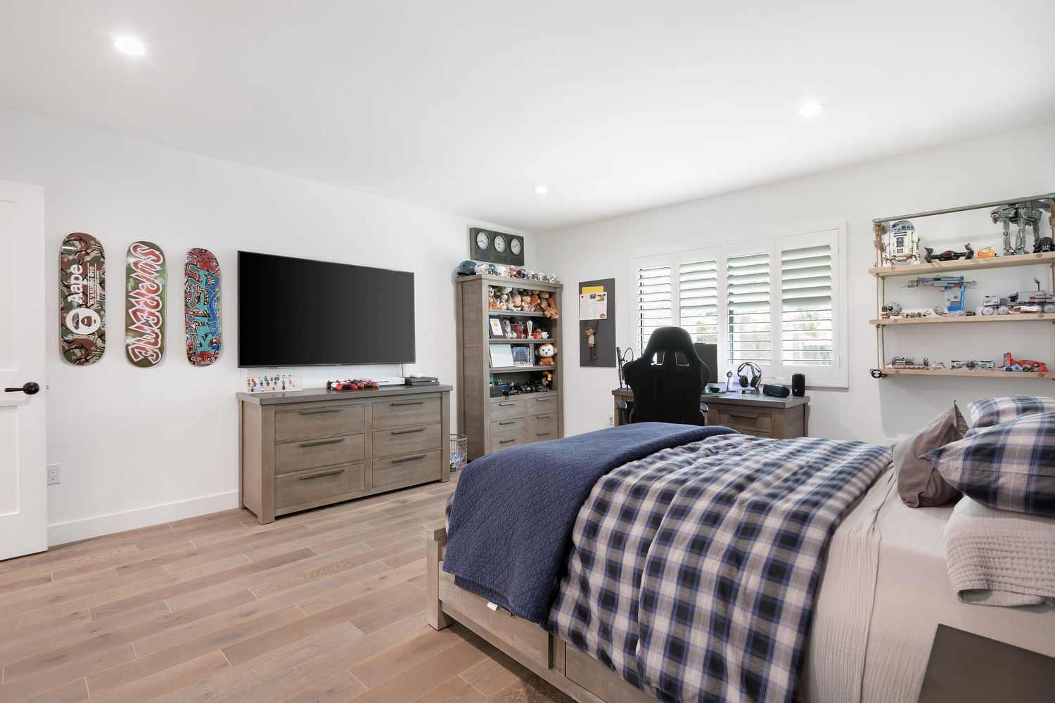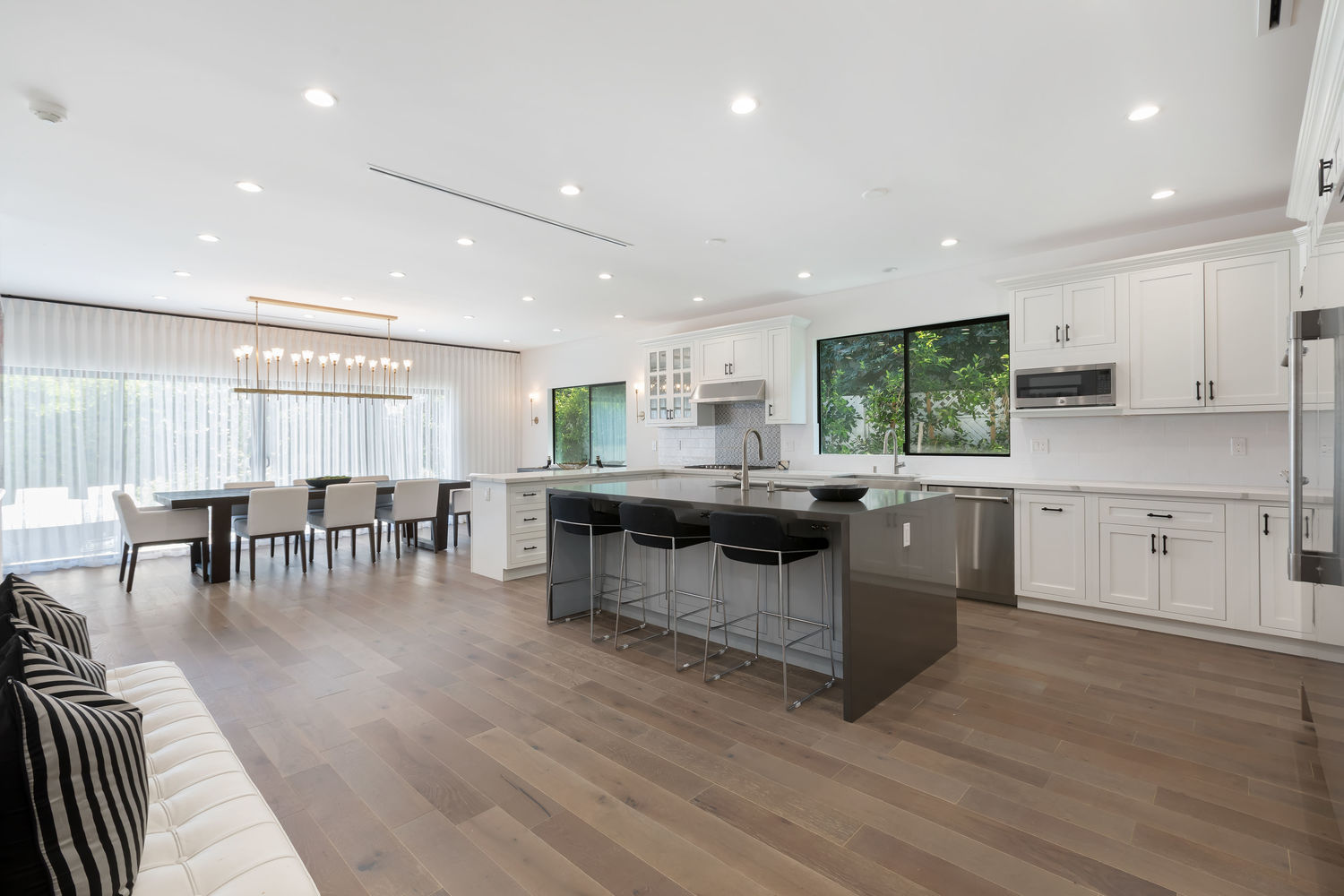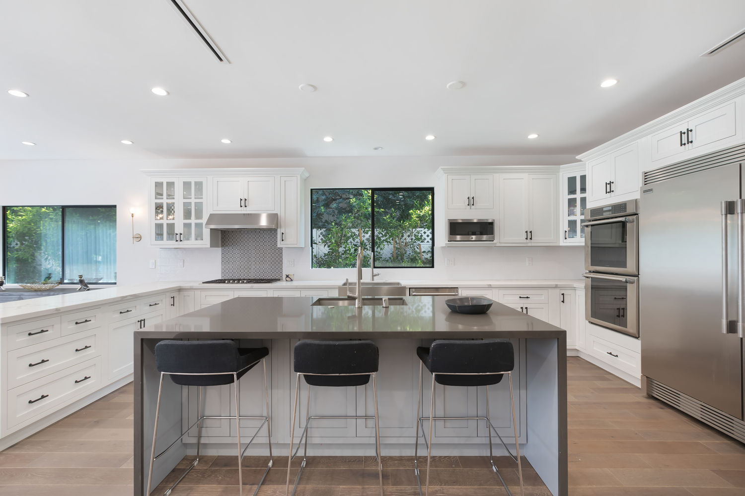 The perfect infusion of sophisticated luxury and modernism set in the heart of Valley Village. The fully gated and private ~3,000 sqft single level home features 4 bedrooms and 4.5 bathrooms with an abundance of natural light, an open floor plan with flawless flow, meticulous design and high end finishes throughout. The fully equipped chef's kitchen with top of line appliances includes 2 dishwashers, 2 ovens, 2 sinks and a large center island open to the dining room that overlooks the lush backyard through glass sliding doors. The large master bedroom boasts an expensive walk in closet, spa like bathroom and sliding doors that open to the exquisite fully landscaped yard with landscape lighting and a gazebo. Three en-suite bedrooms with a generous amount of closet space are just down the hall. The home is fully secured by gates and a top of the line security camera system. A Valley Village jewel!