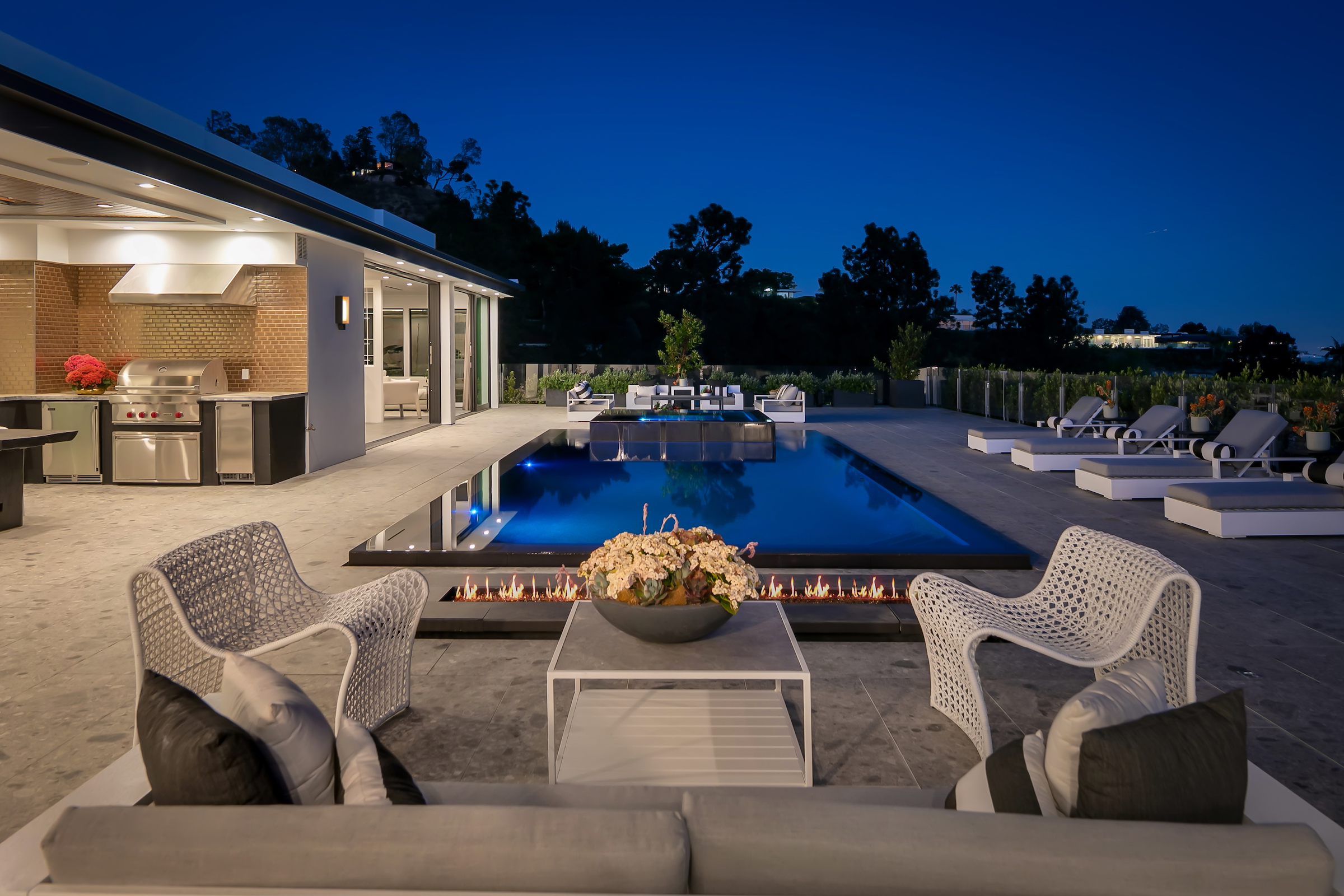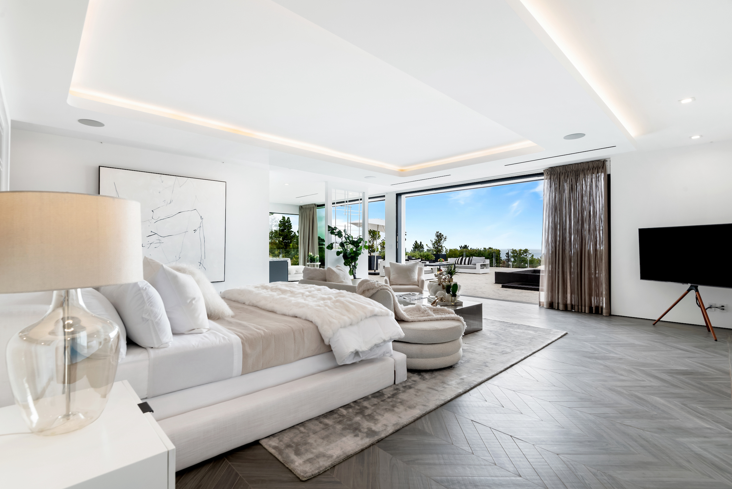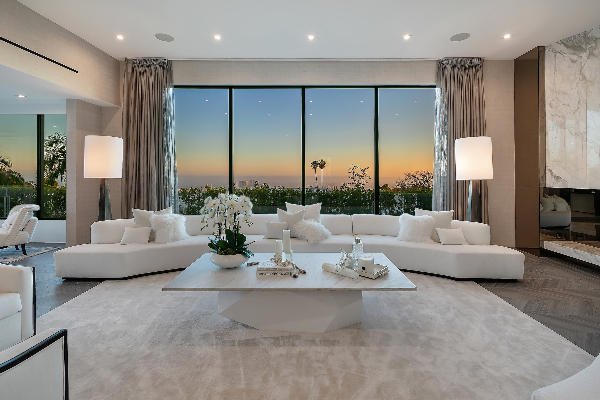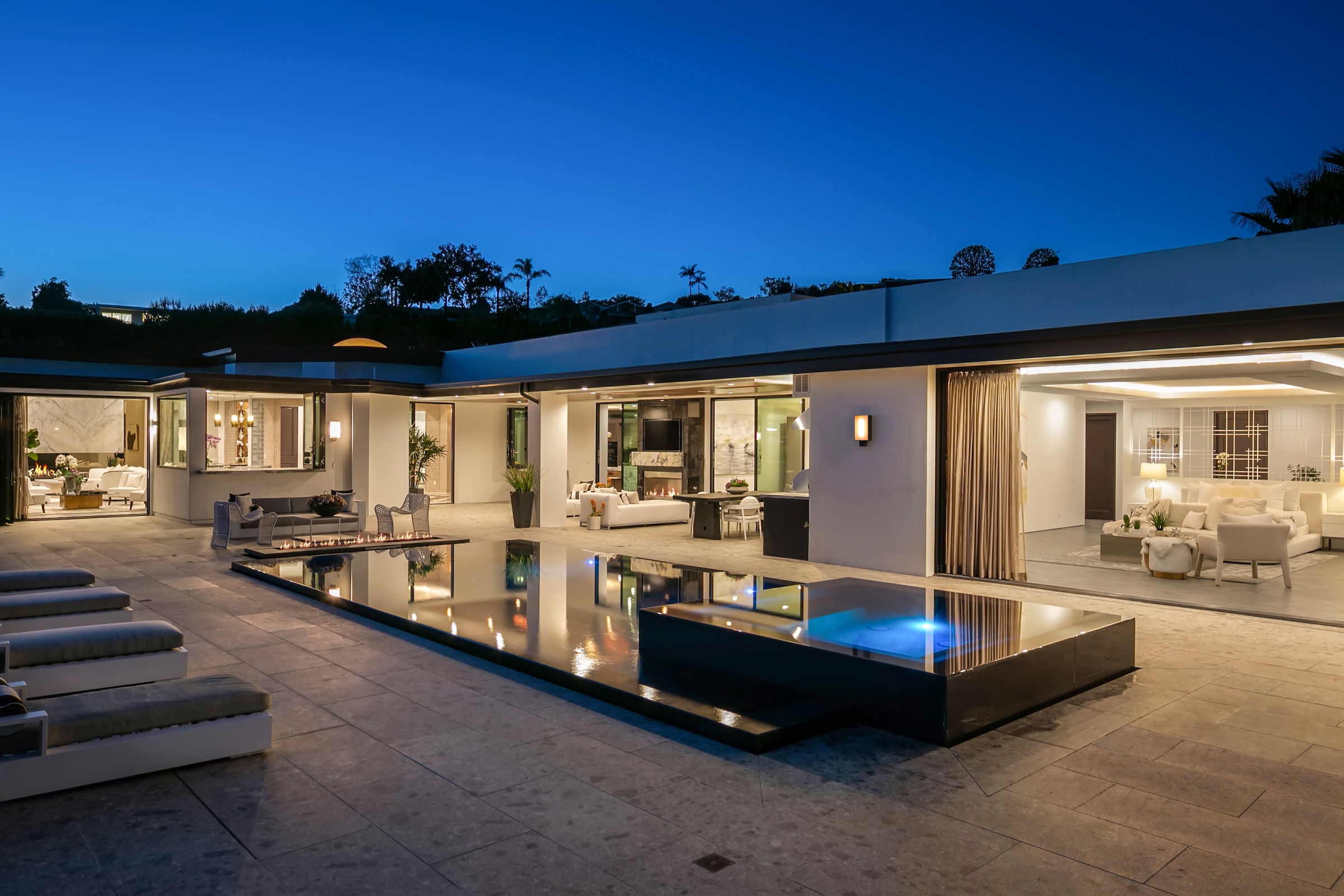 World class Trousdale Estates compound with unparalleled scale, design, and usability. Showcasing explosive views throughout the ~7,600 square feet of living space all on one level, 535 Chalette Dr features every modern amenity one could desire- 5 bedrooms, 7 bathrooms, several quintessential living spaces, a chef's kitchen, formal and informal dining, bar, theatre, gym, and office. Floor to ceiling glass doors from each room vanish offering LA's finest indoor/outdoor flow. The expansive master suite with a sitting room, fireplace, custom dual walk-in closets, and a stone-filled luxurious bathroom boasts city views through the wall of glass that slides open to the backyard. Sensational and sleek backyard with a state-of-the-art kitchen, raised edge infinity pool, spa, fire feature, dining area and lounge space. Designed to elevate the art of living and entertaining, the home is fully operated and secured by smart systems. Also offered for lease at $65,000/mth.