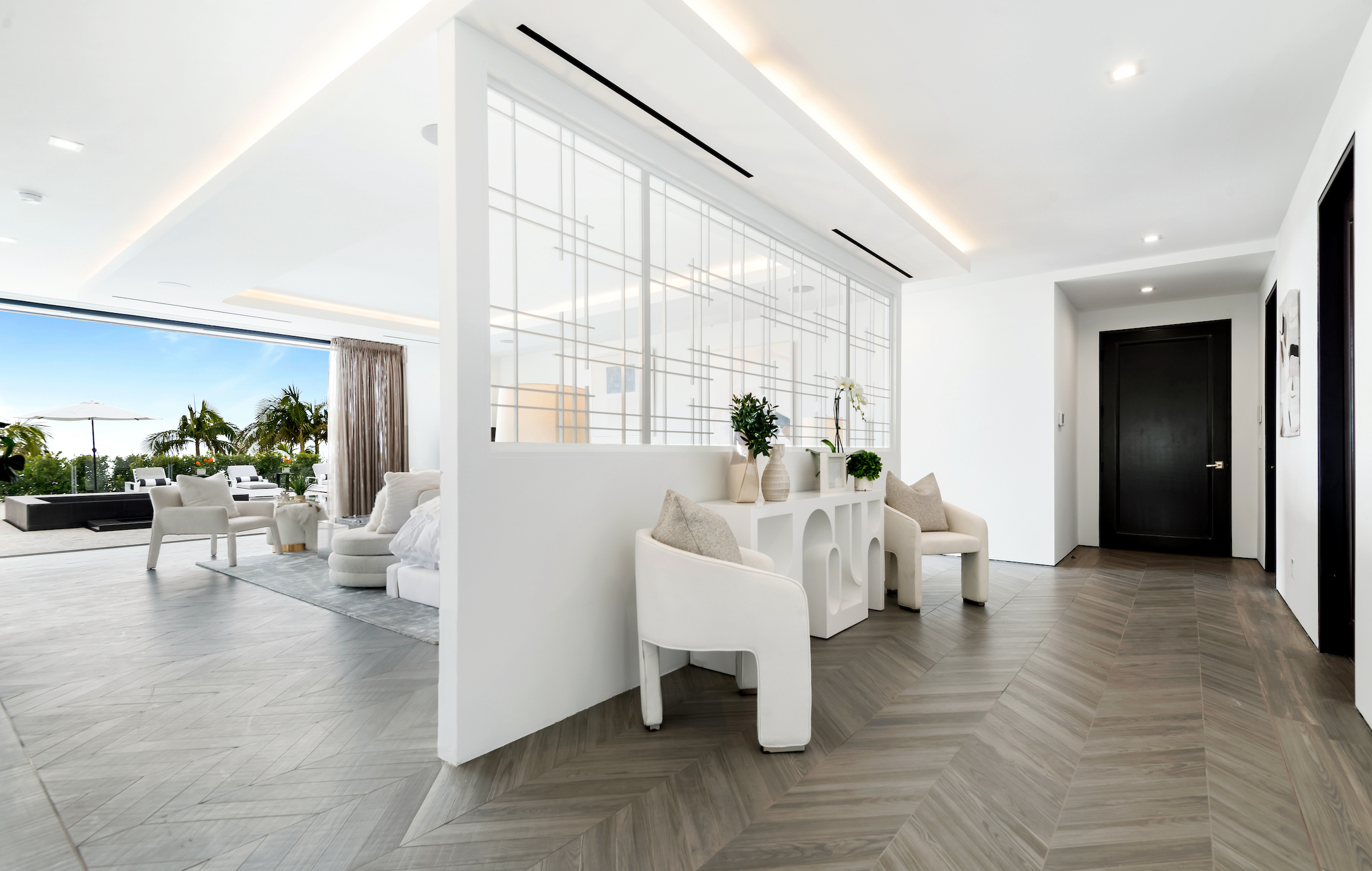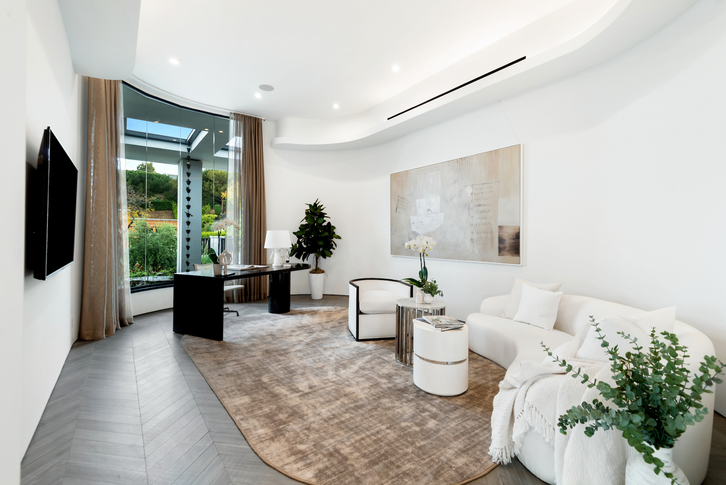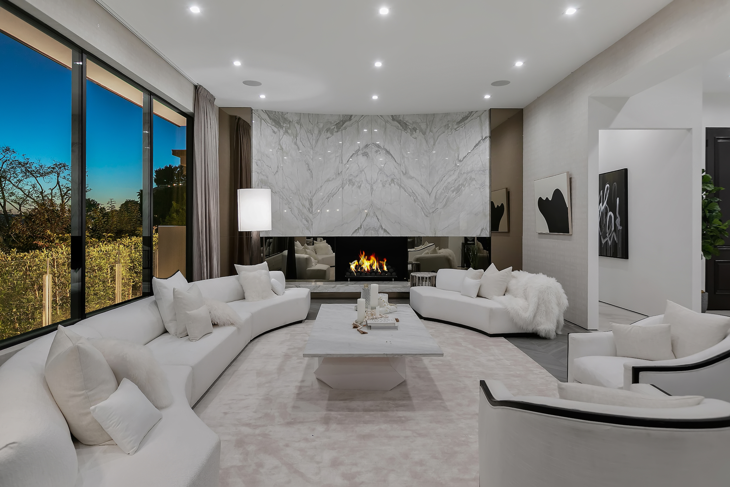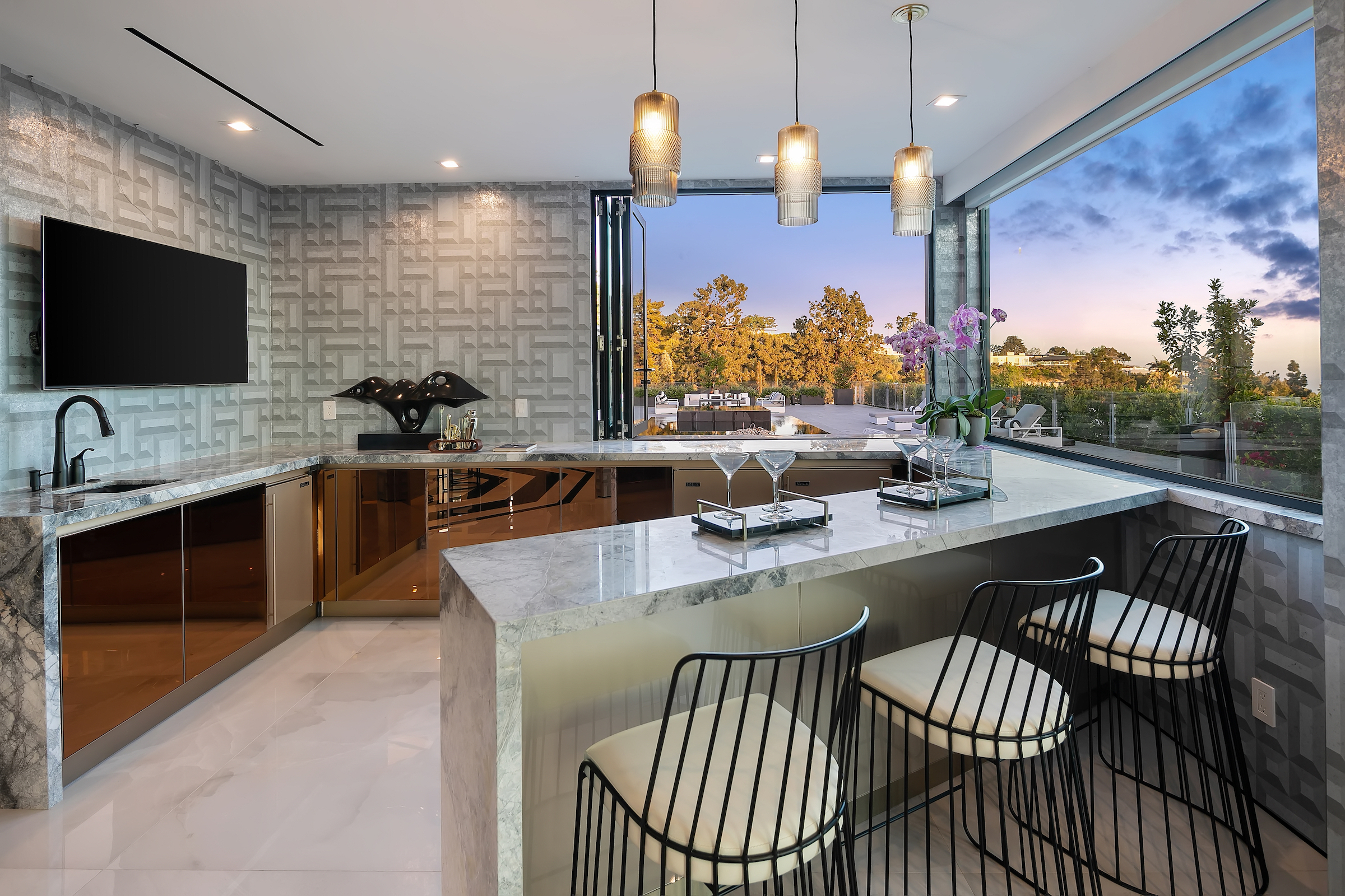 World class Trousdale Estates compound with unparalleled scale, design, and usability. Showcasing explosive views throughout the ~7,600 square feet of living space all on one level, 535 Chalette Dr features every modern amenity one could desire- 5 bedrooms, 7 bathrooms, several quintessential living spaces, a chef's kitchen, formal and informal dining, bar, theatre, gym, and office. Floor to ceiling glass doors from each room vanish offering LA's finest indoor/outdoor flow. The expansive master suite with a sitting room, fireplace, custom dual walk-in closets, and a stone-filled luxurious bathroom boasts city views through the wall of glass that slides open to the backyard. Sensational and sleek backyard with a state-of-the-art kitchen, raised edge infinity pool, spa, fire feature, dining area and lounge space. Designed to elevate the art of living and entertaining, the home is fully operated and secured by smart systems. Also offered for lease at $65,000/mth.