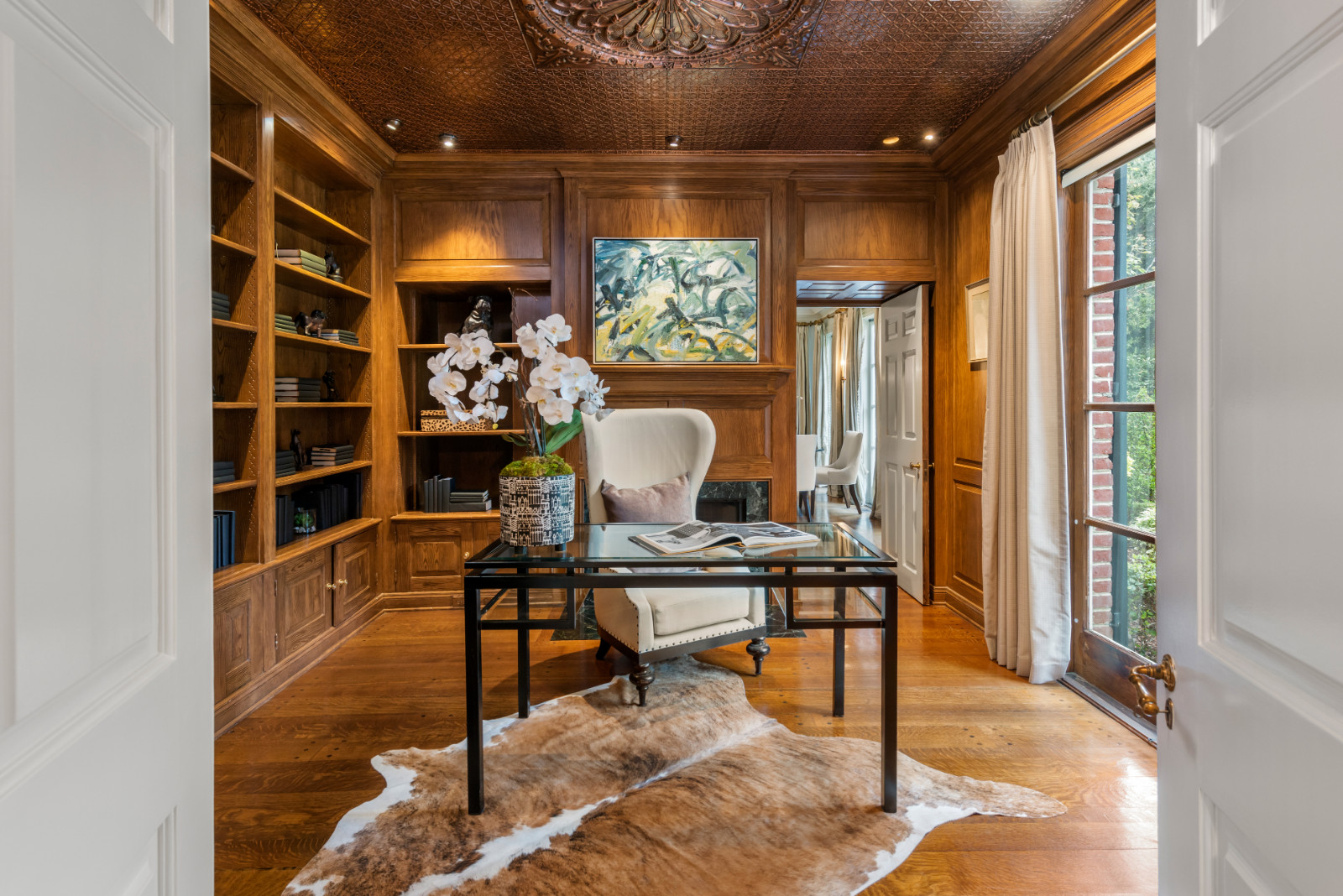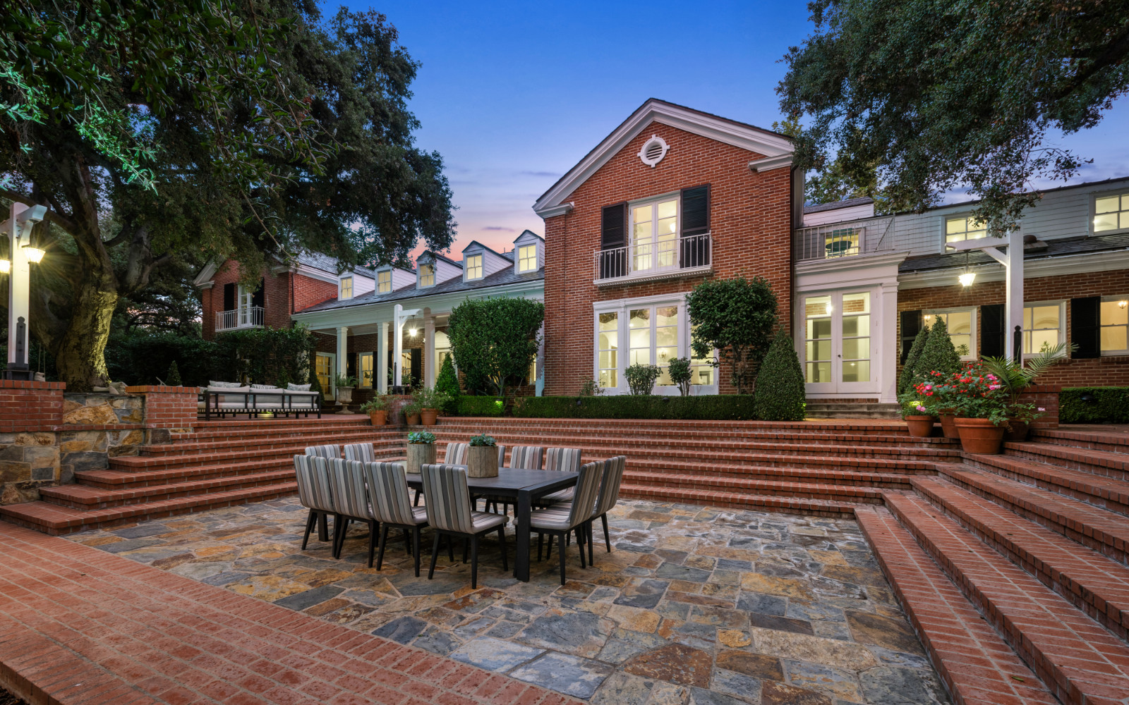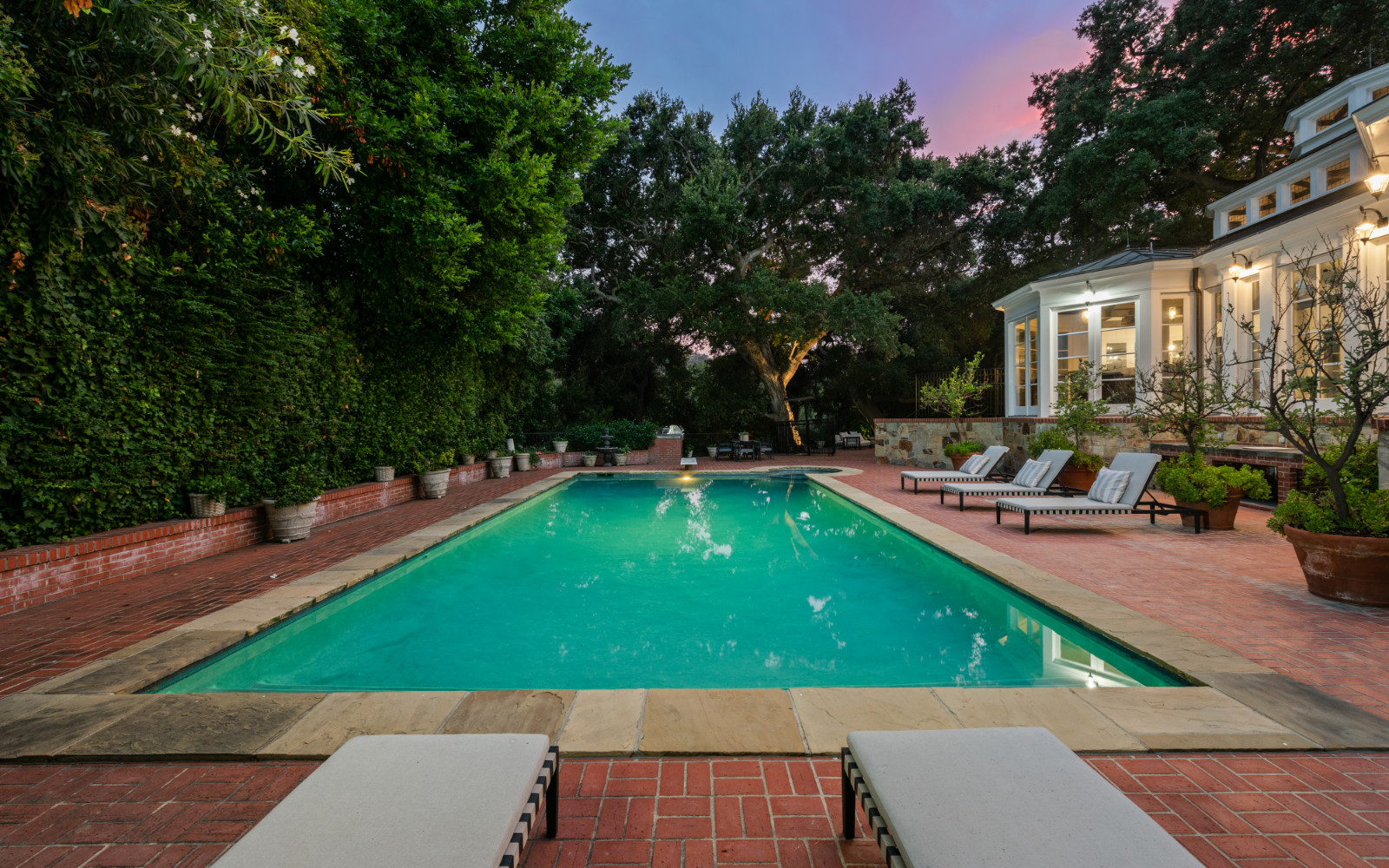 string(1823) "Welcome to this historic 1928 Colonial Estate by famed architect Myron Hunt, nestled on a peaceful tree-lined street, offering the ultimate comfort and convenience. Sprawling on a 2-acre lot with its own private tennis court, this well-maintained residence greets you with a grand circular driveway with motor court and a proper formal foyer. Perfect for any type of entertainment, this estate features expansive grounds with numerous areas for hosting parties and events, along with well-designed interior spaces that offer a spacious floor plan with 5 bedrooms and 5 bathrooms. Explore the main level and discover a large living room with fireplace, grand formal dining room that overlooks the centuries-old oak trees, a one-of-a-kind original 1920s kitchen with mahogany counters now used as a butler's pantry, and an impressive chef's kitchen with large island, indoor grill and original antique stove. The family room welcomes you with soaring beamed ceilings, a stunning two-story fireplace, custom built-in cocktail bar and dining area all that overlooks the pool and outdoor kitchen. Directly off the family room is the large pool and spa, complete with a big sun deck, outdoor BBQ bar and al fresco dining. Offering a world of privacy with lush landscaping throughout, the backyard features verdant rolling land with gorgeous knotty oak trees, private walking tails, fountains and ponds, a grand outdoor dining amphitheater and a main lounge area. Make your way down the lazy brick stairs to your newly completed full size private tennis court complete with reception landing area and shaded viewing lounge. Not to be overlooked, the estate is complete with a large 4-car garage and a sizable guest house above that is ready for anything you dream up. You do not want to miss this rare opportunity to own this gem!"