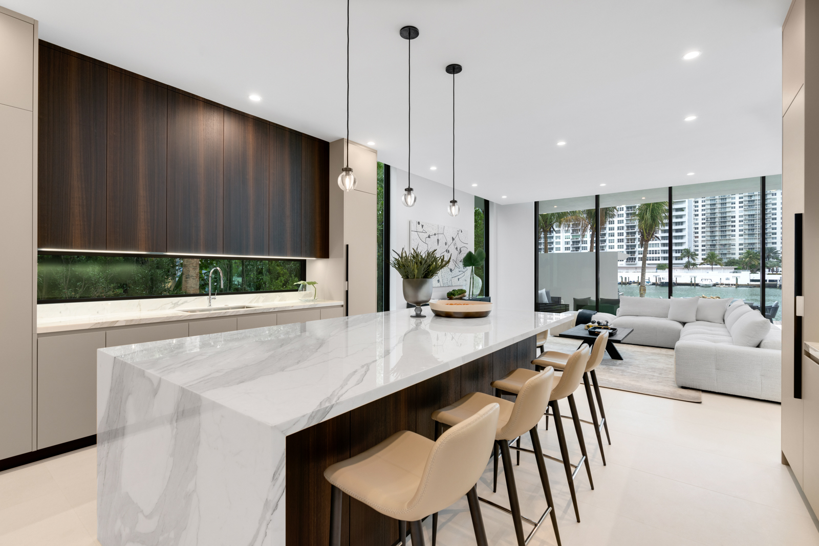 string(806) "Step Inside With Me! 5777 is the only brand new waterfront home available on the esteemed Pinetree Drive. Designed with modern lines and warmth, the light-filled foyer’s striking 26ft ceilings and floating white oak staircase lead you to a great room for today’s style of living. With water all around, benefit from dual Mia Cucina kitchens, show & chef, featuring Calacatta stone and Miele/Wolf appliances. The 2nd floor, characterized by white oak planks and floor-to-ceiling ESW windows, is home to 6 versatile bedrooms and a media lounge. Entertain on the water by the 37ft long pool, soak in the oversized hot tub, and enjoy a summer kitchen + full cabana bath + new 76’ Seawall. More noteworthy features: chilled wine room, custom bar, elevator, Savant System, 3-car garage and rooftop terrace."