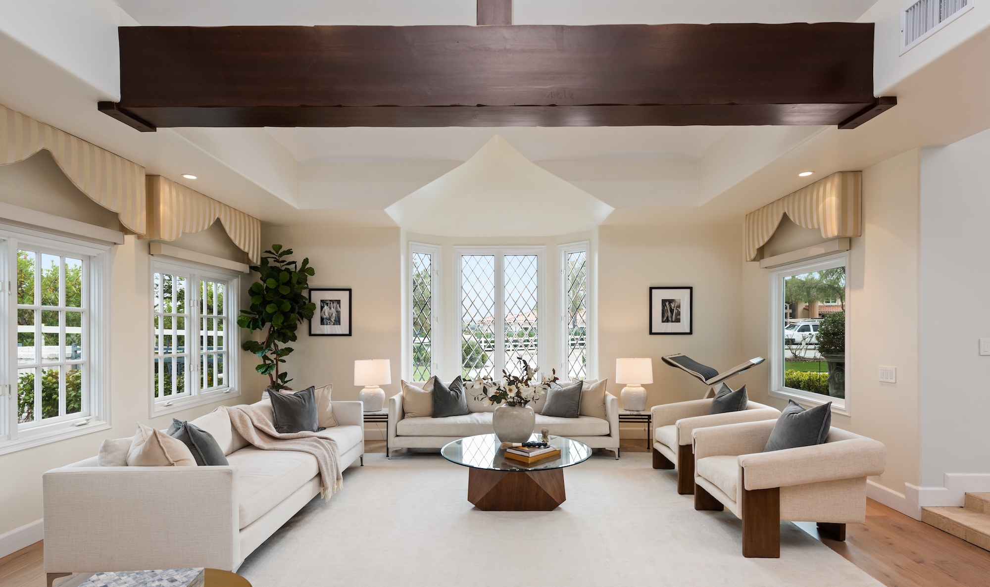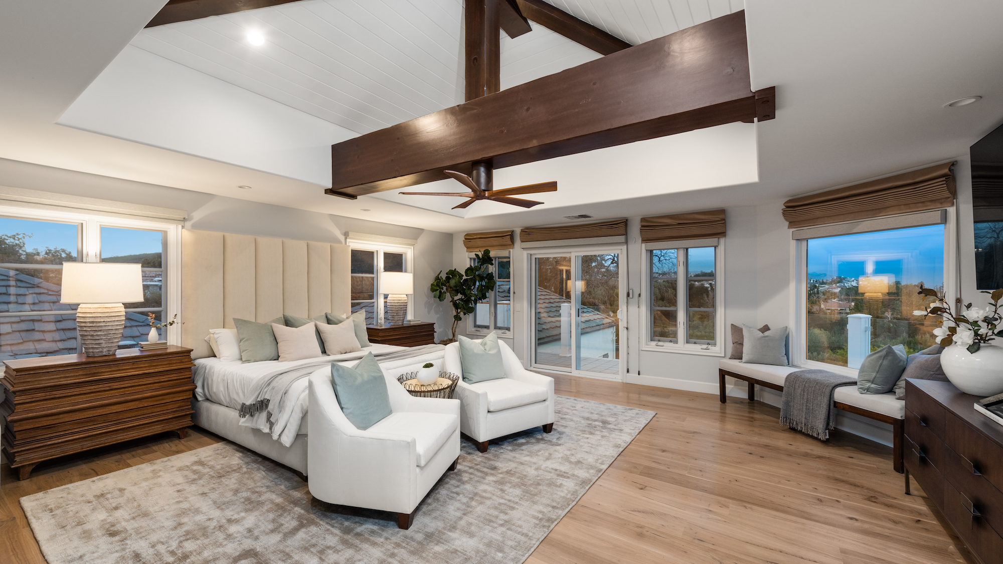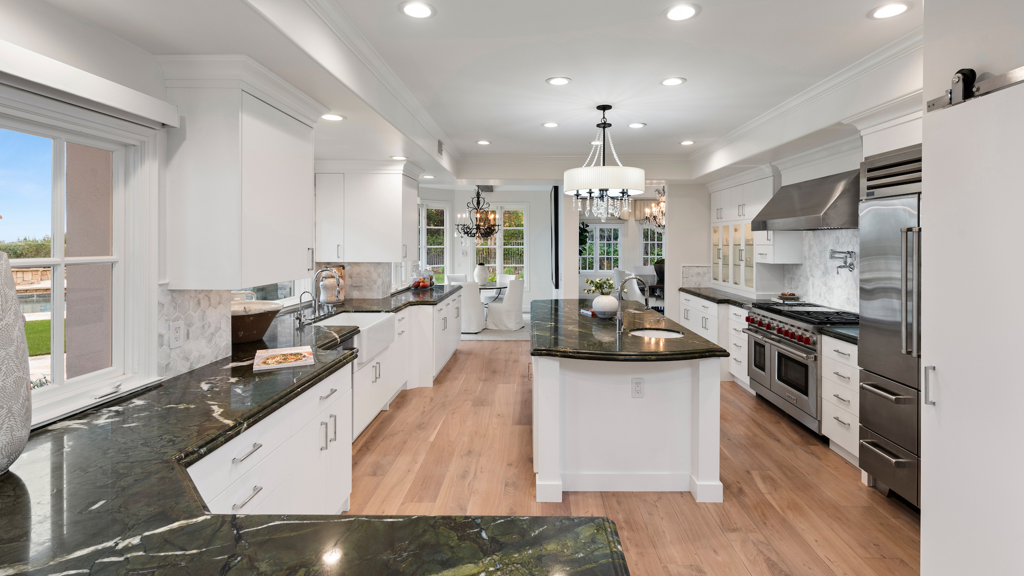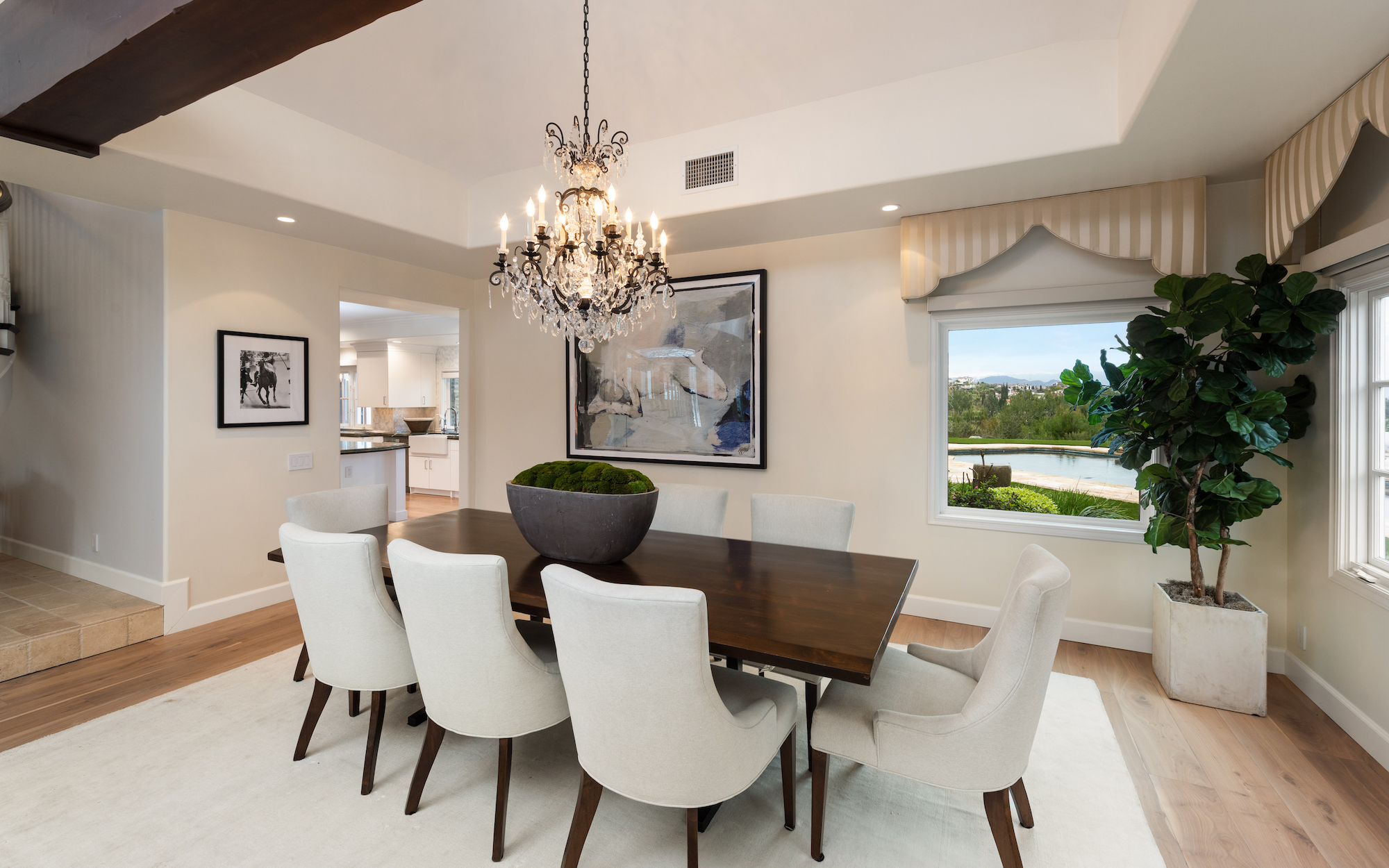 string(1744) "Welcome to 5933 Annie Oakley Rd, a Hidden Hills masterpiece that seamlessly blends timeless elegance with modern luxury. This stunning "Hamptons-style" classic underwent a major remodel in 2020, resulting in a French Farmhouse that feels like new construction. Enjoy the serenity of the location on a private cul-de-sac within the highly coveted 24-hour guard-gated enclave of Hidden Hills. The property boasts breathtaking, explosive city views that stretch across a 180-degree panorama. With meticulous attention to detail, this custom residence spans ~ 5,800 sq ft and is situated on over one acre of meticulously manicured gardens. As you enter the home, you are welcomed with an impressive interior, featuring 6 bedrooms and 6 baths, with a spacious and open-concept great room, adorned with open-beamed cathedral ceilings. The gourmet kitchen is complete with a grand center island and includes top-of-the-line appliances, granite counters, a farmhouse sink, and is complete with a cozy breakfast nook. Upstairs, the primary suite is a true retreat with open-beamed ceilings, a private balcony offering stunning city views and overlooks the grounds and a newly renovated, no-expense-spared lavish spa-like bathroom with soaking tub and steam shower. Additional amenities and features include a media room with wet bar, built-in BBQ area with al-fresco dining, a large custom salt-water pool and spa, a three-car garage with direct access, and a backup generator for the whole home. Experience the epitome of Hidden Hills living in this meticulously designed and thoughtfully upgraded residence. Don't miss the opportunity to call this masterpiece home, where luxury, sophistication, and panoramic views converge in an exceptional setting."