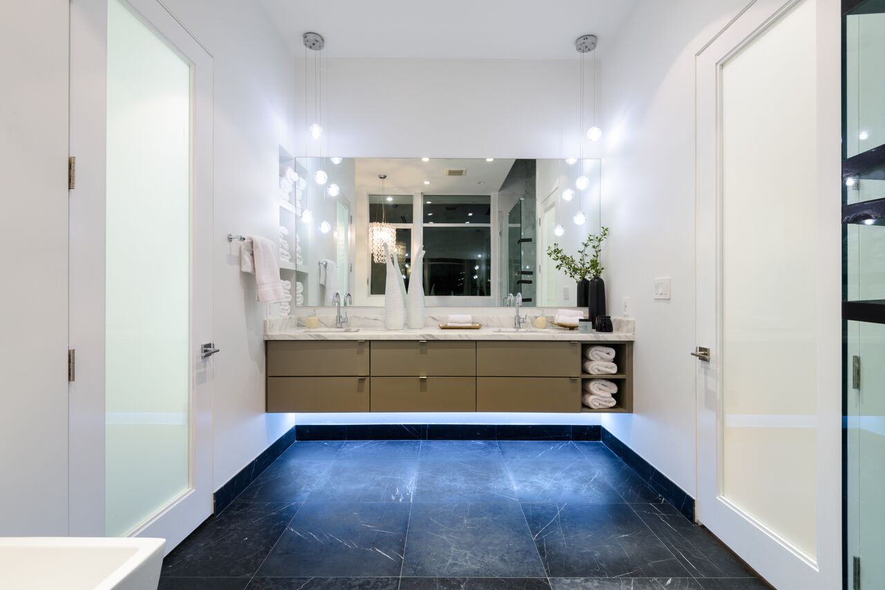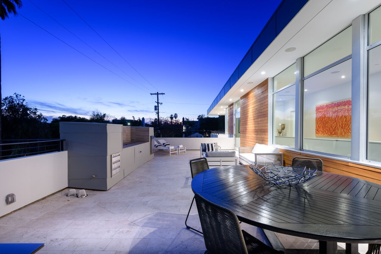 Breaking the mold of the West Hollywood McMansions, this custom designer was built by the developer for his own family and is easily distinguished from the competition. Beyond the hedged and gated entrance is a zen water feature with a dramatic waterfall in a lush and intimate setting. Inside this chic architectural home is an open concept floor plan w/ formal living room & soaring ceilings, a generously sized dining room, and a gourmet chef's kitchen equipped with custom cabinetry. Outside is a roof top deck with views of the city and surrounding hills. Enjoy the best the neighborhood has to offer via close proximity to The Grove, local farmer's market, shopping, dining and more.