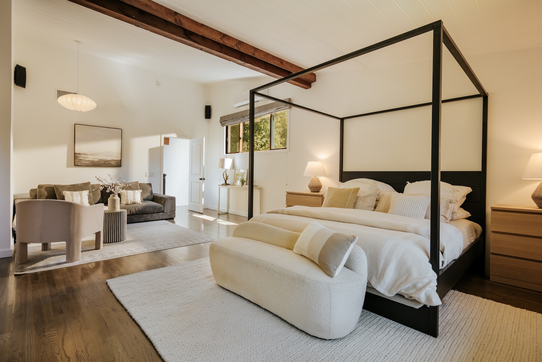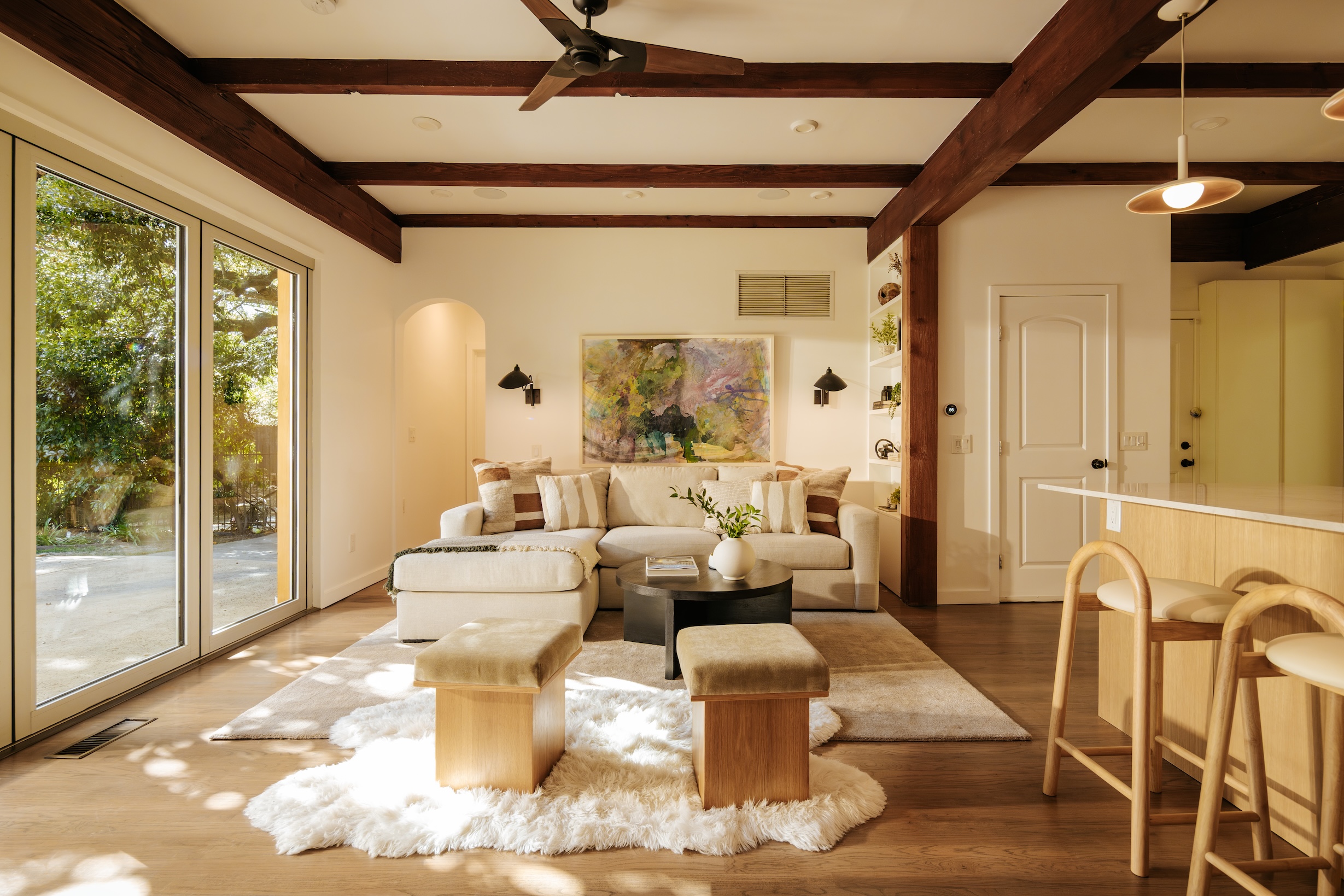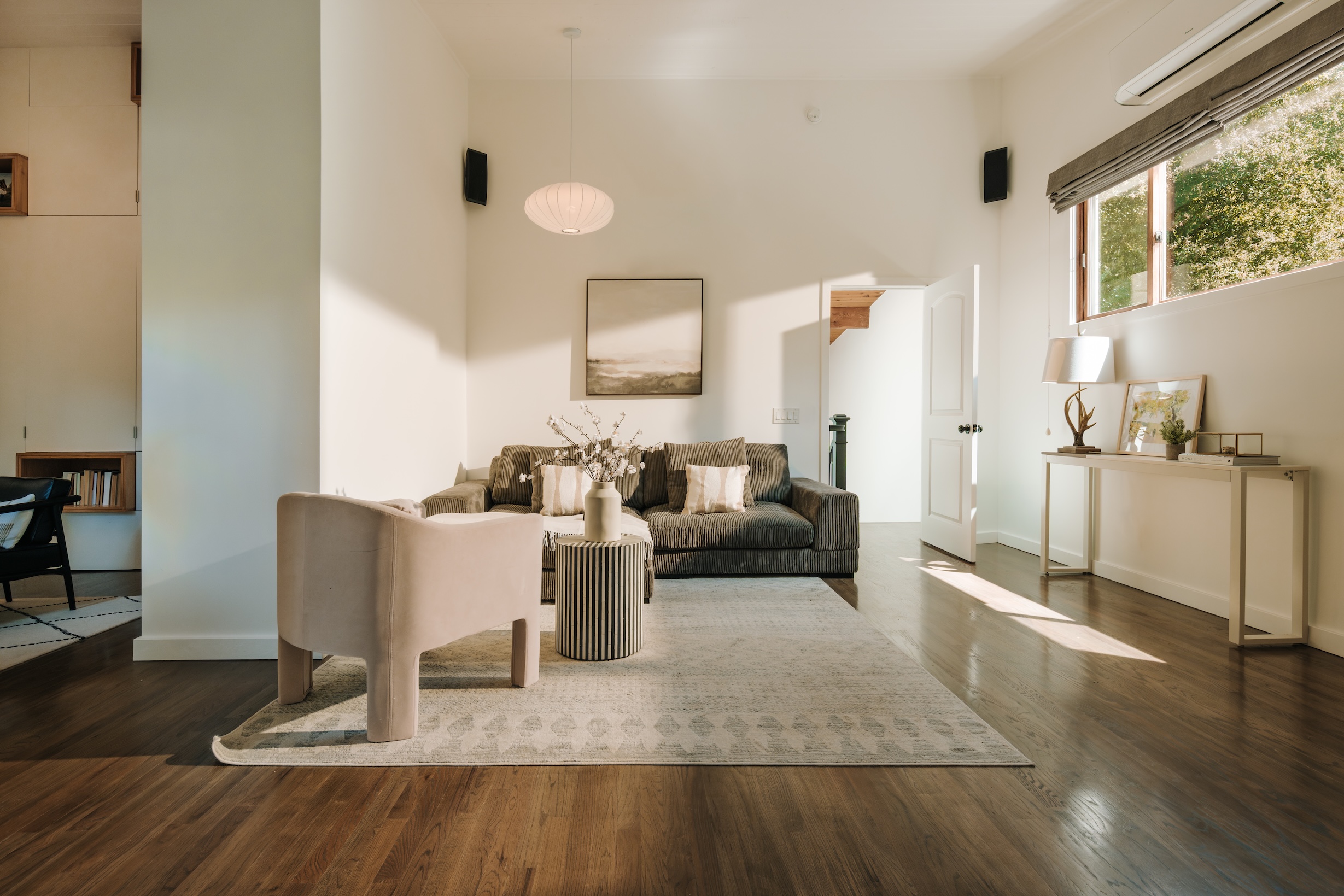 Welcome to 621 Mildred Avenue, a stunning architectural masterpiece nestled in the heart of Venice. This sleek, modern residence is the epitome of elevated coastal living, offering seamless indoor-outdoor flow, refined finishes, and thoughtfully curated design throughout. The main level features a bright, open-concept floor plan with floor-to-ceiling windows that flood the space with natural light and frame lush greenery. The dining area is anchored by a dramatic double-sided fireplace and enhanced by elegant pendant lighting, while the adjacent chef's kitchen showcases a sculptural island, integrated appliances, and a striking marble backsplash. Ascend to the expansive rooftop deck, an entertainer's dream with panoramic city views. This private oasis is complete with a built-in BBQ, lounge seating, dining area, and a linear fire pit, perfect for alfresco dining or sunset cocktails. Sophisticated yet welcoming, this home offers the ideal blend of comfort, style, and function in one of LA's most desirable neighborhoods.