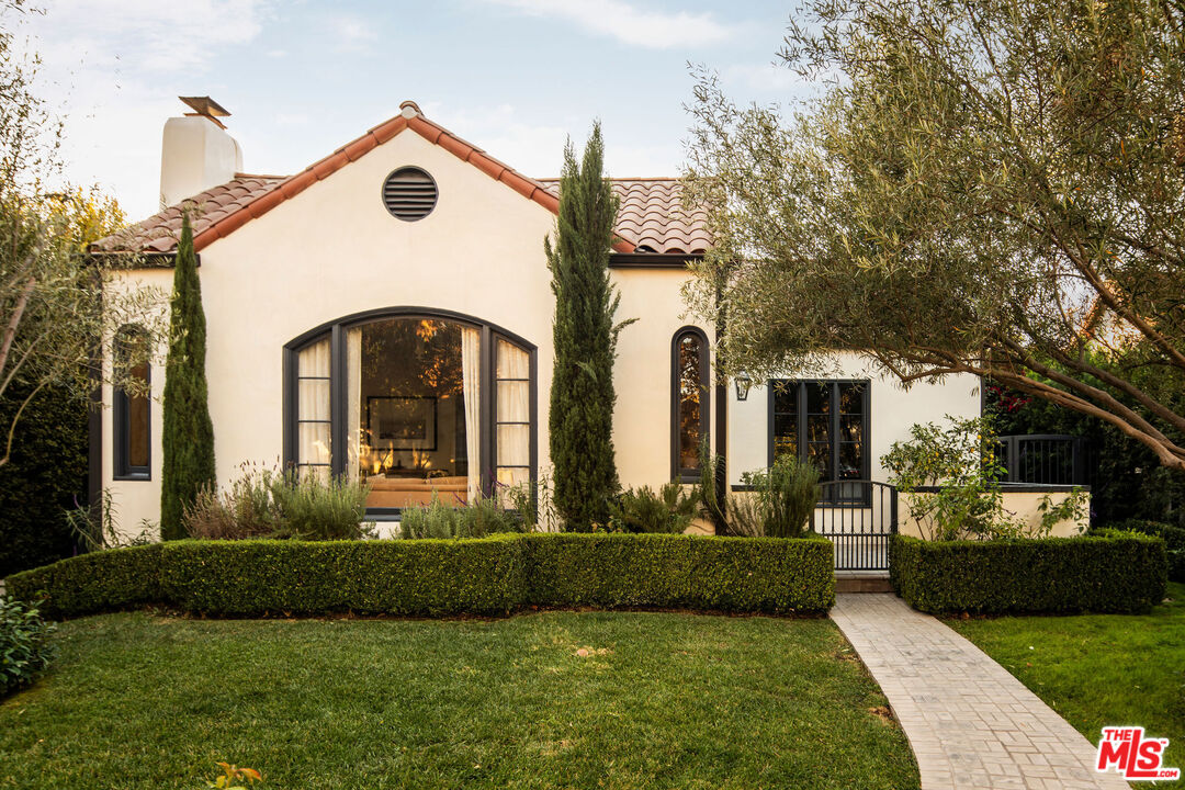 Welcome home to this charming and spacious renovated Spanish, located on one of the best streets of historic Hancock Park HPOZ. Tucked back on picturesque, tree-lined McCadden Place, this updated oasis effortlessly blends classic, timeless elegance with modern comfort. Wind your way up the walkway enclosed by boxwoods and white roses, and continue up the path to a serene front yard with olive trees and lavender. Open the character rich front door and be greeted by a home filled with warmth and care. An excellent floor plan with light filled spaces, hardwood floors, arched entryways, and open concept entertaining areas. Cozy up in your formal living room and lounge away the days next to your handsome fireplace. Tasteful formal dining room with airy french doors, walls dotted with unique plaster moldings and rounded ceilings, reminiscent of a by-gone era. The kitchen is a chef's dream with white marble countertops, built-in stainless steel appliances including Wolf range and oven and Sub Zero fridge, farm sink, and built-in double pet bowls. Nestle into your morning routine in your breakfast nook and expansive entertaining area that opens out to the back yard via double doors with built-in magnetized screens. Entertaining area complete with Frame TV, Sonos system and custom built-in shelving perfect for any bibliophile or creative. An ideal floor plan of three bedrooms provides private separated spaces and plenty of ample closets. The Primary bedroom boasts its own en-suite bath with dual sinks and an enclosed glass shower with separate tub. Additional large walk-in double closets with custom built-in shelving and built-in cabinets for ample storage are just across the way. French doors open out to a lush, manicured backyard and high hedges where you are instantly transported to a hideaway in the city; an enchanted world of privacy, perfect for those beautiful LA nights, al-fresco dining, entertaining loved ones, or lounging poolside. You can also soak in your own spa and swim in your own hearted pool, ideal for enjoying year round wonderful California days. The home boasts a delightful one bedroom, one bath ADU - complete with wine fridge, sink and mini-split system providing additional space for visitors or added value. Other amenities include tankless water heater, Nest System, Sonos speakers, side-by-side washer/dryer. Gated and hedged for privacy this secluded compound is situated amongst the best Hancock Park has to offer: Wilshire Country Club, LA Tennis Club. Enjoy acclaimed wood-burning-oven pizzas at Mozza, trendy Stir Crazy, Domain LA, new Levain Bakery, Go Get 'Em Tiger, Starbucks, Salt and Straw, Village Pizzeria, Peet's Coffee, Great White, Kreation. Savor the freshest produce and artisanal goods at the Larchmont Farmers Market on Wednesday & Sundays. Located in the desirable Third Street School District. Offering not only the quintessential comforts, detailed elegance and rich in character, but also the convenience of a thriving neighborhood, this is the perfect place to call home.