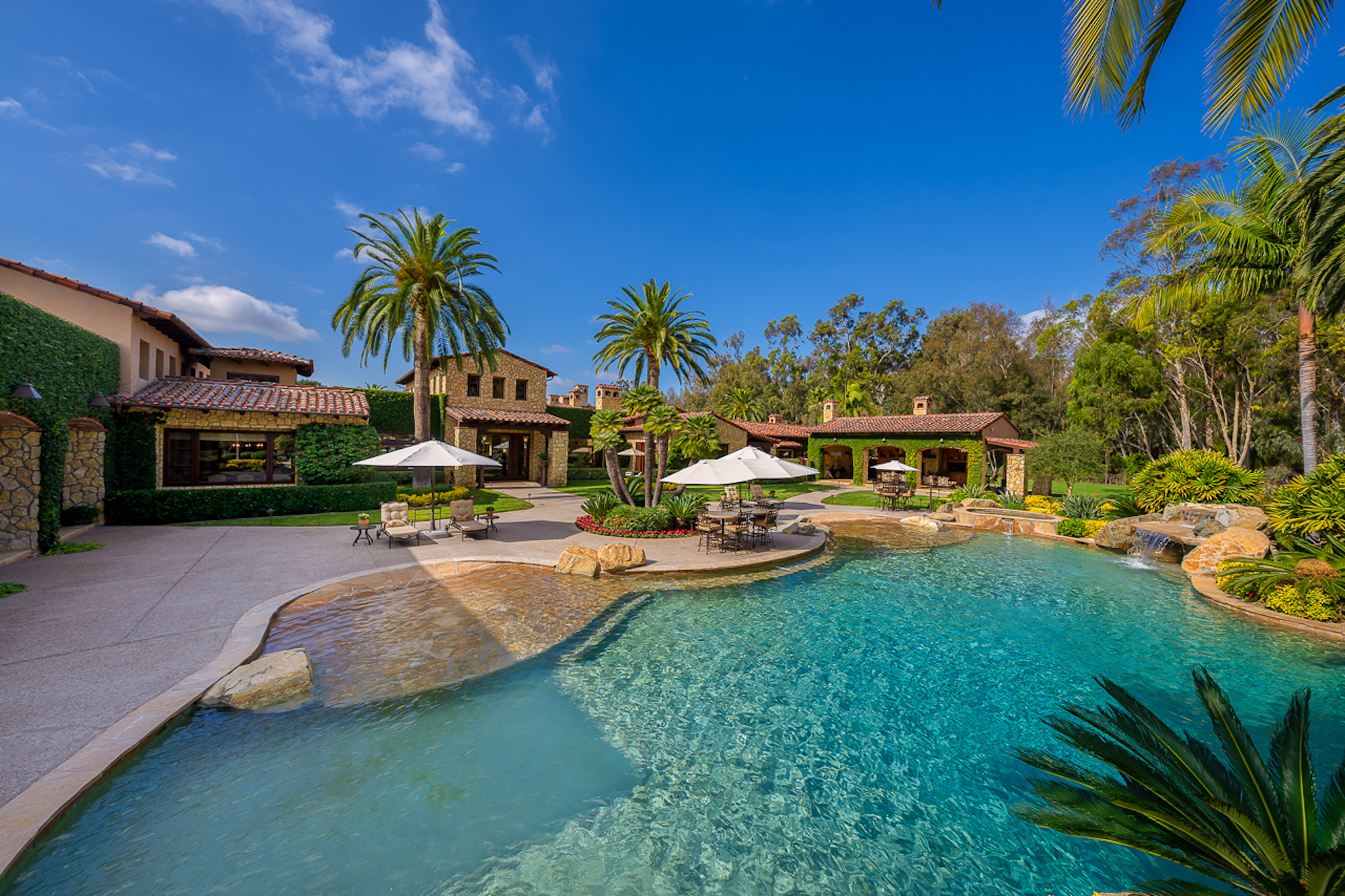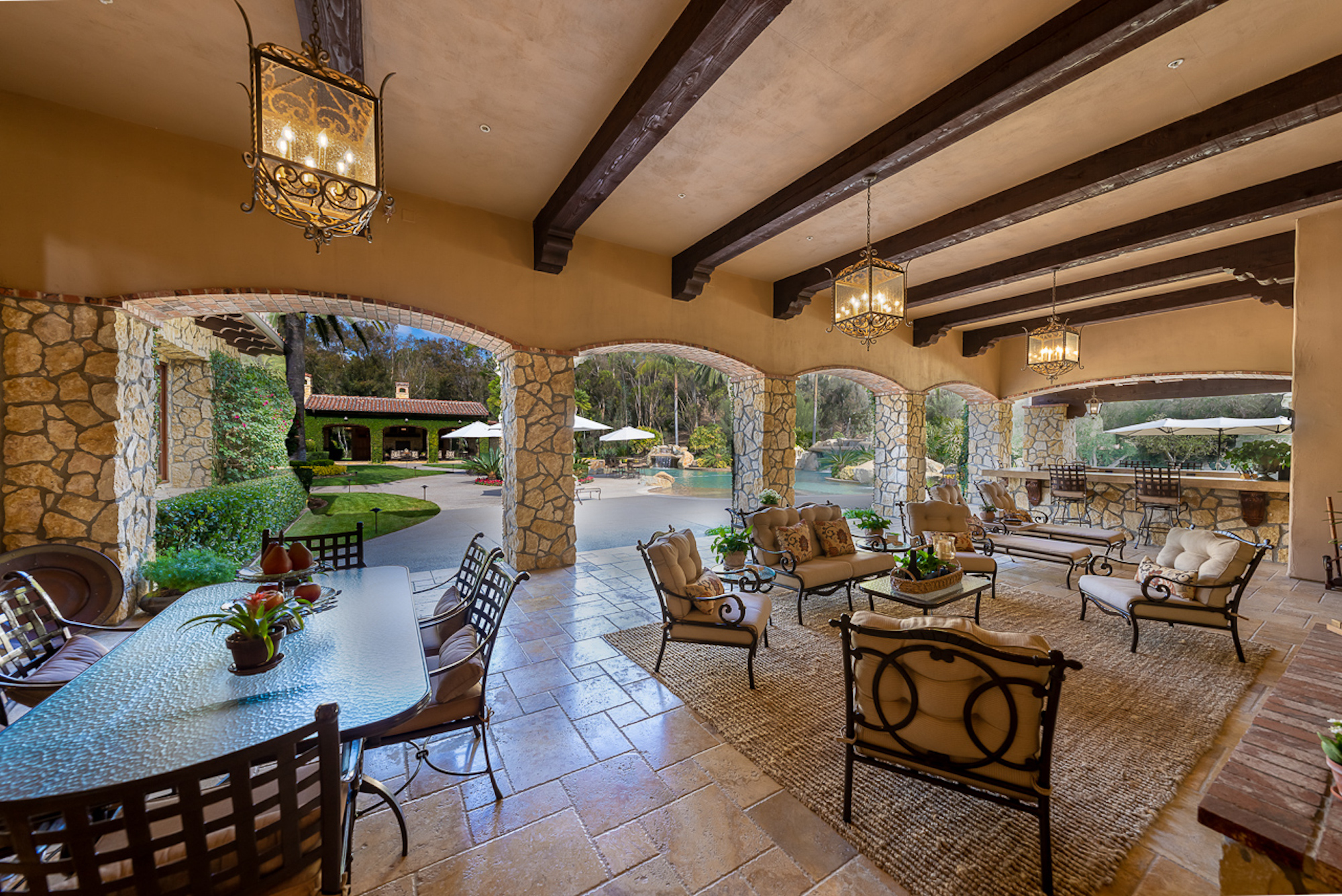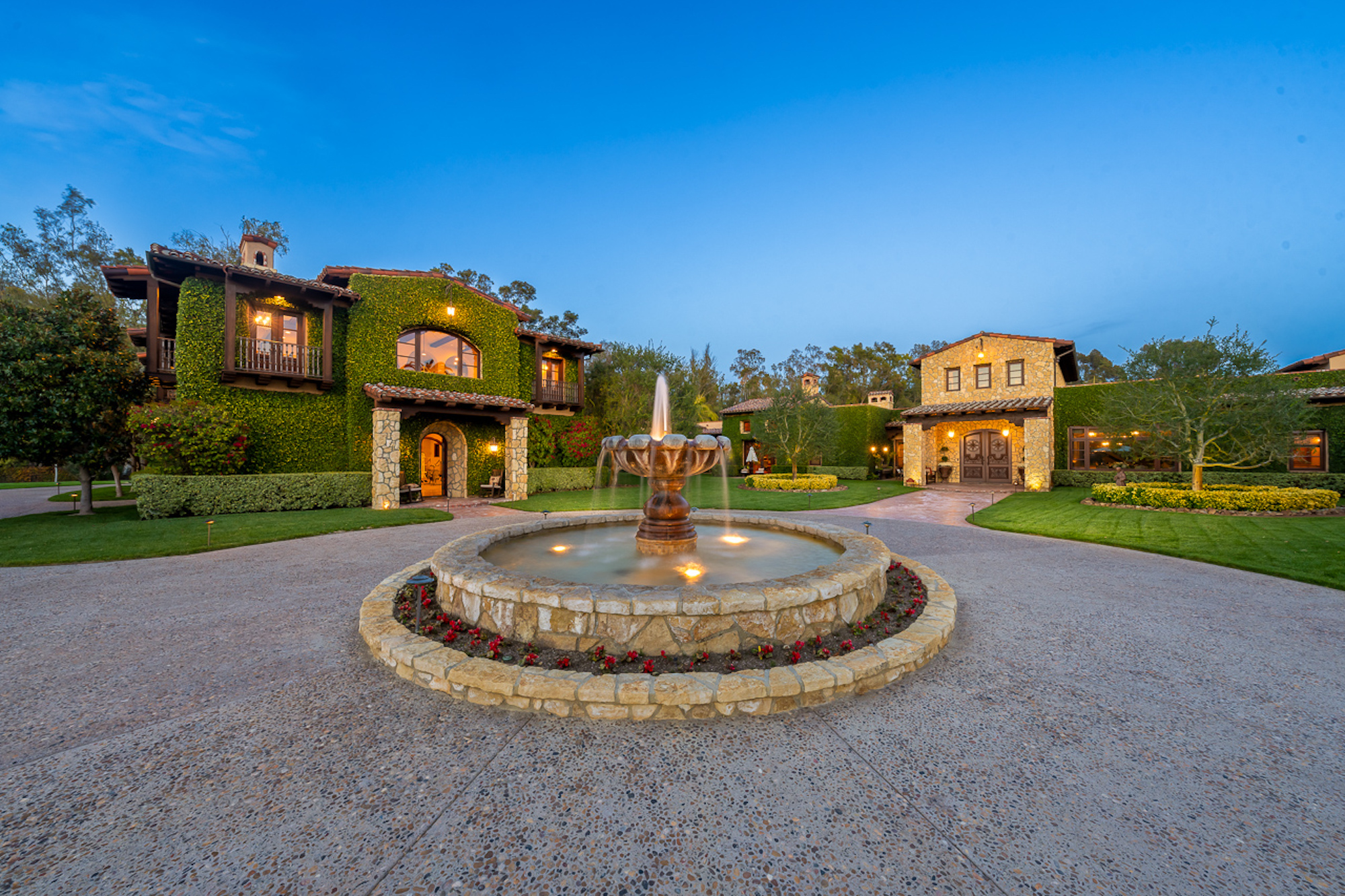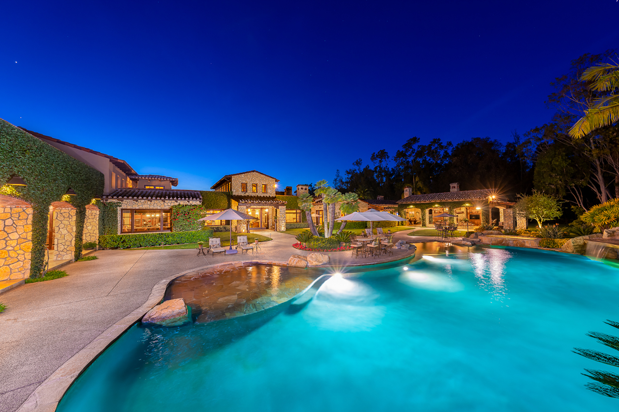 string(697) "Experience a sprawling Mediterranean estate situated across 4.71 acres in coveted Rancho Santa Fe! A private gated entry leads to your own Tuscan villa through a circular drive with a serene fountain surrounded by four separate stone & vine covered structures with lush greenery. Meticulous attention to detail with a grand foyer, rustic stone tile, exposed wood beams, archways, soaring ceilings, abundant natural light with expansive windows & skylights, imposing fireplaces, and high-end fixtures & finishes throughout. A great room that is unparalleled in size and refinement, perfect for entertaining with an adjacent chef's kitchen, separate dining area, wine tasting room and billiard room."