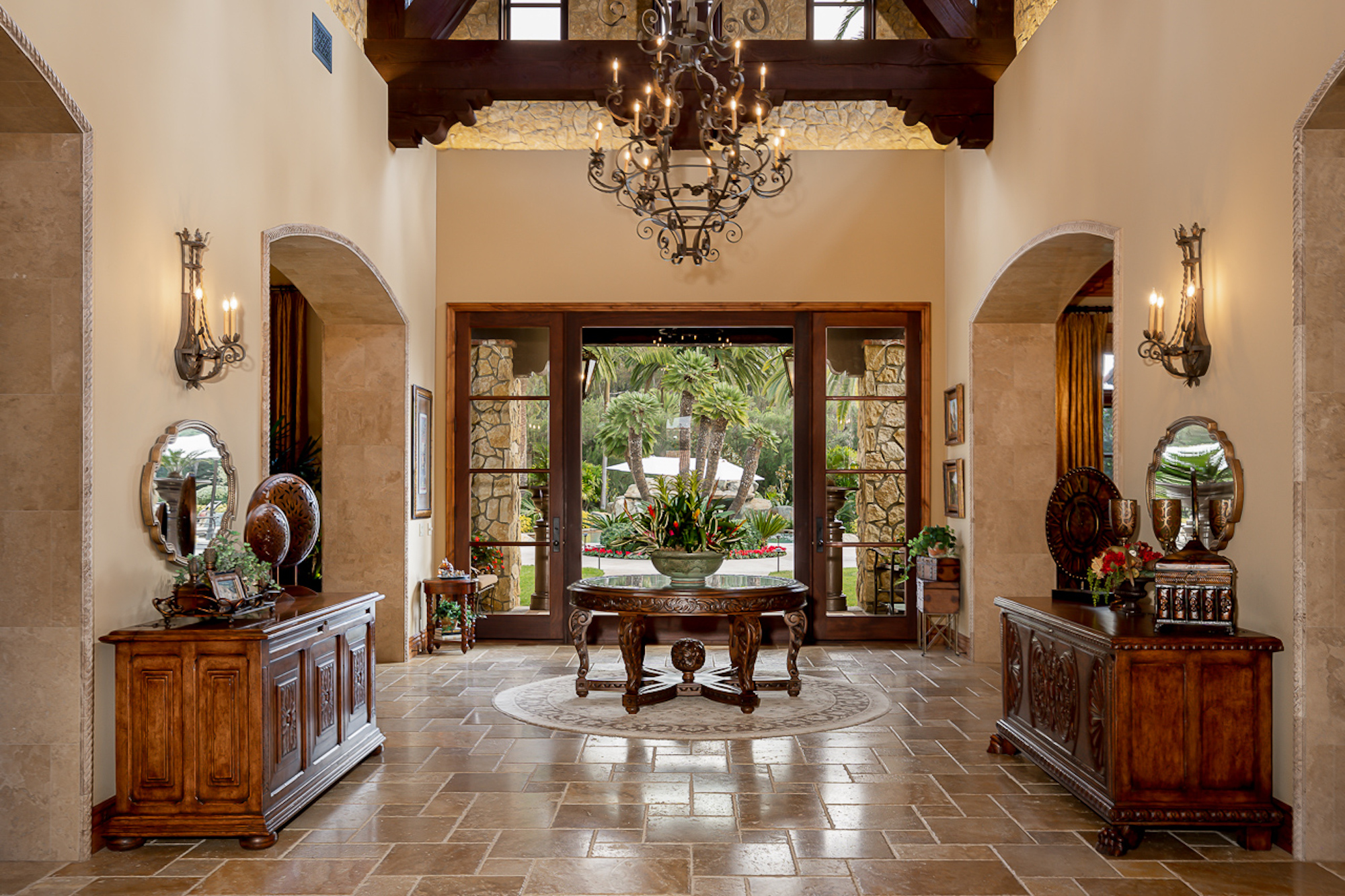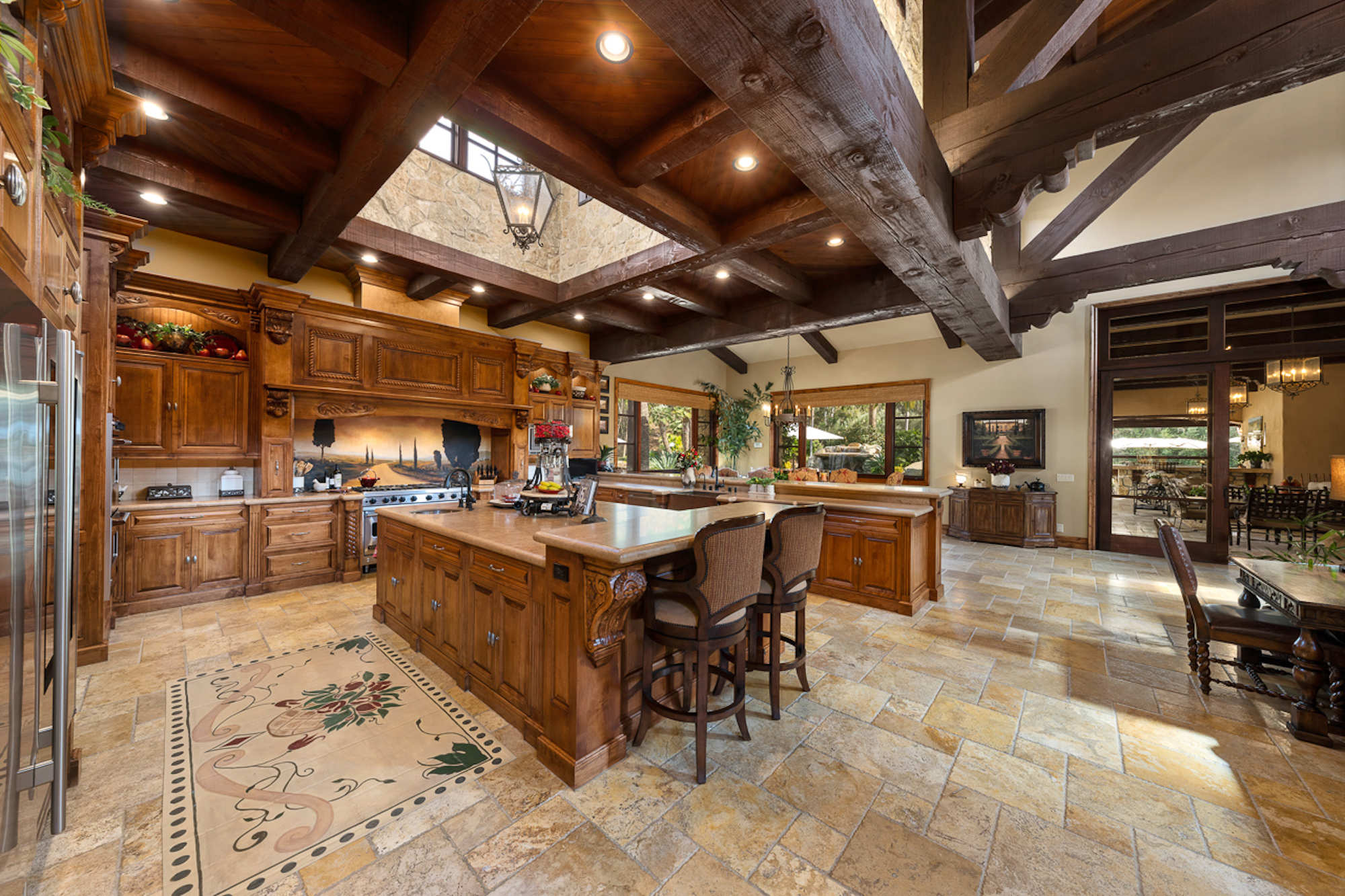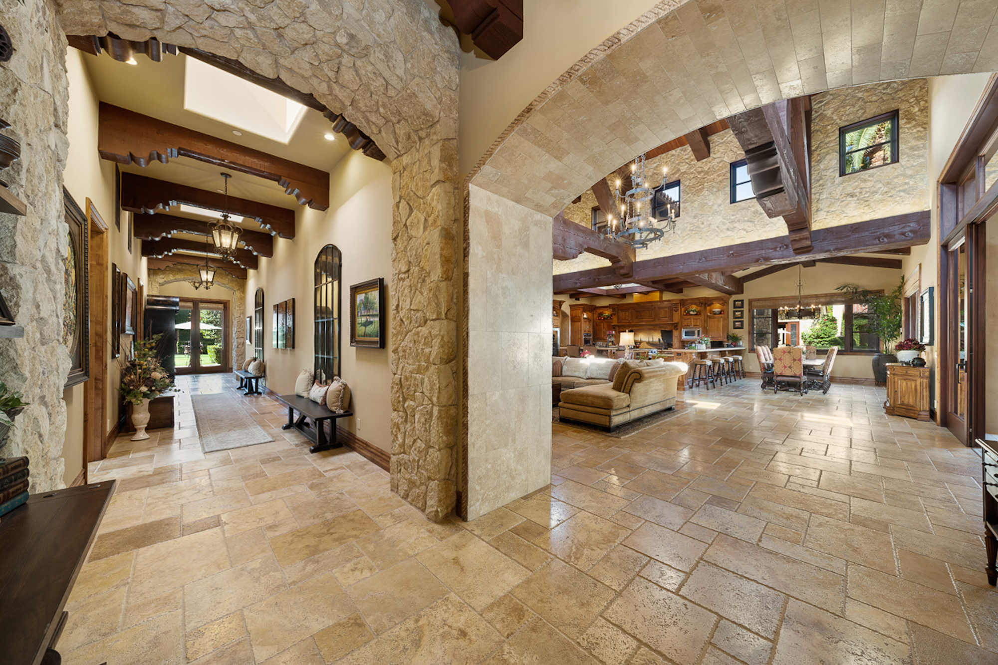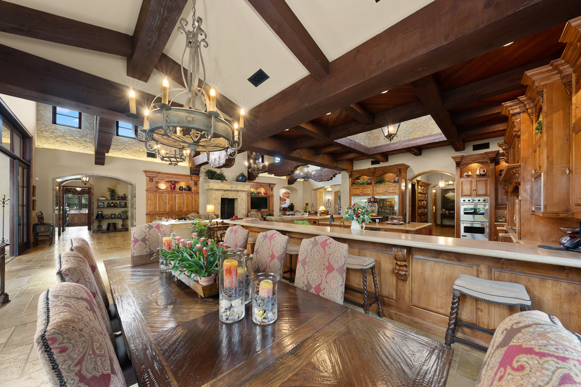 string(697) "Experience a sprawling Mediterranean estate situated across 4.71 acres in coveted Rancho Santa Fe! A private gated entry leads to your own Tuscan villa through a circular drive with a serene fountain surrounded by four separate stone & vine covered structures with lush greenery. Meticulous attention to detail with a grand foyer, rustic stone tile, exposed wood beams, archways, soaring ceilings, abundant natural light with expansive windows & skylights, imposing fireplaces, and high-end fixtures & finishes throughout. A great room that is unparalleled in size and refinement, perfect for entertaining with an adjacent chef's kitchen, separate dining area, wine tasting room and billiard room."