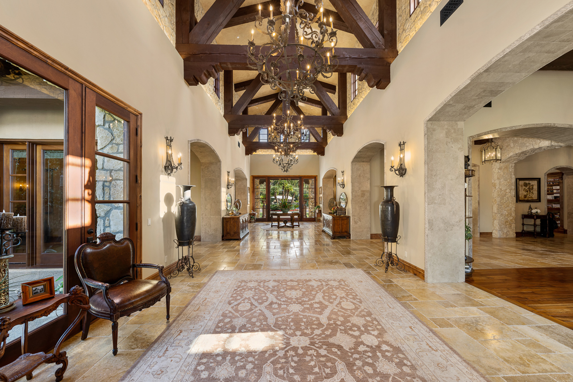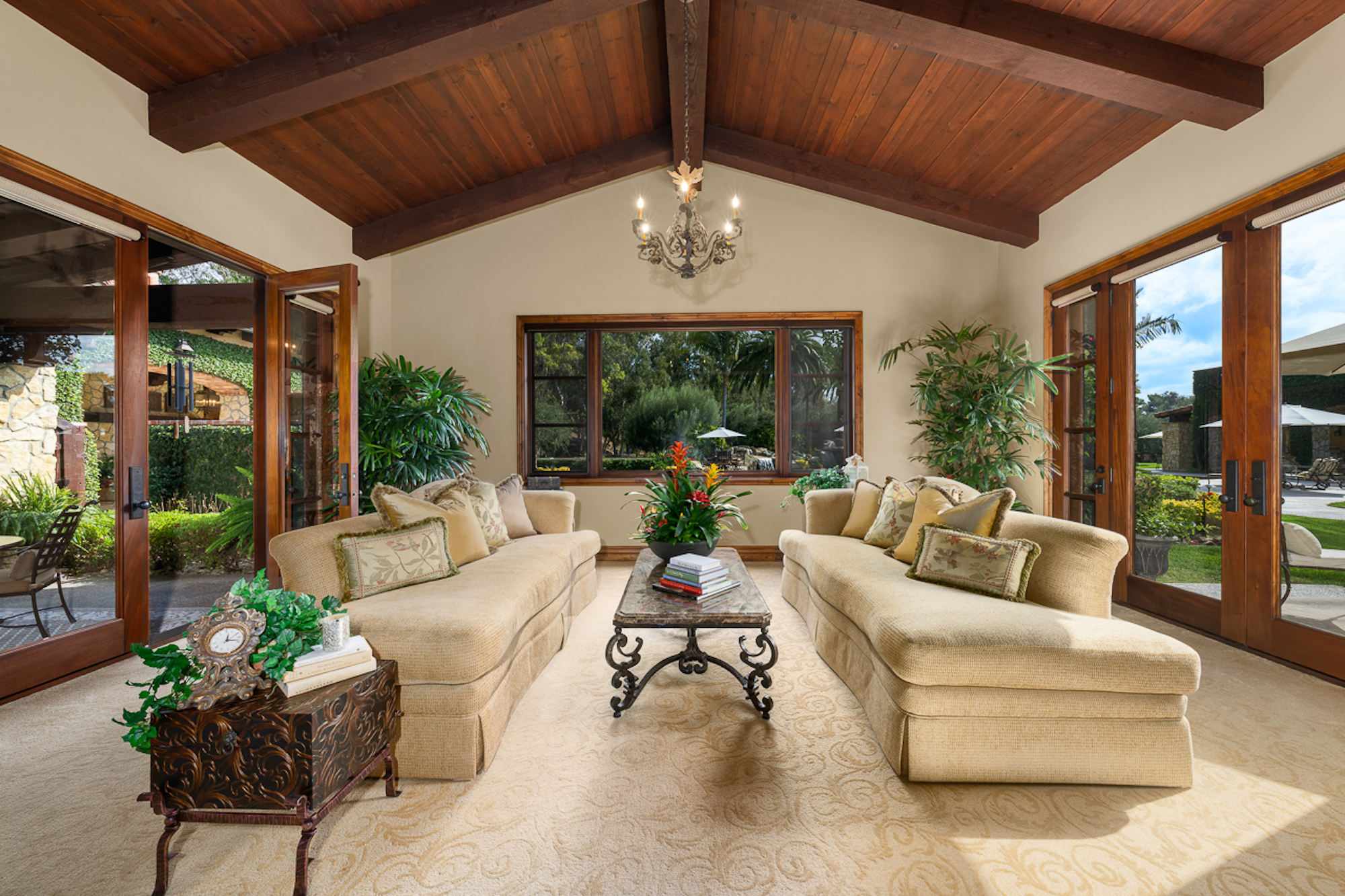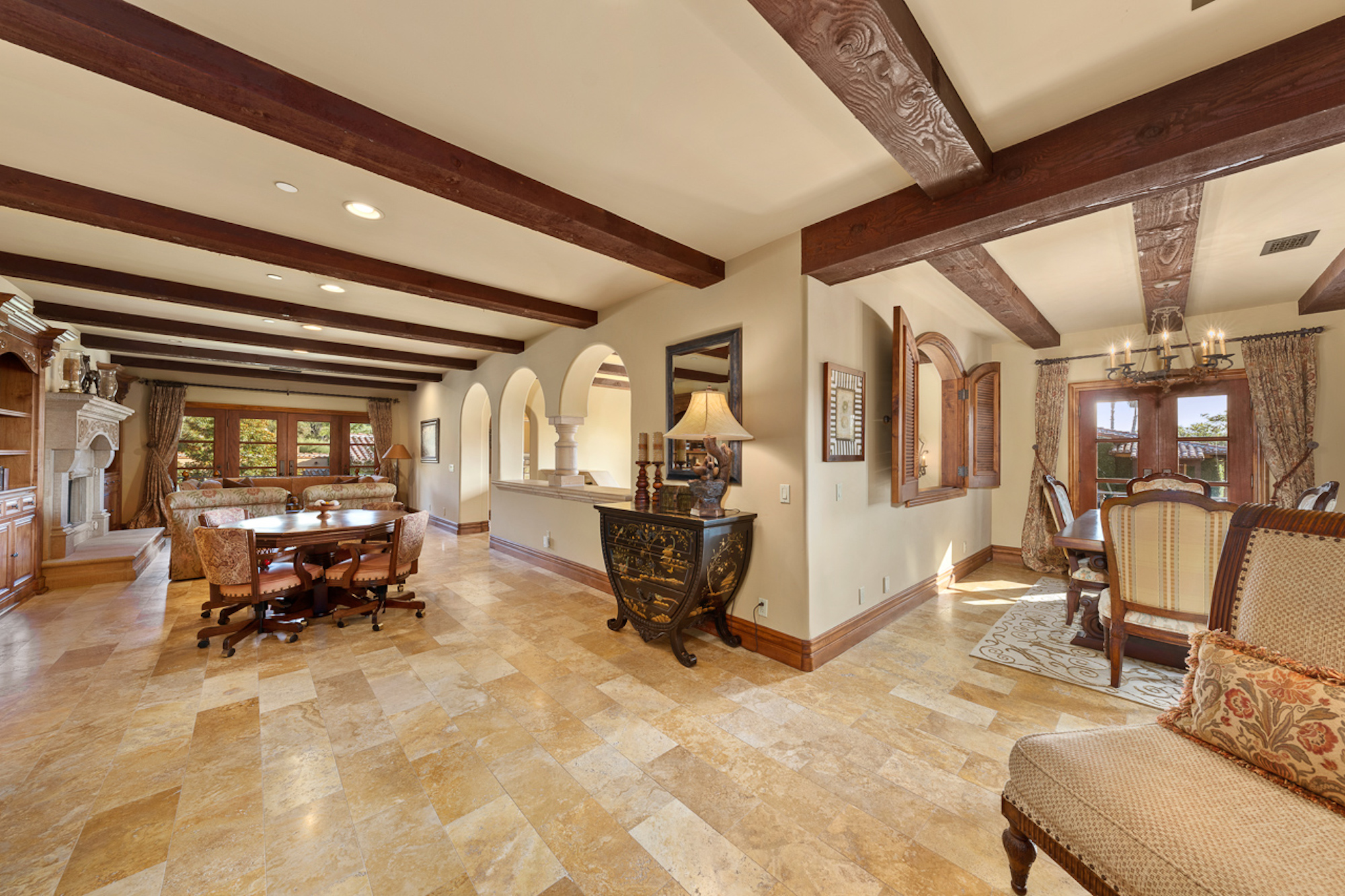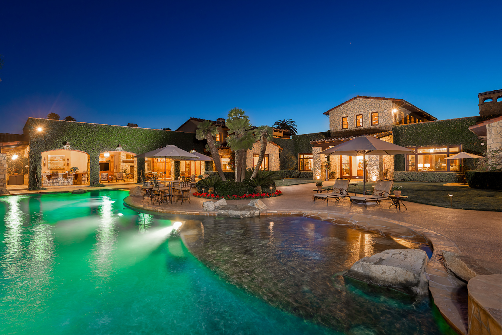 string(697) "Experience a sprawling Mediterranean estate situated across 4.71 acres in coveted Rancho Santa Fe! A private gated entry leads to your own Tuscan villa through a circular drive with a serene fountain surrounded by four separate stone & vine covered structures with lush greenery. Meticulous attention to detail with a grand foyer, rustic stone tile, exposed wood beams, archways, soaring ceilings, abundant natural light with expansive windows & skylights, imposing fireplaces, and high-end fixtures & finishes throughout. A great room that is unparalleled in size and refinement, perfect for entertaining with an adjacent chef's kitchen, separate dining area, wine tasting room and billiard room."