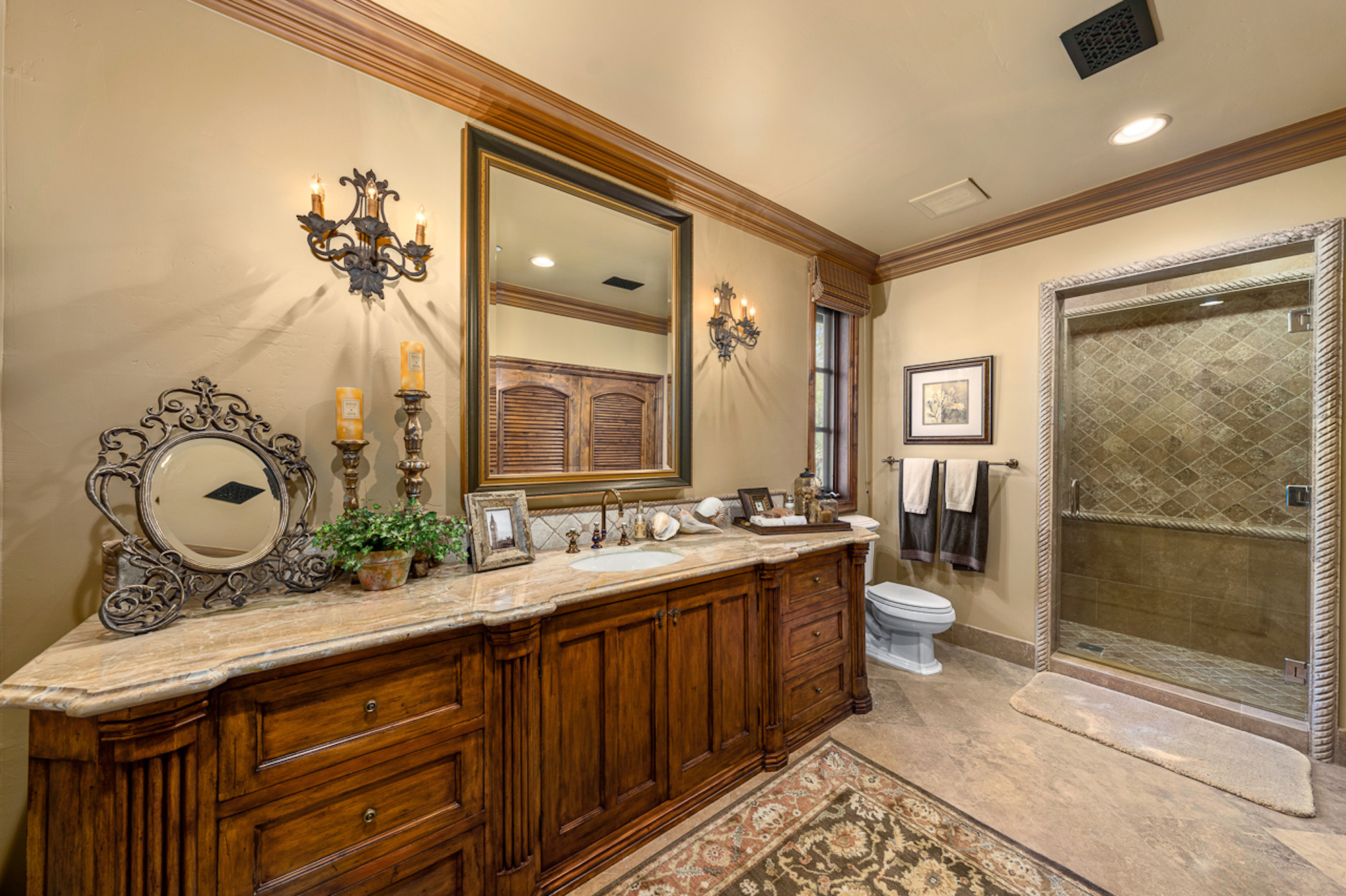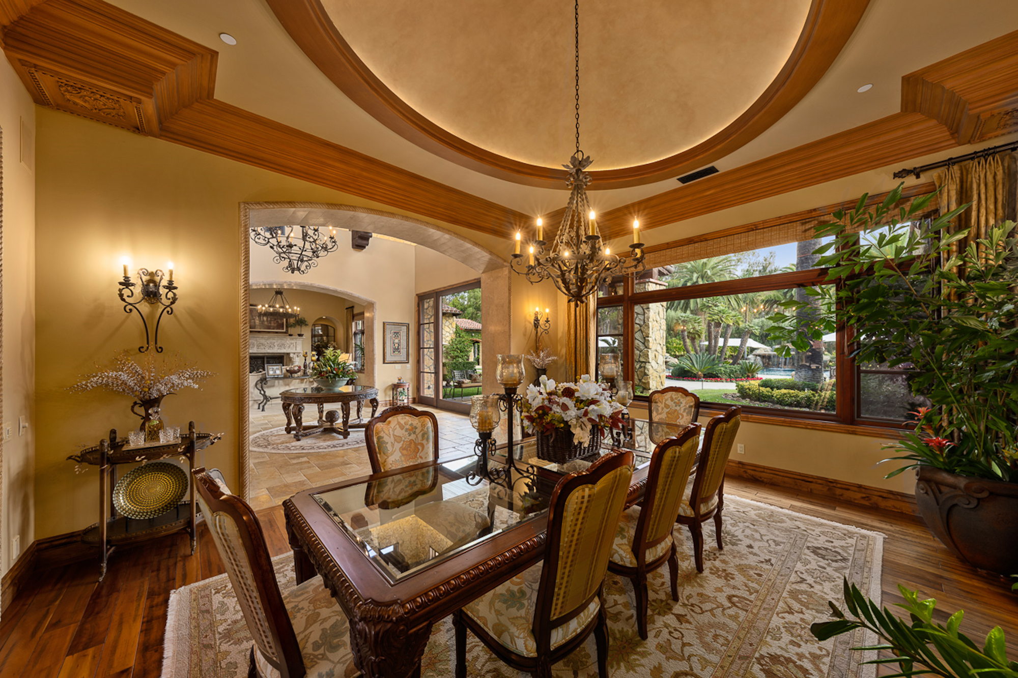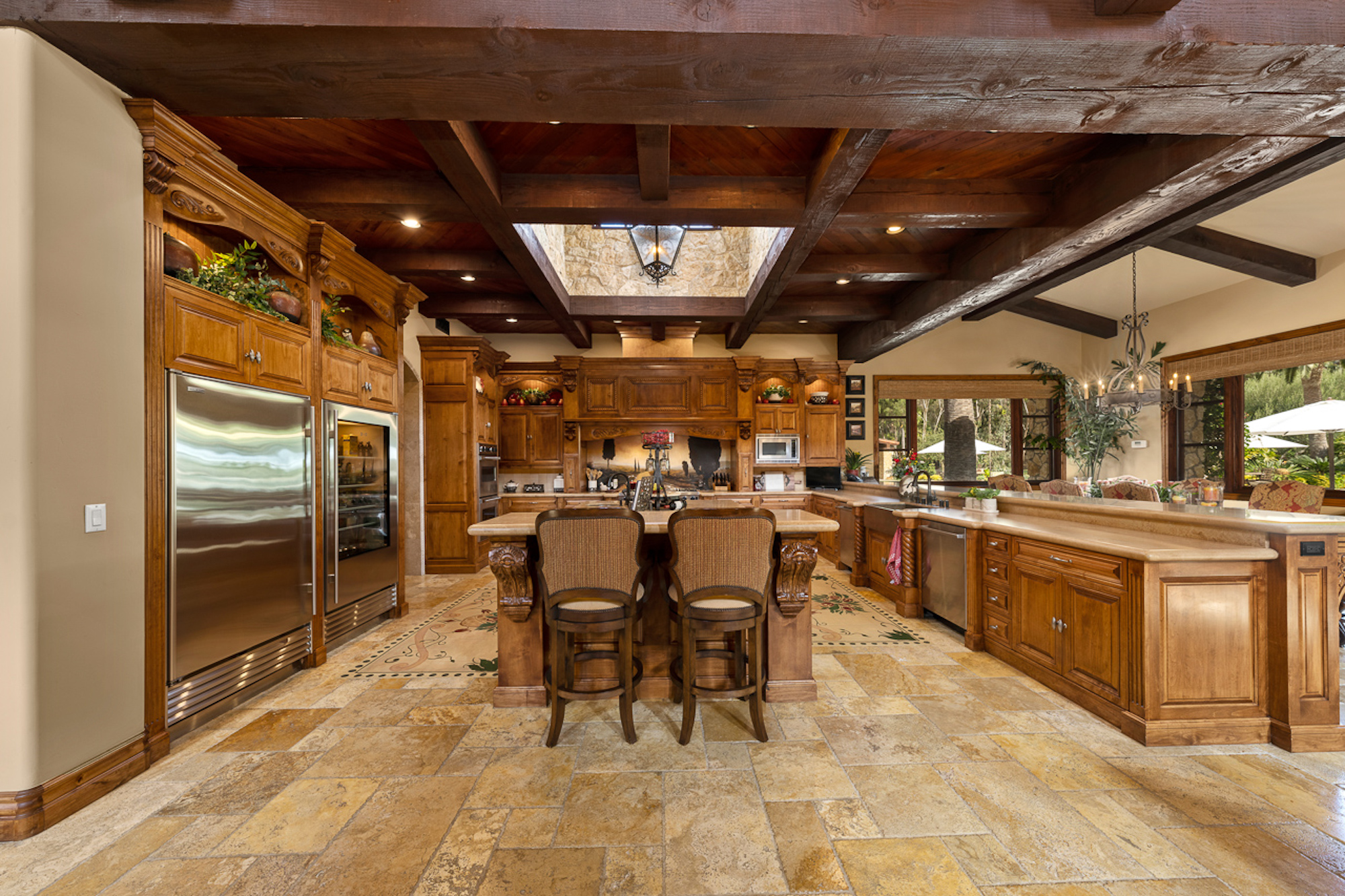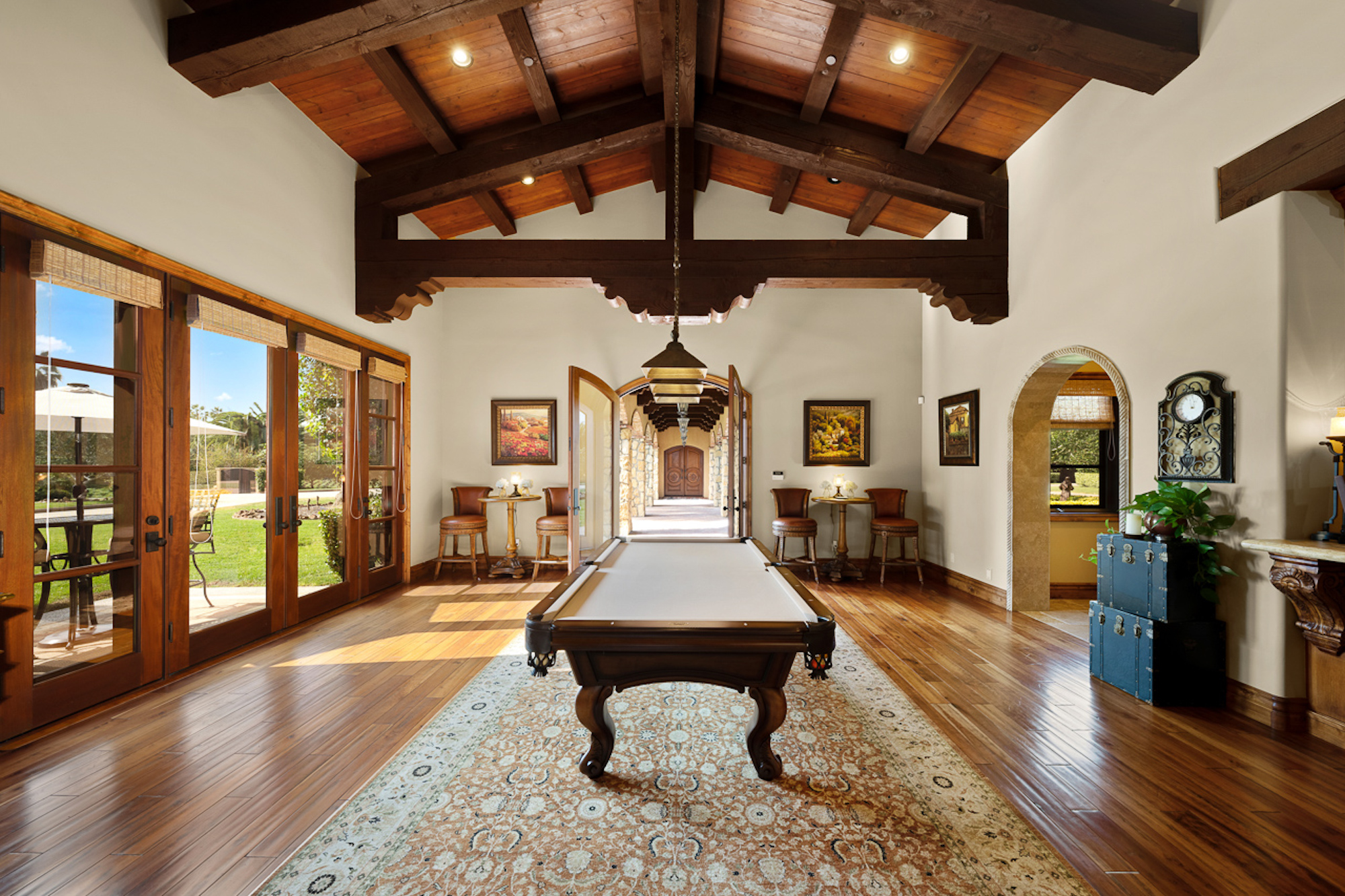string(697) "Experience a sprawling Mediterranean estate situated across 4.71 acres in coveted Rancho Santa Fe! A private gated entry leads to your own Tuscan villa through a circular drive with a serene fountain surrounded by four separate stone & vine covered structures with lush greenery. Meticulous attention to detail with a grand foyer, rustic stone tile, exposed wood beams, archways, soaring ceilings, abundant natural light with expansive windows & skylights, imposing fireplaces, and high-end fixtures & finishes throughout. A great room that is unparalleled in size and refinement, perfect for entertaining with an adjacent chef's kitchen, separate dining area, wine tasting room and billiard room."