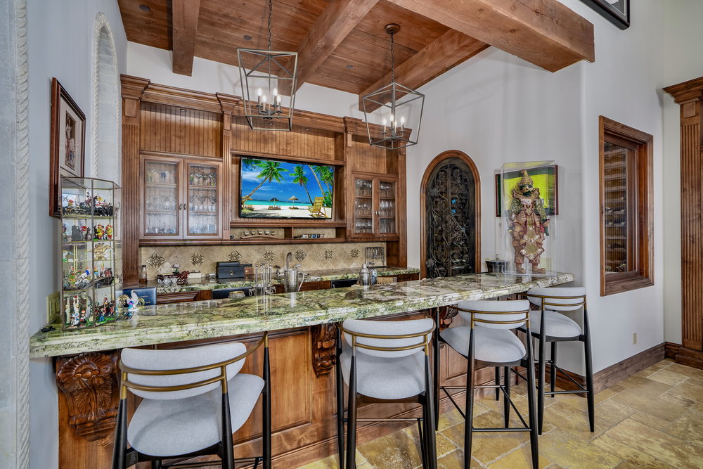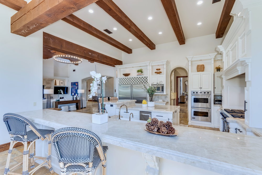 string(1597) "Experience the pinnacle of elegance and sophistication in this timeless custom estate, nestled within the prestigious guard-gated enclave of The Bridges at Rancho Santa Fe. Positioned on over two acres of private, tranquil grounds, this meticulously designed single-story residence with no steps offers breathtaking sunset views over the fairways of the renowned Bridges Golf Course. Sitting on one of the best and most private lots in The Bridges, this estate spans approximately 9, 788 square feet and is built to the highest standards, offering an unparalleled blend of luxury and comfort. Five ensuite bedrooms, including a private casita, provide versatile living spaces ideal for multi-generational living. A striking entrance sets the stage, where an arched bridge gracefully spans an oversized koi pond with a cascading waterfall, welcoming you into an atmosphere of serenity and refinement. Designed for grand-scale entertaining and intimate gatherings alike, the estate boasts a soaring open-beam ceiling in the great room, a formal dining room with a domed ceiling, a wood-paneled office, a state-of-the-art theater, and a billiards room complete with a wine cellar and full bar. The chefs kitchen is a culinary masterpiece, featuring quartz countertops, elegant white cabinetry with glass uppers, a new farmhouse sink, an oversized butlers pantry, and top-of-the-line stainless steel appliances. The Primary suite offers a luxurious retreat, with a fully remodeled sanctuary-like bathroom featuring top-tier finishes and great closet space. "