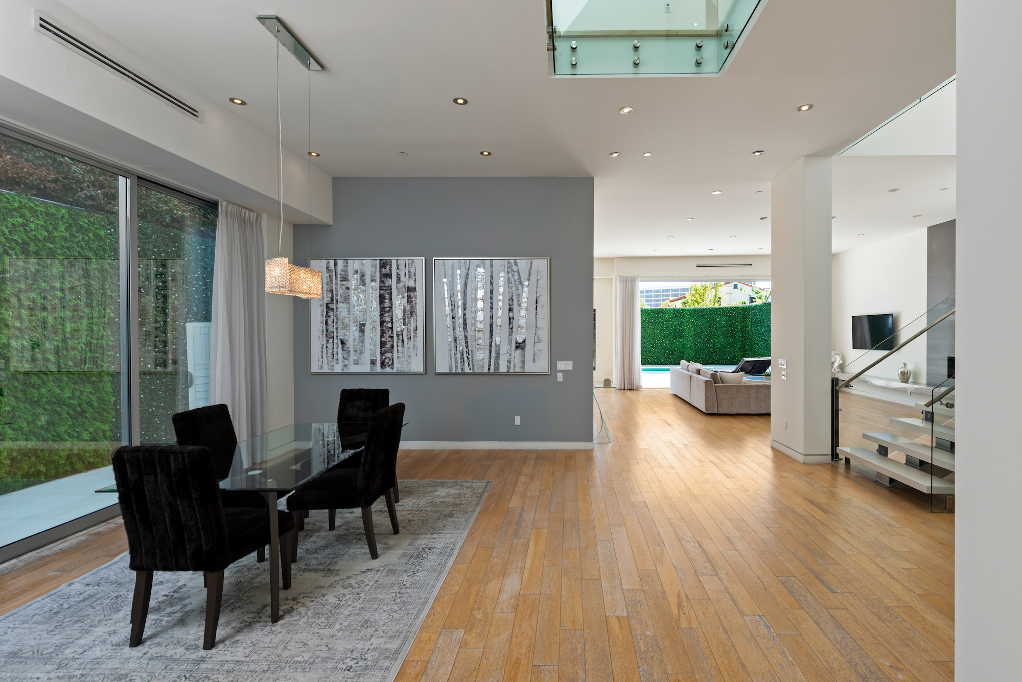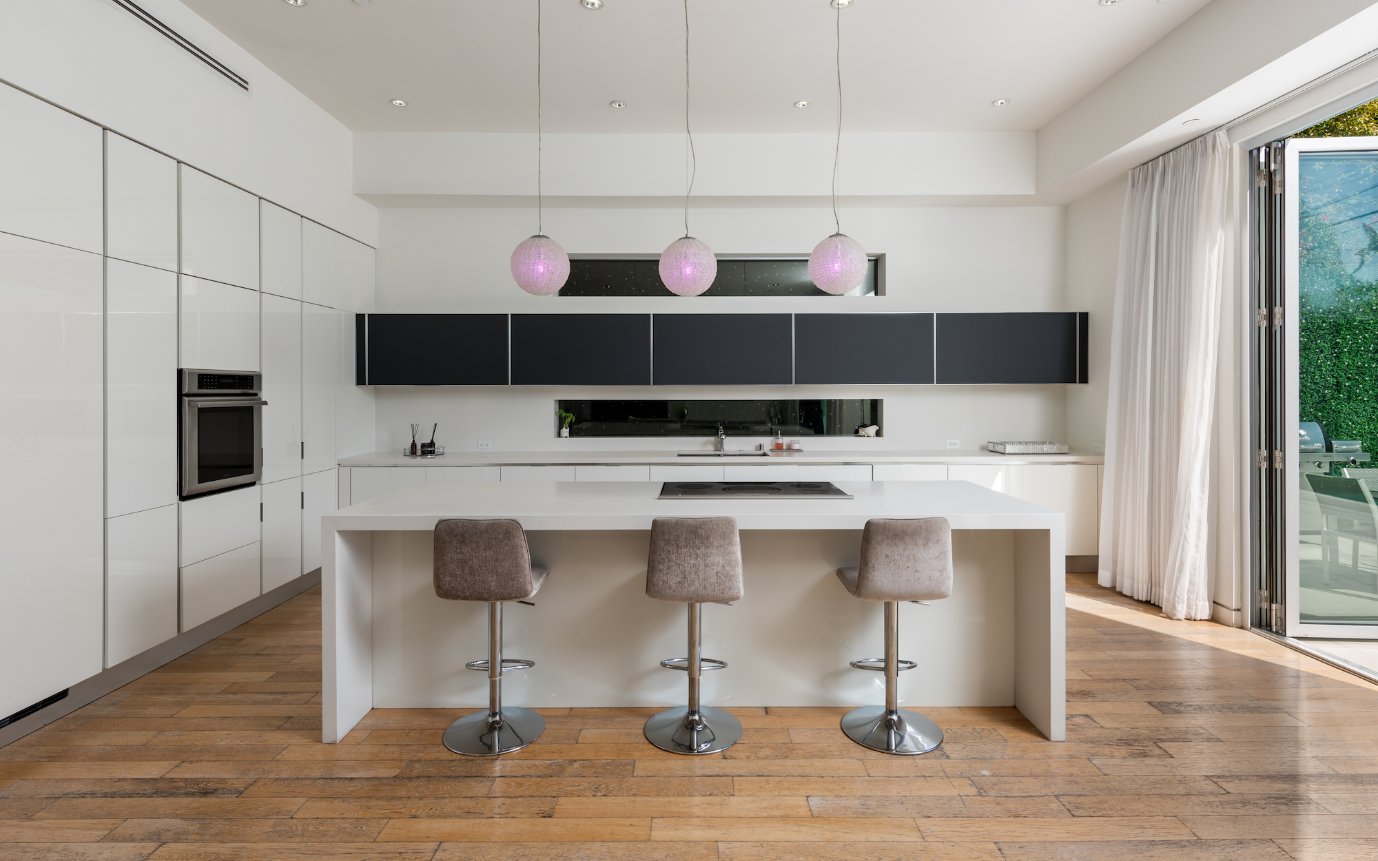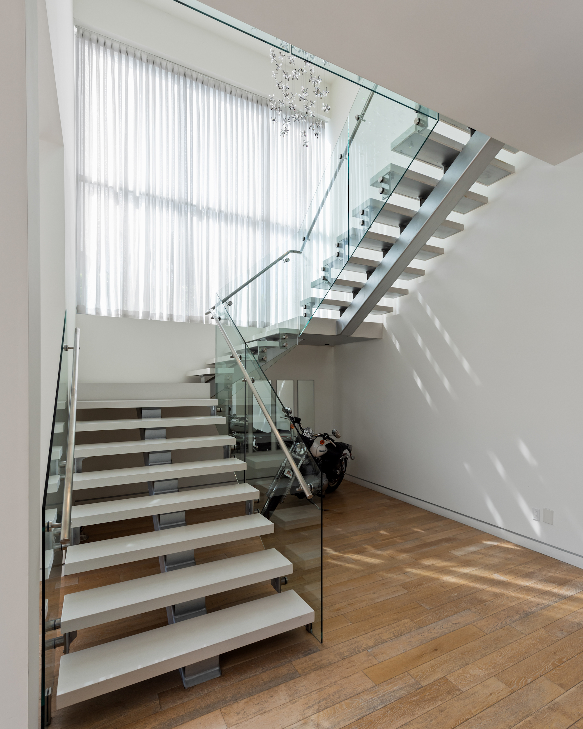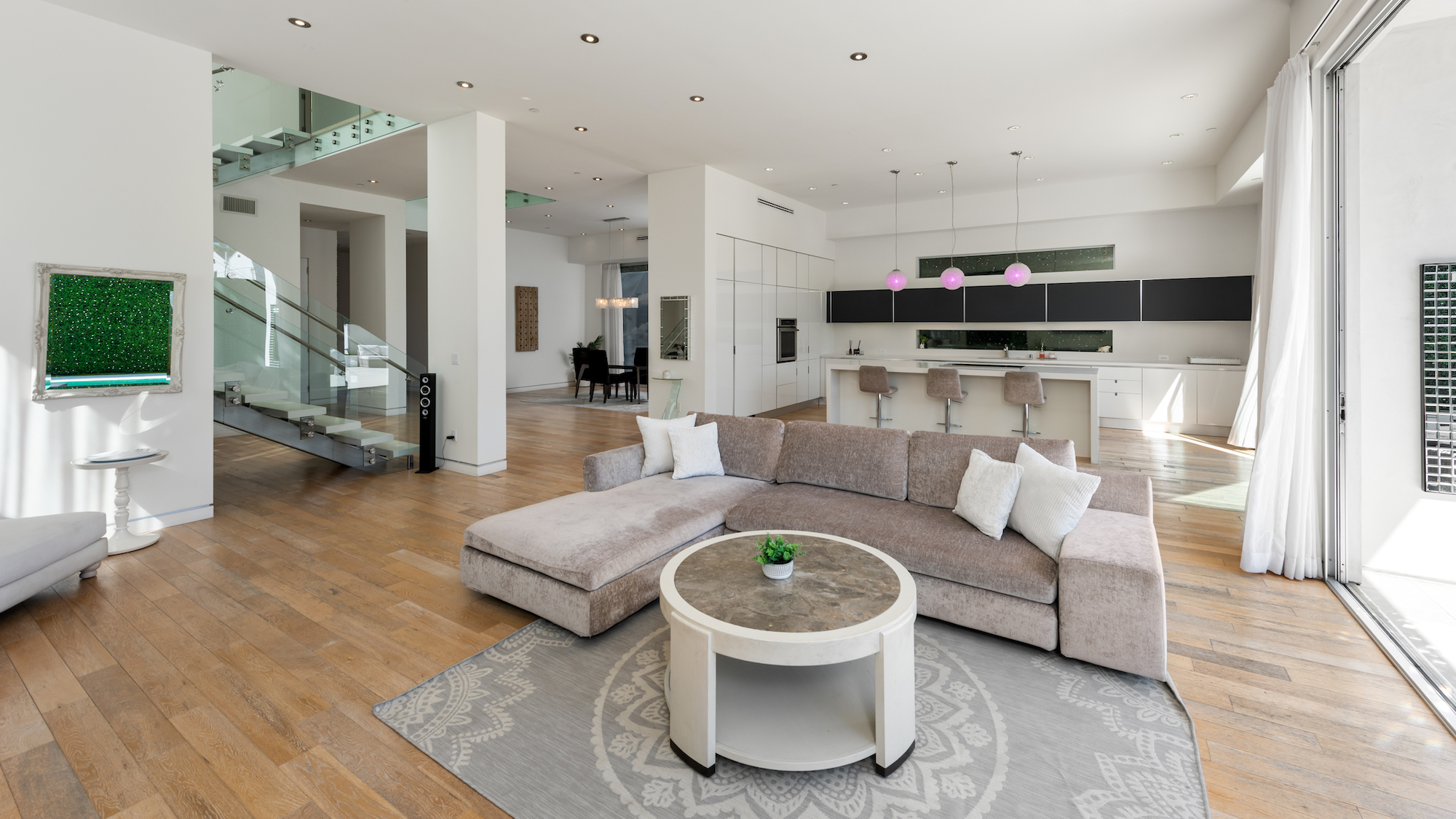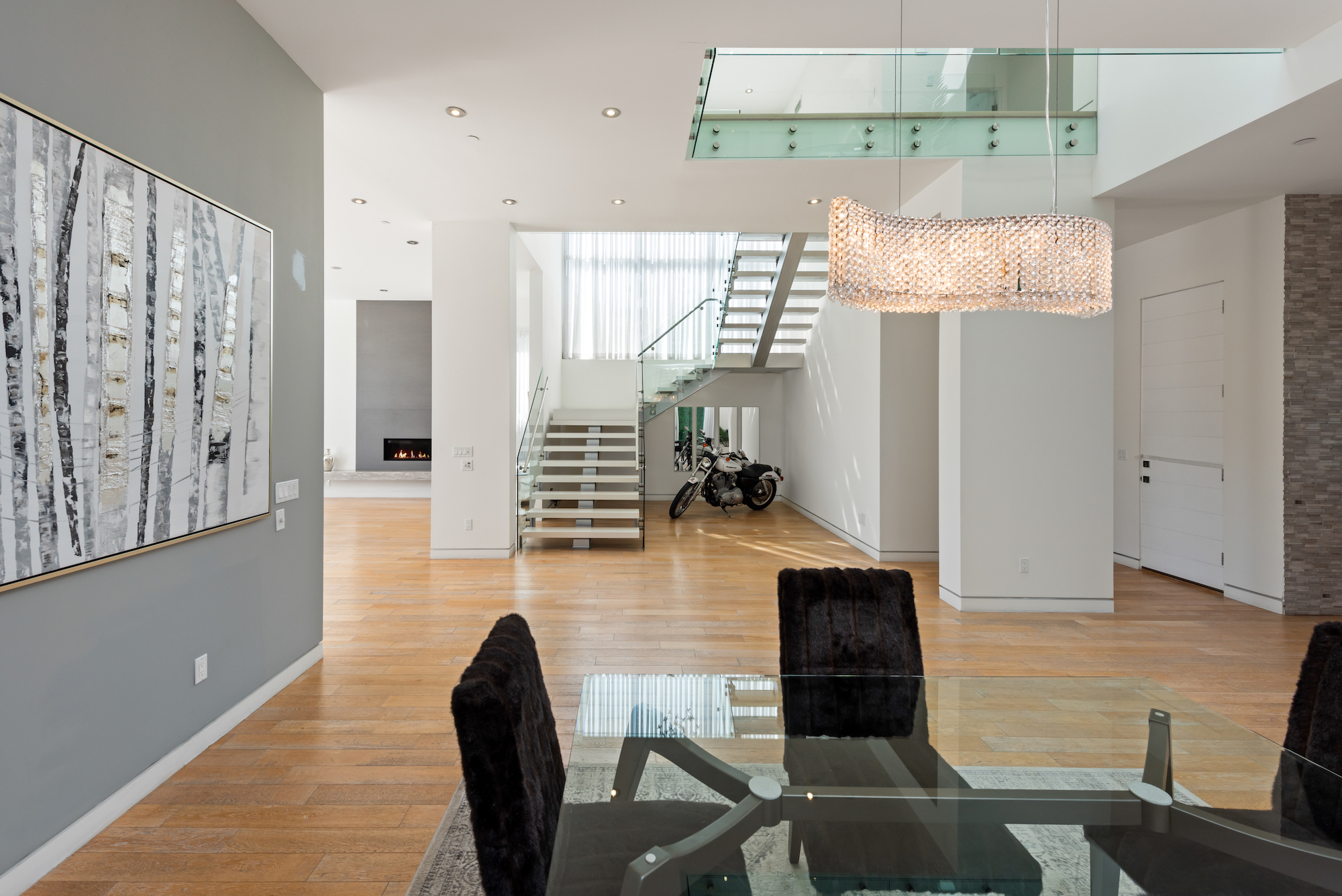 Welcome to this exceptionally crafted contemporary design in one of the most attractive neighborhoods in Los Angeles. Sited in the heart of Beverly Grove, 6620 W 5th Street is a fine example of exquisite volume and scale laid out across a wide open 4,000 square foot floor plan. As you approach, an automatic private gate provides secure access to the home, while walls and hedges envelop the perimeter, ensuring your utmost privacy. As you step inside, you are greeted with soaring ceiling heights and a stunning atrium-like design that opens up the interior from the bottom floor to the top level ceiling. Massive floor to ceiling glass doors and windows and skylights allow an abundance of natural light throughout the home, showcasing the stunning crystal chandelier hanging over the broadened staircase. Exhibiting 2 primary suites, you'll find 2 substantial walk-in closets and over-sized bathrooms featuring the finest Toto fixtures along with top-of-the-line Thermador appliances in the entertainers kitchen. Offering to be delivered fully furnished with a gorgeous vintage Harley-Davidson, 6620 W 5th Street is designed for both the lavish entertainer and the family ready to move in to one of the most stunning homes in one of the cities' most desirable neighborhoods today!