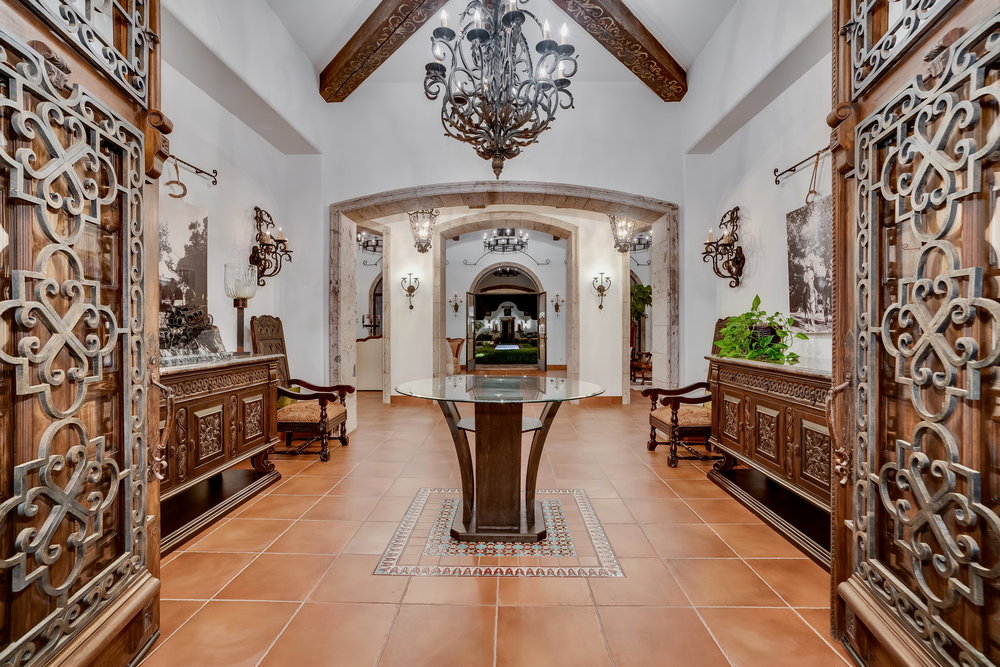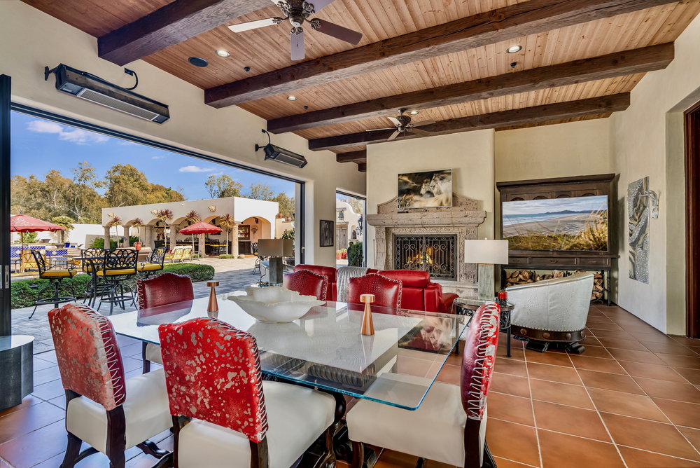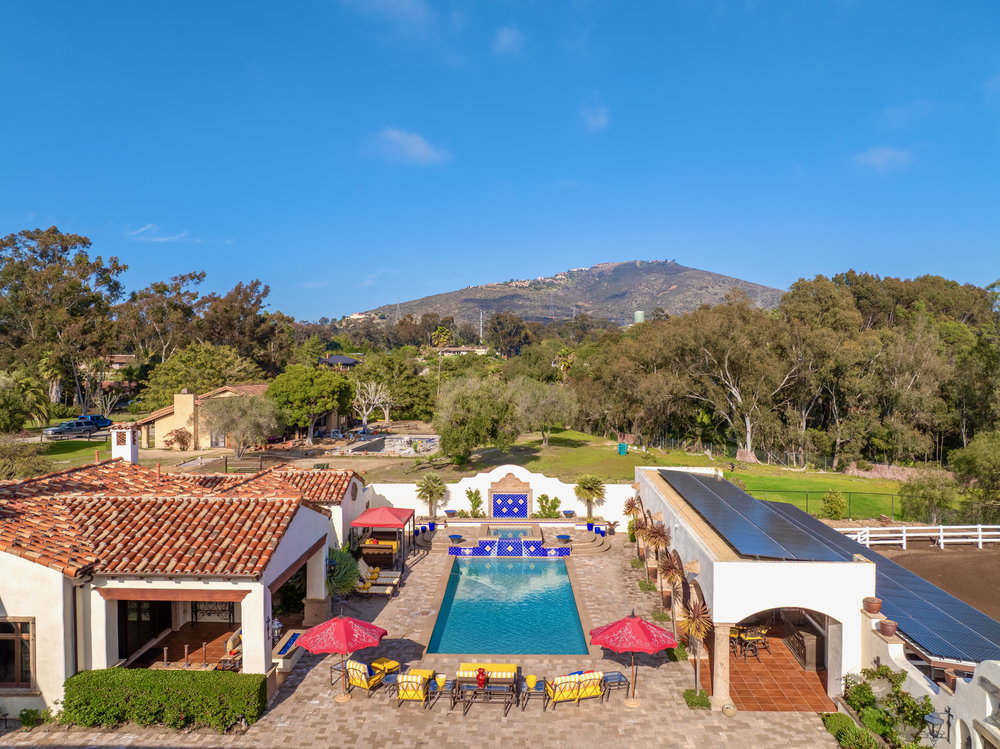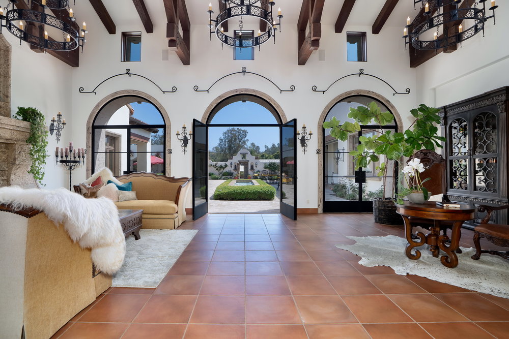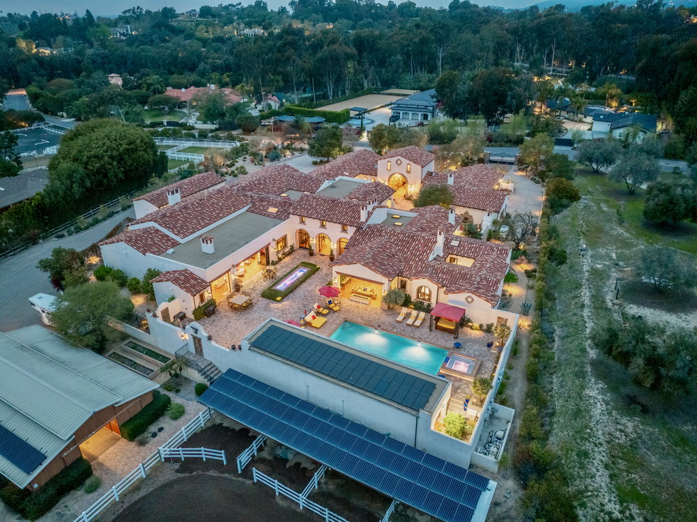 Welcome to 6900 Via Del Charro, an extraordinary single-level Contemporary Spanish compound with zero steps set on 2.58 private acres in Rancho Santa Fe. With no HOA or covenant restrictions, this fully gated estate offers unparalleled privacy, serenity, and access to top-rated Rancho Santa Fe schools. From the moment you enter, architectural grandeur takes center stage, with soaring ceilings, custom woodwork, and impeccable craftsmanship throughout. Designed for seamless indoor-outdoor living, nearly every room opens to charming courtyards filled with fresh roses, olive trees, and fruit trees, enhancing the estate’s serene ambiance. The home is built for both grand entertaining and comfortable everyday living. A sophisticated dining room sets the stage for lavish gatherings, while a stunning 700-bottle wine cellar and top-of-the-line movie theater provide the ultimate luxury experience. The custom chef’s kitchen is designed with the finest appliances and premium finishes, seamlessly flowing into elegant living spaces. A one-of-a-kind saloon-style entertainment room, complete with a fireplace, stage, multiple seating areas, and a custom bar, makes this home an entertainer’s paradise. Outside, a resort-style oasis awaits with multiple covered patios, an outdoor bar, and an expansive pool and elevated spa that transport you to a private retreat. Plenty of space to add a sport court, pickle ball, and wellness retreat. For equestrian and automotive enthusiasts, this estate is unmatched. The property features a four-stall horse barn, a riding arena with access to over 60 miles of trails, a six-car garage, and a bonus motor coach garage that accommodates a 45-foot RV or can be converted into a car collector’s showcase. The primary retreat is a true sanctuary, featuring oversized ceilings, separate spa-inspired bathrooms, and custom walk-in closets. This estate is a perfect blend of privacy, security, and elegance without compromise. With no steps or stairs, the layout is effortless. Experience the best of Rancho Santa Fe living in a home designed for those who appreciate quality, the finest craftsmanship and timeless beauty.
