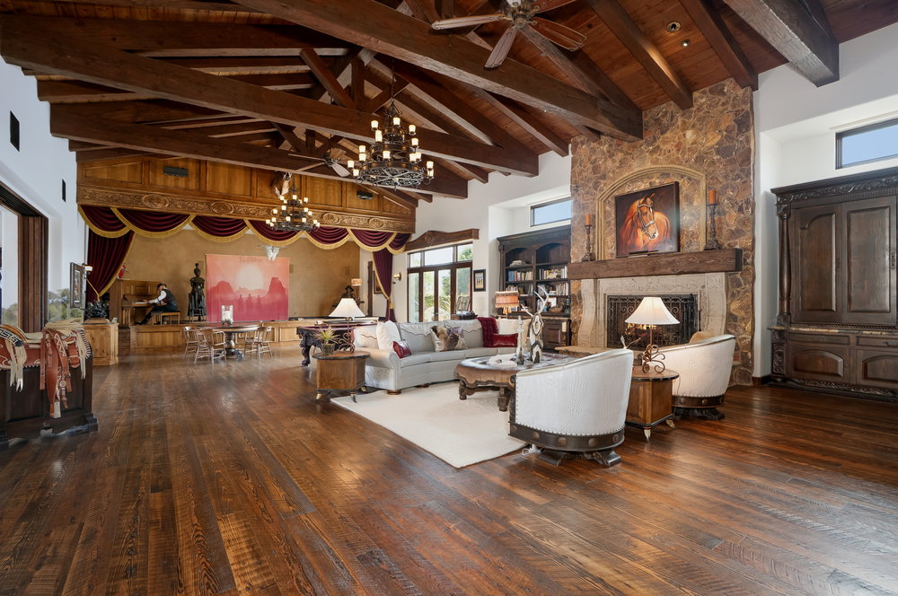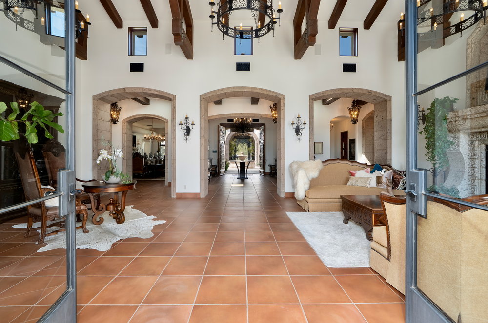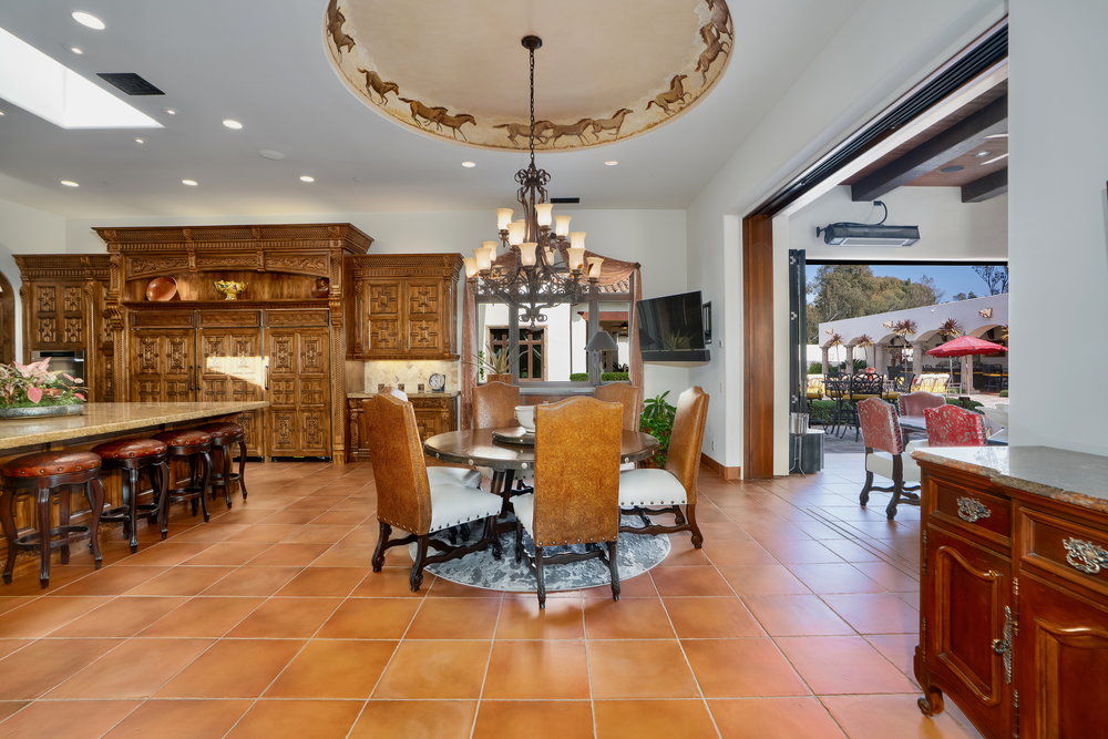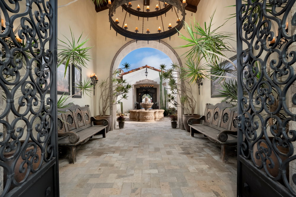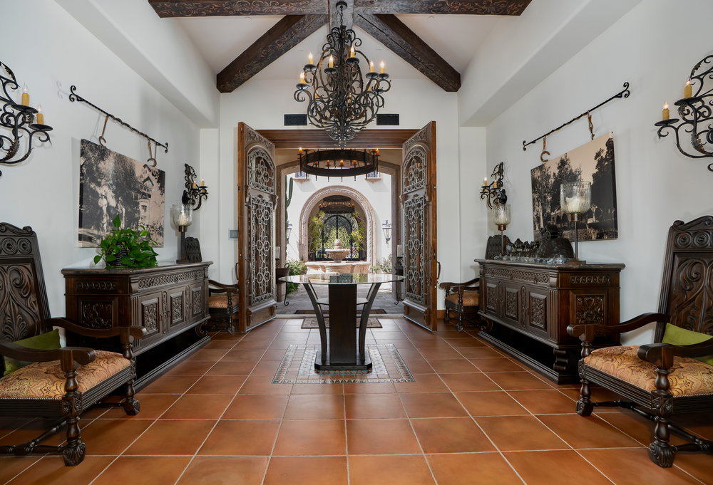 Welcome to 6900 Via Del Charro, an extraordinary single-level Contemporary Spanish compound with zero steps set on 2.58 private acres in Rancho Santa Fe. With no HOA or covenant restrictions, this fully gated estate offers unparalleled privacy, serenity, and access to top-rated Rancho Santa Fe schools. From the moment you enter, architectural grandeur takes center stage, with soaring ceilings, custom woodwork, and impeccable craftsmanship throughout. Designed for seamless indoor-outdoor living, nearly every room opens to charming courtyards filled with fresh roses, olive trees, and fruit trees, enhancing the estate’s serene ambiance. The home is built for both grand entertaining and comfortable everyday living. A sophisticated dining room sets the stage for lavish gatherings, while a stunning 700-bottle wine cellar and top-of-the-line movie theater provide the ultimate luxury experience. The custom chef’s kitchen is designed with the finest appliances and premium finishes, seamlessly flowing into elegant living spaces. A one-of-a-kind saloon-style entertainment room, complete with a fireplace, stage, multiple seating areas, and a custom bar, makes this home an entertainer’s paradise. Outside, a resort-style oasis awaits with multiple covered patios, an outdoor bar, and an expansive pool and elevated spa that transport you to a private retreat. Plenty of space to add a sport court, pickle ball, and wellness retreat. For equestrian and automotive enthusiasts, this estate is unmatched. The property features a four-stall horse barn, a riding arena with access to over 60 miles of trails, a six-car garage, and a bonus motor coach garage that accommodates a 45-foot RV or can be converted into a car collector’s showcase. The primary retreat is a true sanctuary, featuring oversized ceilings, separate spa-inspired bathrooms, and custom walk-in closets. This estate is a perfect blend of privacy, security, and elegance without compromise. With no steps or stairs, the layout is effortless. Experience the best of Rancho Santa Fe living in a home designed for those who appreciate quality, the finest craftsmanship and timeless beauty.