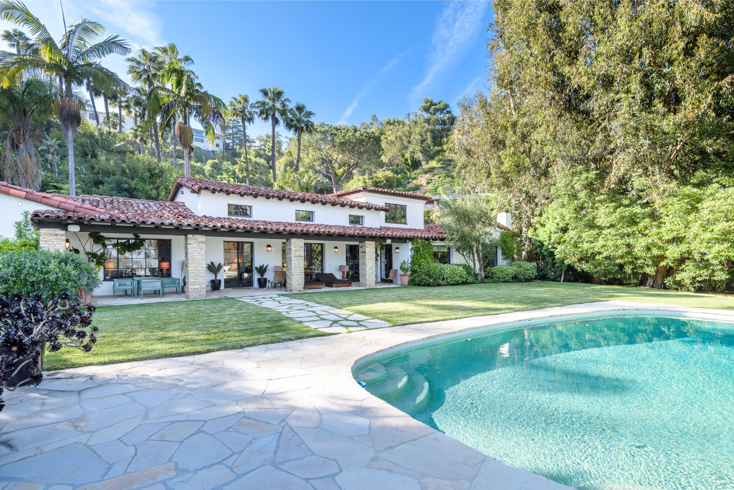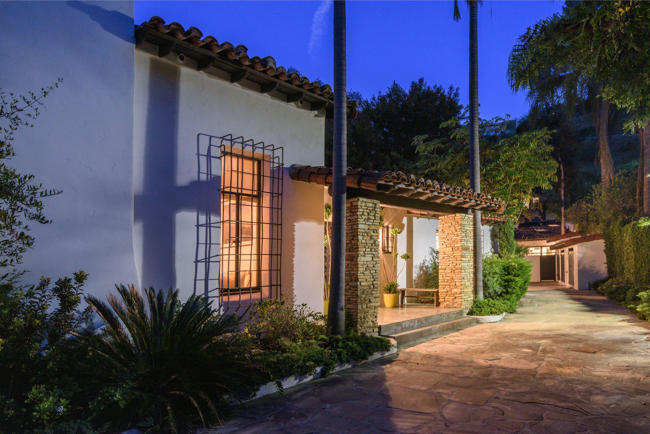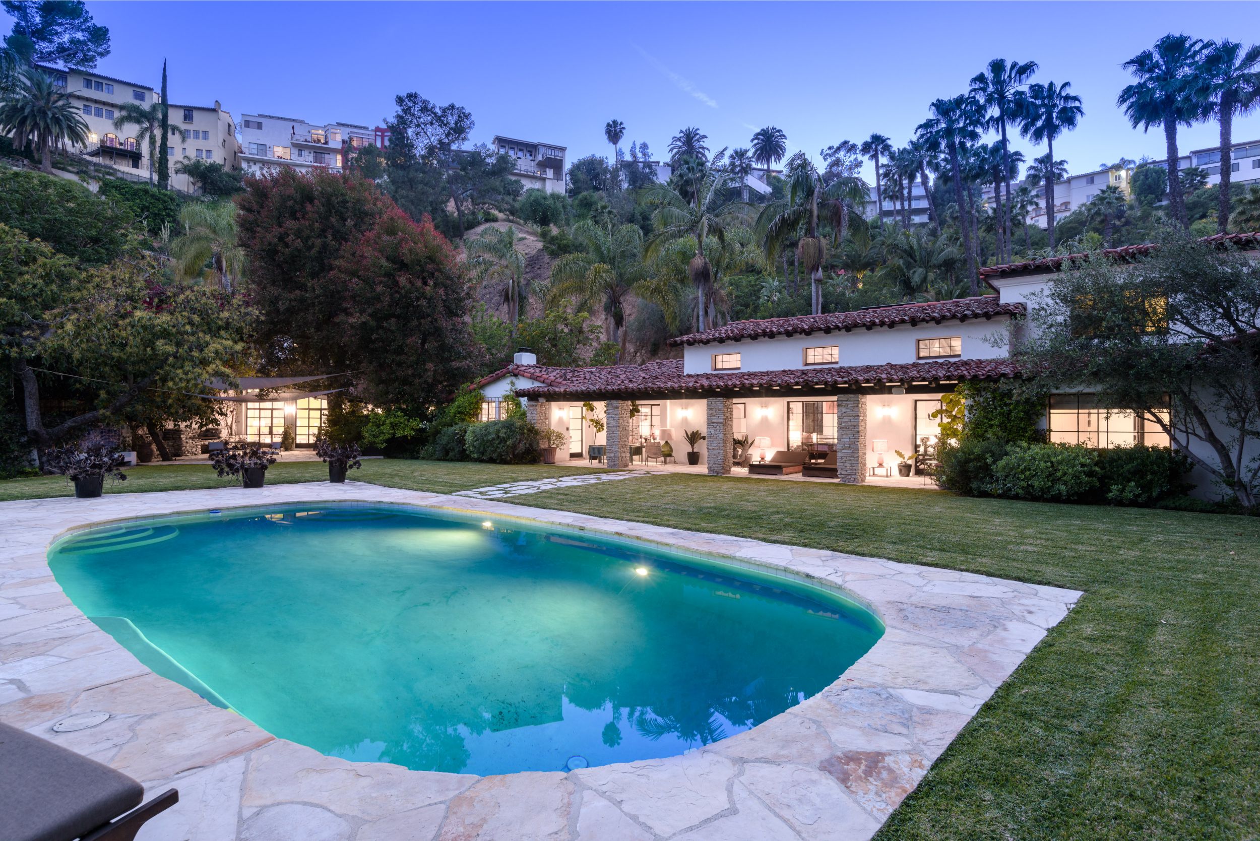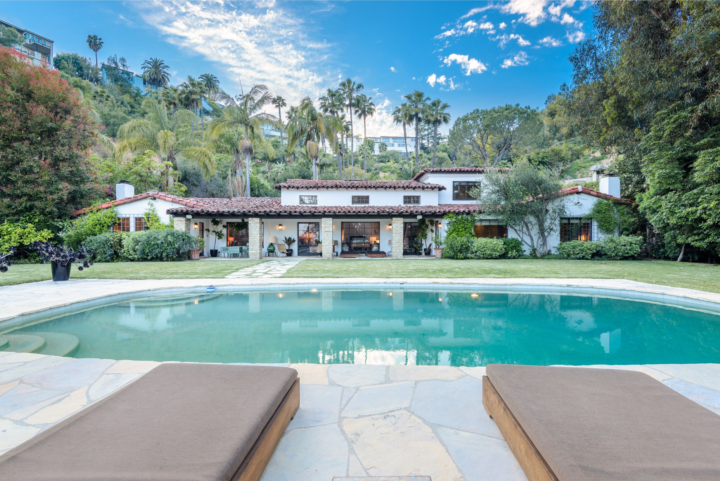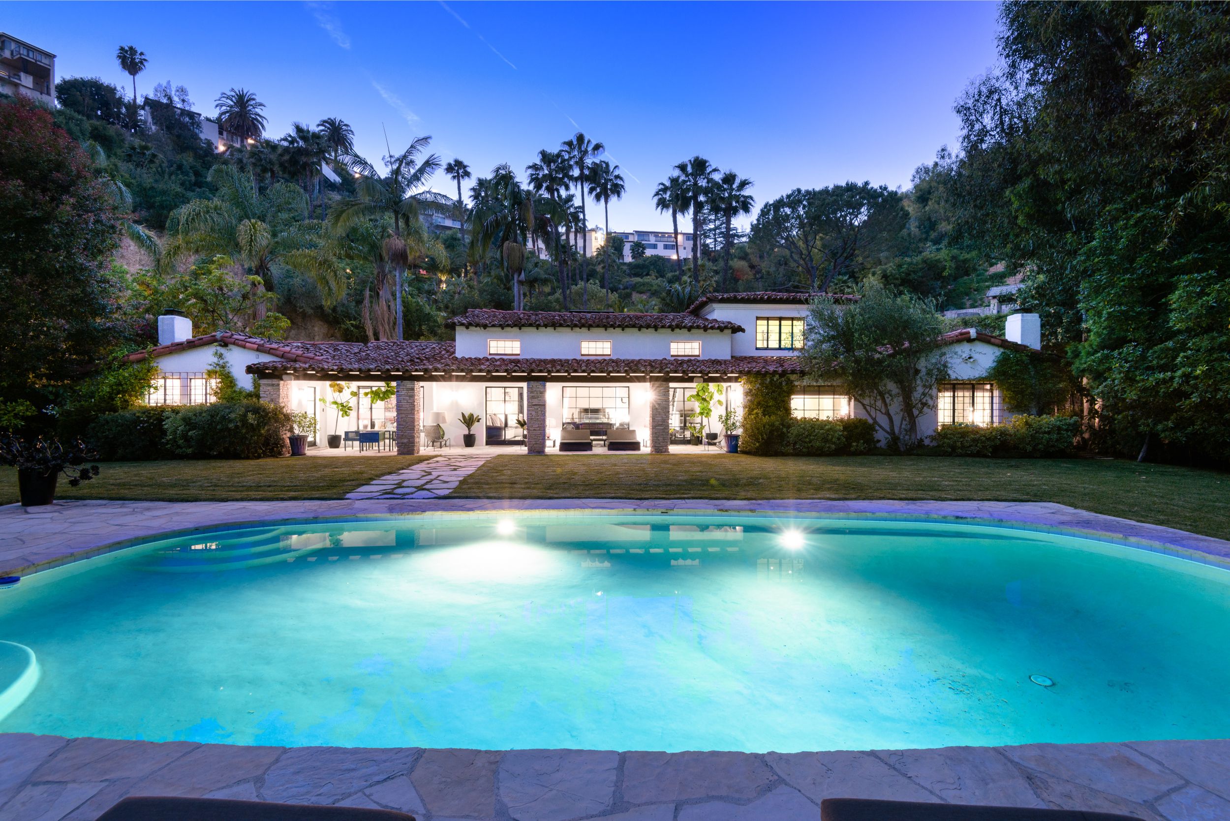 Classic and timeless Spanish Villa situated in the famed Outpost Estates. This gated and private, 3,000 square foot, 4 bedroom + 5 bathroom 1933 Villa is tucked away on one of the most desirable streets in this star studded and historic neighborhood. Enjoy panoramic views of the city from the rare enormous flat yard with pool. Soaring ceilings, wood burning fireplace and hardwood floors highlight the open floor plan of the living and dining areas. The spacious kitchen features Sub Zero and Viking appliances, fireplace and ample storage. A detached Casita makes for a perfect bonus room, studio, home gym or guest house. Don't miss this opportunity to own a true piece of Hollywood history.