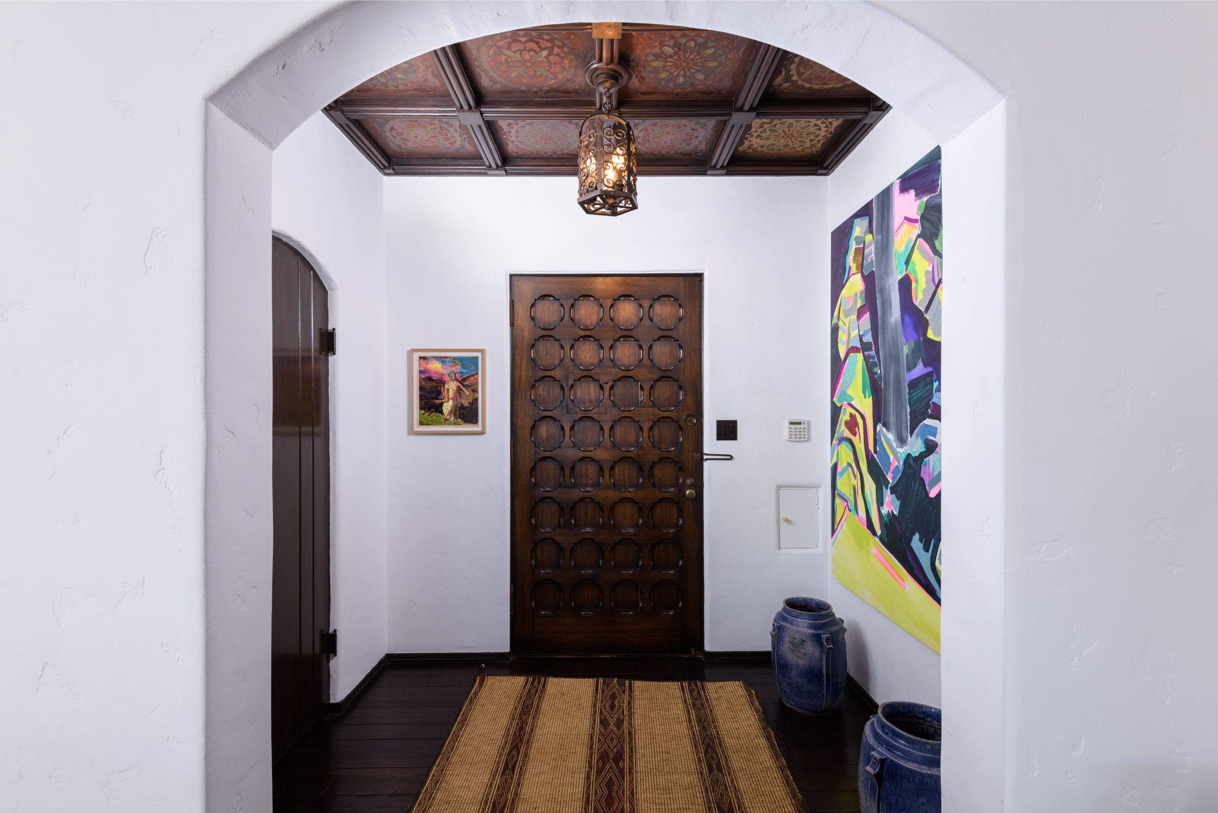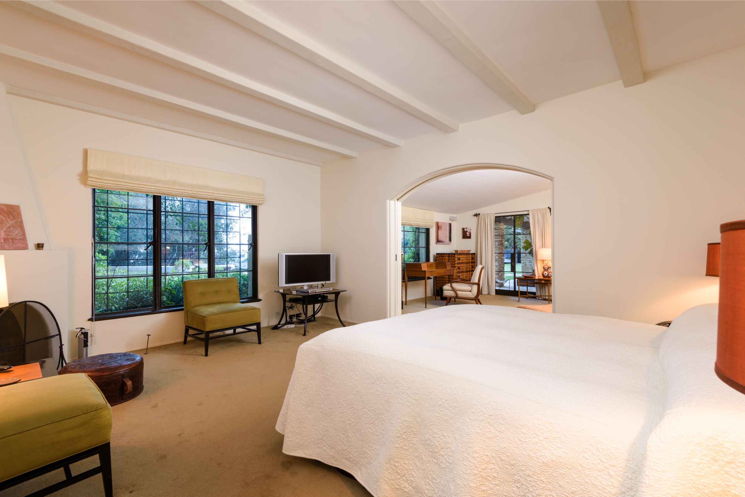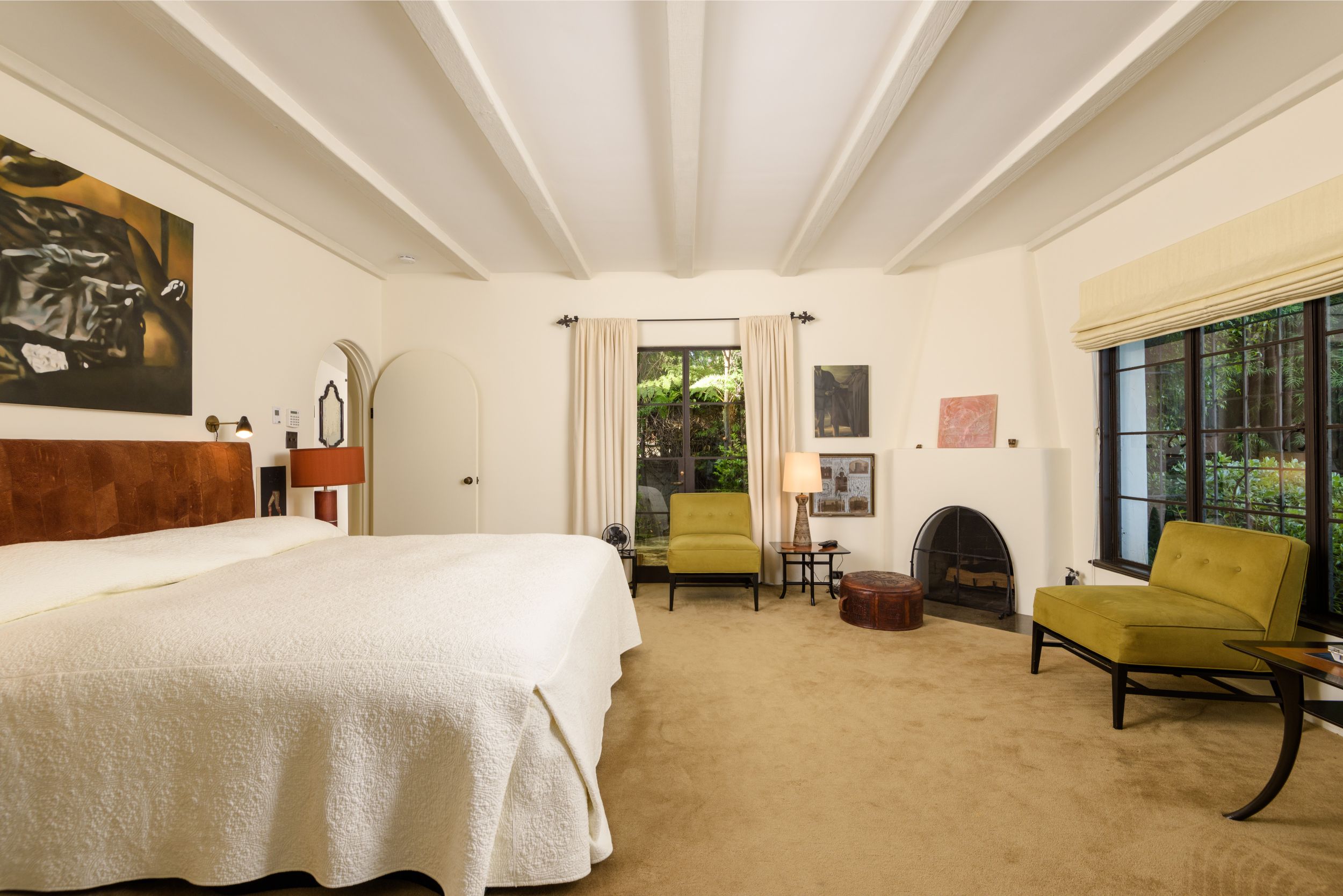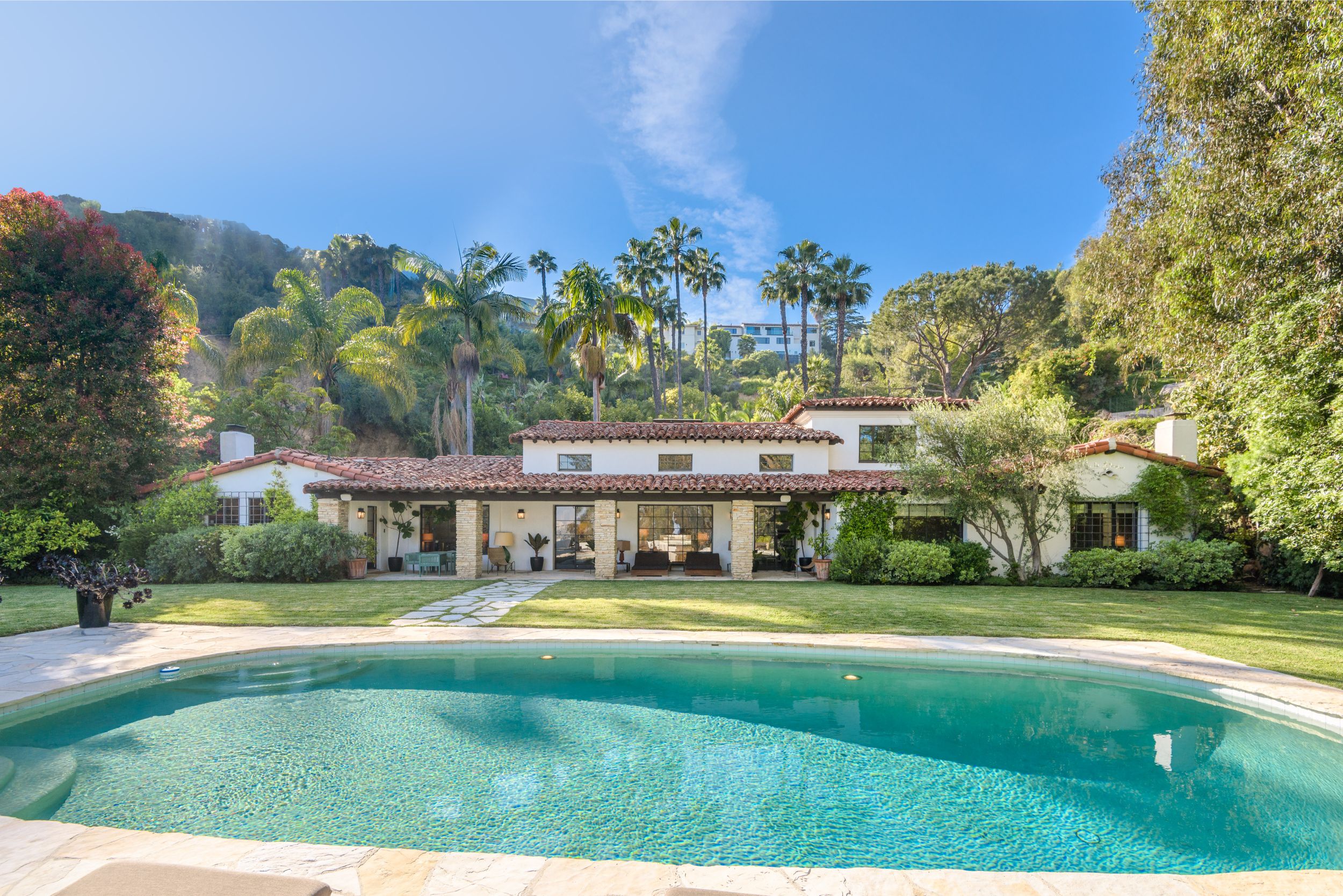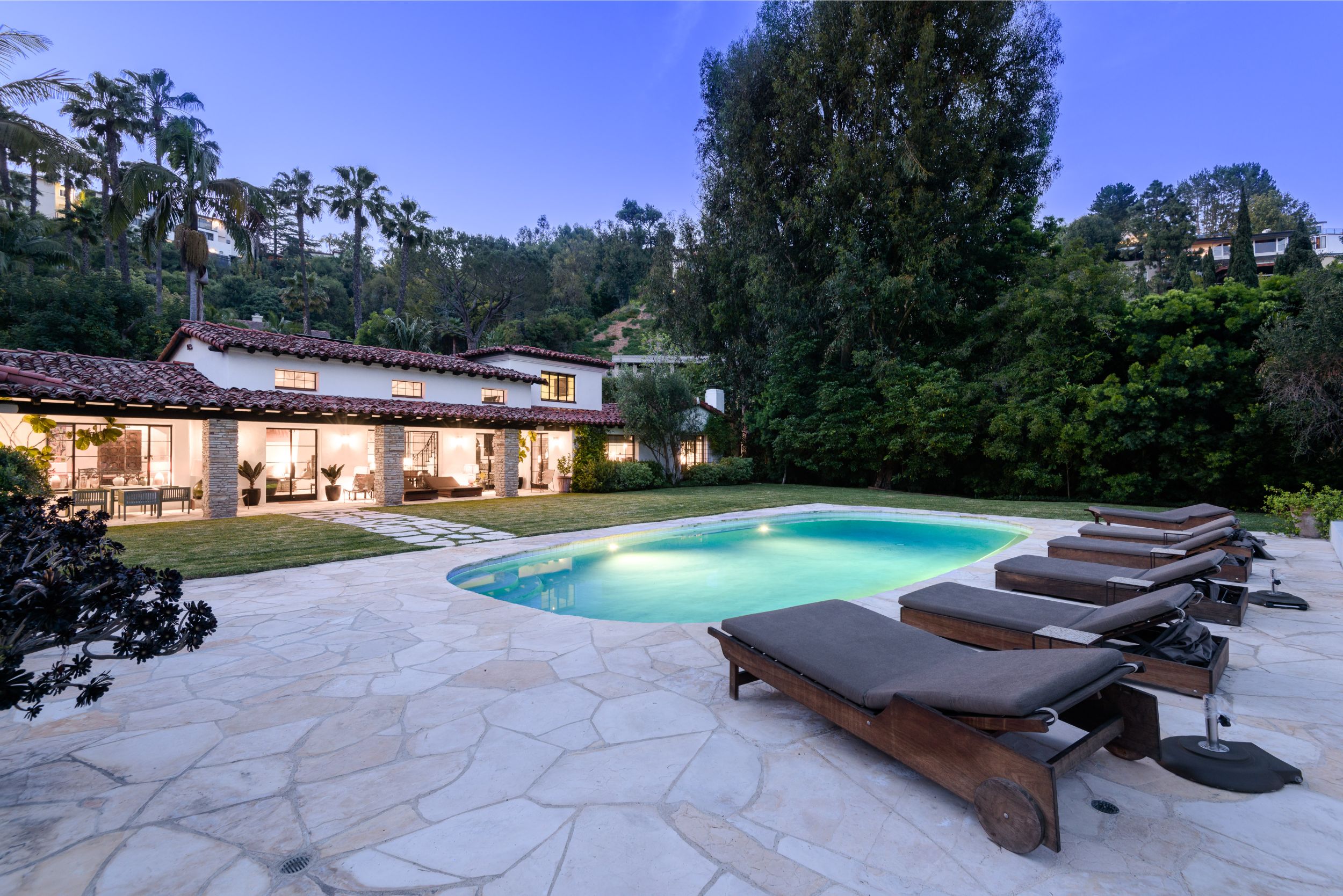 Classic and timeless Spanish Villa situated in the famed Outpost Estates. This gated and private, 3,000 square foot, 4 bedroom + 5 bathroom 1933 Villa is tucked away on one of the most desirable streets in this star studded and historic neighborhood. Enjoy panoramic views of the city from the rare enormous flat yard with pool. Soaring ceilings, wood burning fireplace and hardwood floors highlight the open floor plan of the living and dining areas. The spacious kitchen features Sub Zero and Viking appliances, fireplace and ample storage. A detached Casita makes for a perfect bonus room, studio, home gym or guest house. Don't miss this opportunity to own a true piece of Hollywood history.