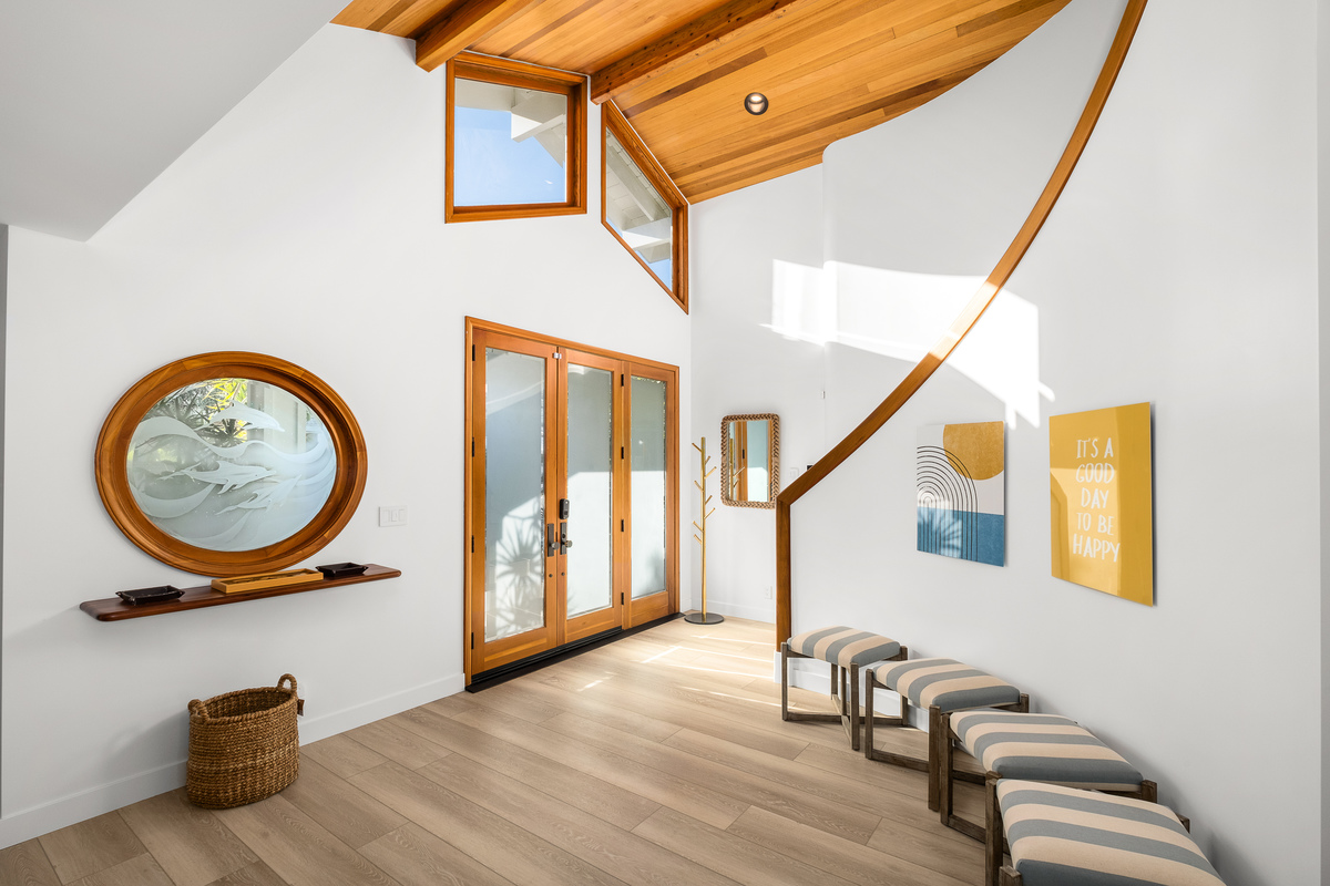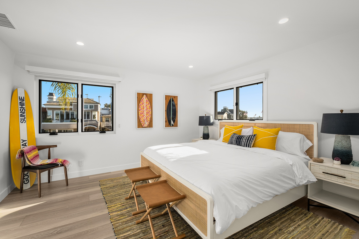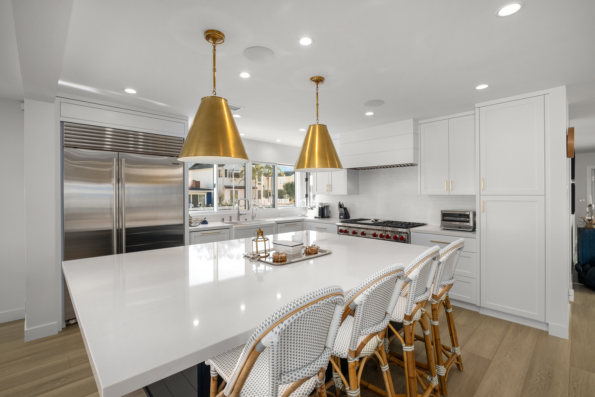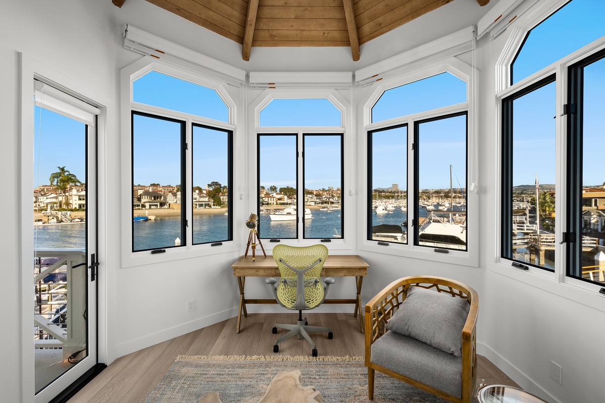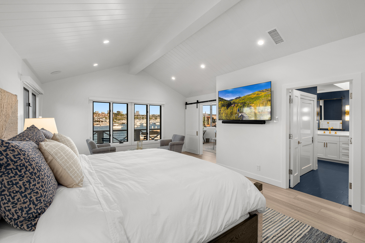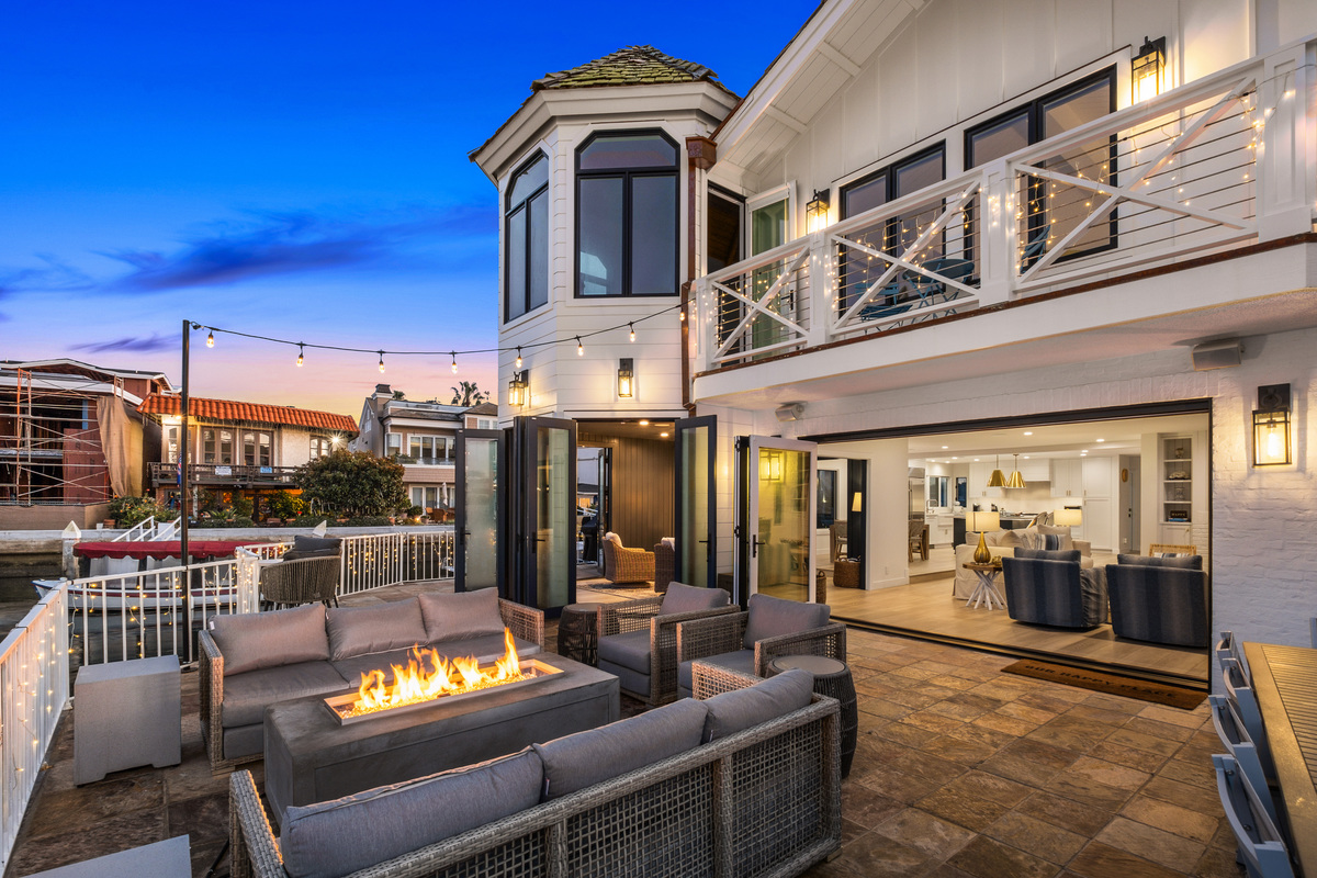 Among the most exclusive addresses in Newport Beach, this extraordinary property is one of only eight homes on private-gated Collins Island, capturing pristine harbor views from every vantage point. The huge 6,000 sq ft lot hosts a completely reimagined residence that has recently been remodeled inside and out, with 150 linear feet on the water and two dock spaces to accommodate approx. 71' and 43' boats. A light-filled foyer beckons to three private suites and a main-level great room designed for entertaining, with Lutron controlled lighting installed throughout. Wide-plank floors and bronze finishes enhance a light, airy ambience in the gourmet kitchen and bar, equipped with the finest finishes and chef-level appliances. The Craftsman-inspired living area displays stained glass and built-ins flanking a fireplace, vanishing through bi-fold doors to a waterfront patio with a fire pit and abundant space to dine under the stars, while a unique sunroom living area proceeds through multiple doors to the patio for tranquil indoor-outdoor enjoyment. Retreat upstairs to the stunning primary suite with a sitting area and sunroom/office, private view balcony, stunning primary bath, and vaulted open-beamed ceilings. Each secondary bedroom has an en-suite bath for ultimate privacy and convenience, with one guest suite downstairs. Enjoy shops and dining within blocks on Balboa Island and Marine Ave, or take the ferry across to the Balboa Peninsula. Rare and charming, this is a legacy property unlike any other.