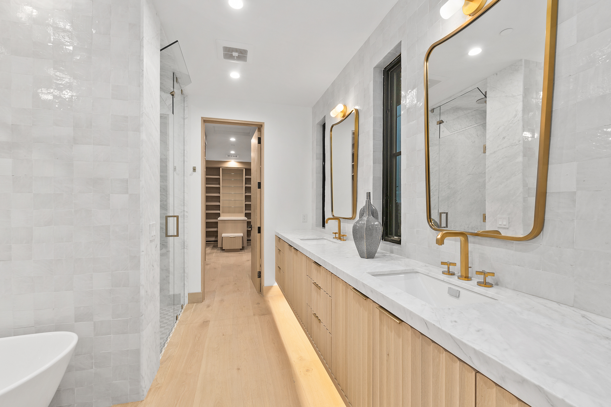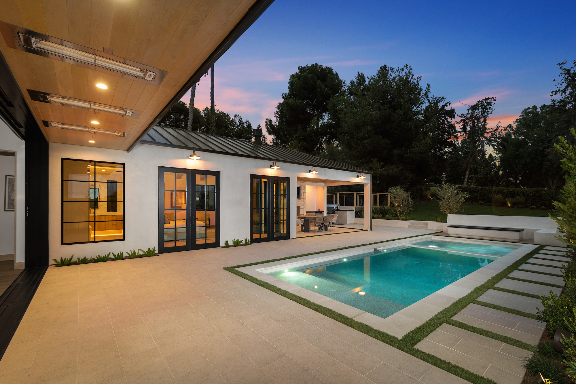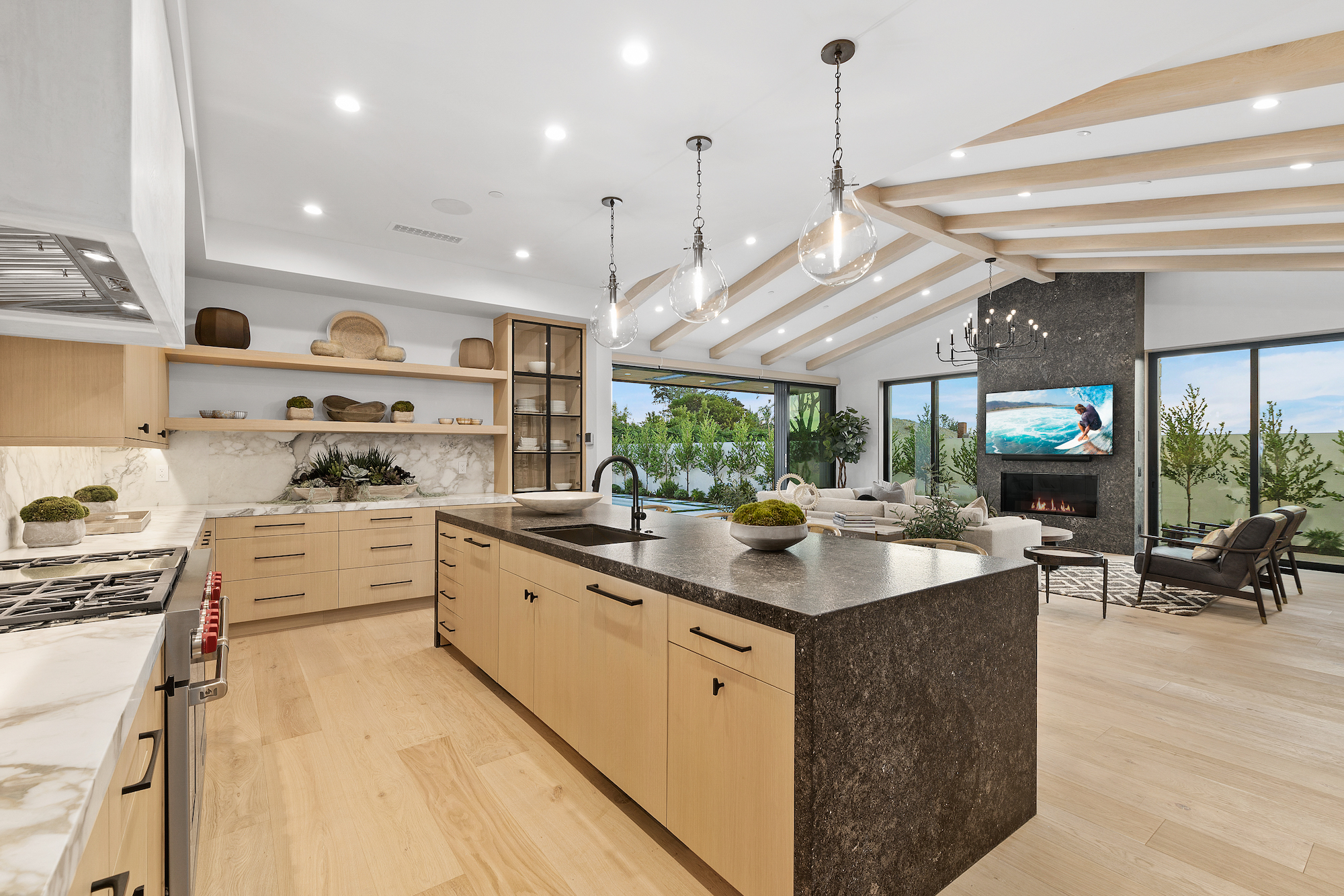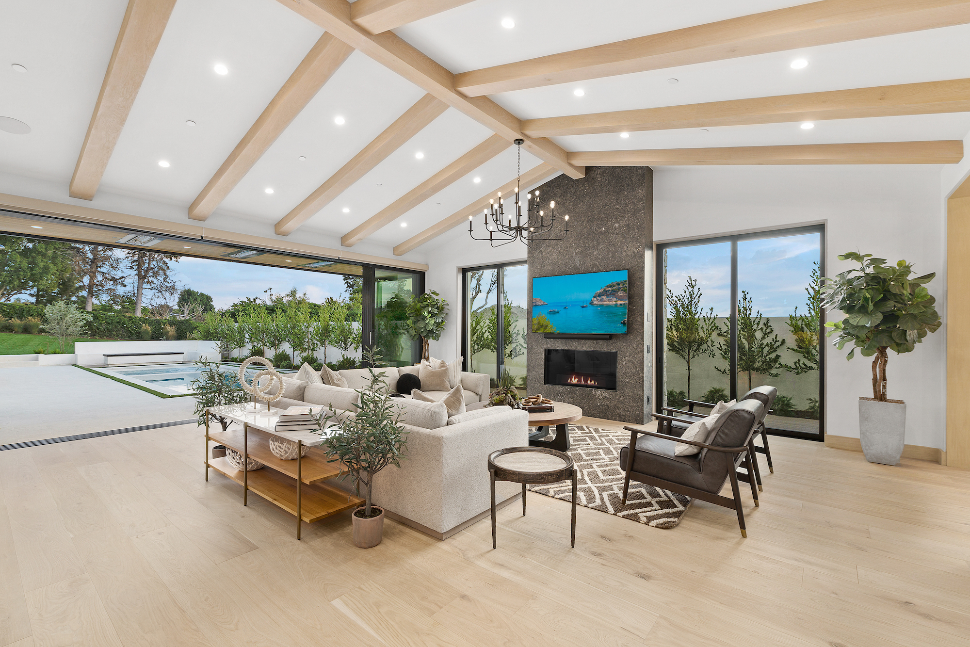 Introducing Corona del Mar s newest luxury retreat. Construction has just been completed on this modern architectural home set in the Irvine Terrace enclave. Situated on a flat lot of over 9,600 sq. ft. with direct access through a vast lawn space to Irvine Terrace Park, the design by architect Eric Aust embraces the highest quality construction and finishes throughout over 5,000 sq.ft.of single level living space, incorporating tumbled limestone slab and honed marble offset by rich, antique brass for a bold yet sophisticated look. Enjoy the massive open outdoor entertainment area, where a covered California room transitions to a sun-kissed pool and spa including a sitting fire pit lounge and built-in barbeque.The modern open floor plan hosts a work-from-home office, separate media room and five en-suite bedrooms, including a decadent primary suite with his-and-her walk-in closets, spa-like bath, private fireplace and multiple exterior access points. The light-filled great room with tall vaulted beamed ceilings is ideal for entertaining and day-to-day relaxation. From there, effortlessly move the dining space with dual wine vaults or outside through vast sliding doors and casual dining at the kitchen waterfall edge island. An additional dirty kitchen with walk-in cooler and range allows flexibility for events. The separate Two-door, three-car garage allows ample vehicle parking. The fully integrated smart home system adds all modern amenities to be expected in a home of this caliber. A true modern masterpiece, be the first to live in this brand-new jewel of Corona Del Mar. Centrally located and nearby to Fashion Island,Balboa Island, Newport Country Club, Balboa Bay Club all local dining and shopping.