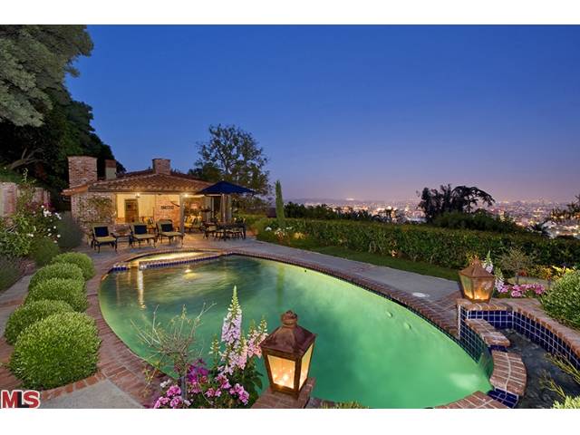 Exquisitely restored the early Mediterranean with the city to ocean views. Located in prestigious Outpost Estates enclave of the Hollywood Hills. One-half acre with incredible and totally private pool, spa, and cabana with outdoor kitchen. Formal living and dining rooms, center isle kitchen, wood-paneled den, library and 2 bedroom suites in the main house. Guest suite with separate entry. Gracious room proportions, luxury finishes, modern upgrades and superb outdoor living offer a privileged lifestyle above the city, yet moments away.