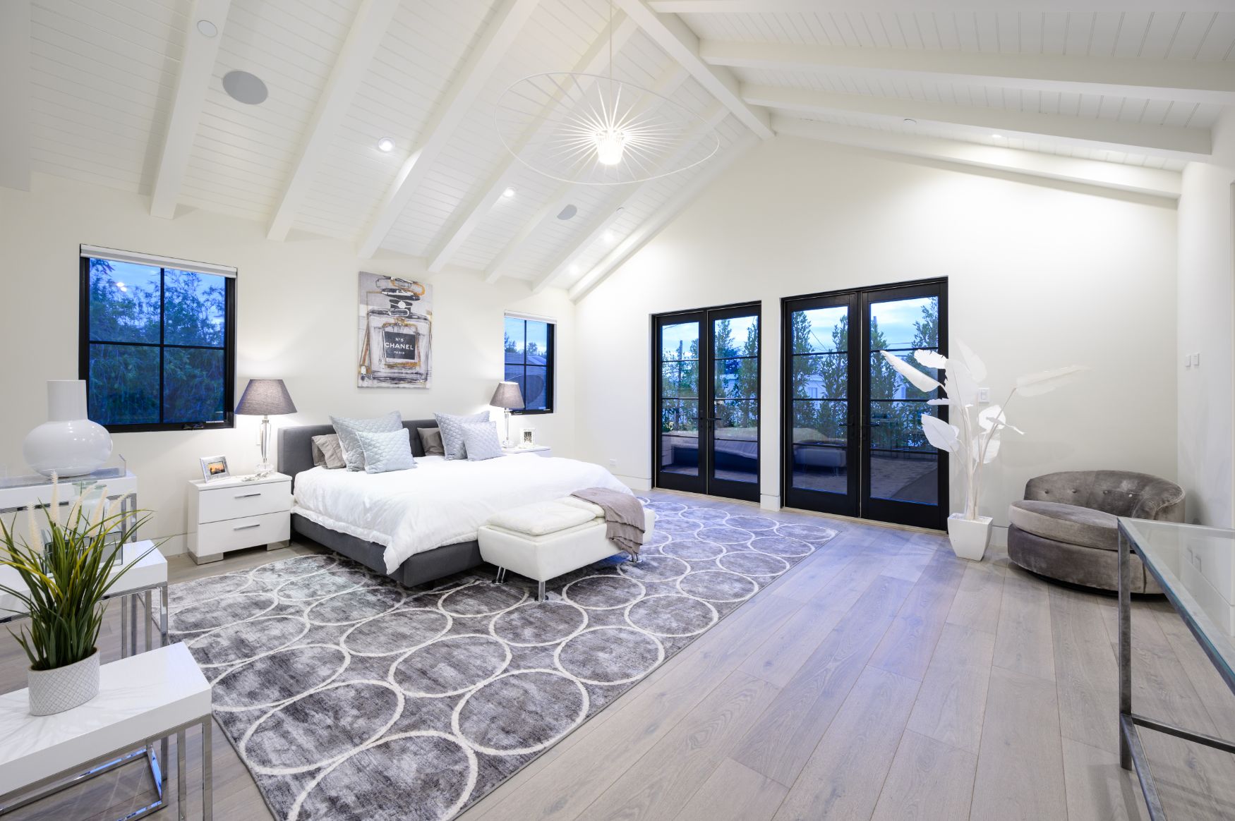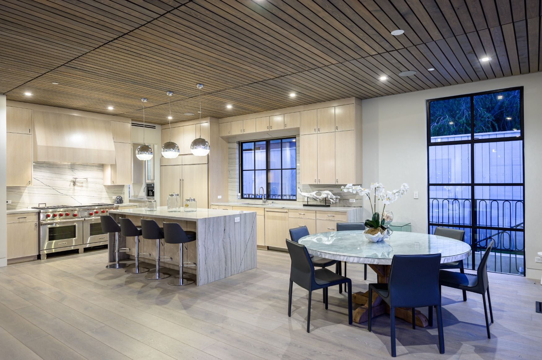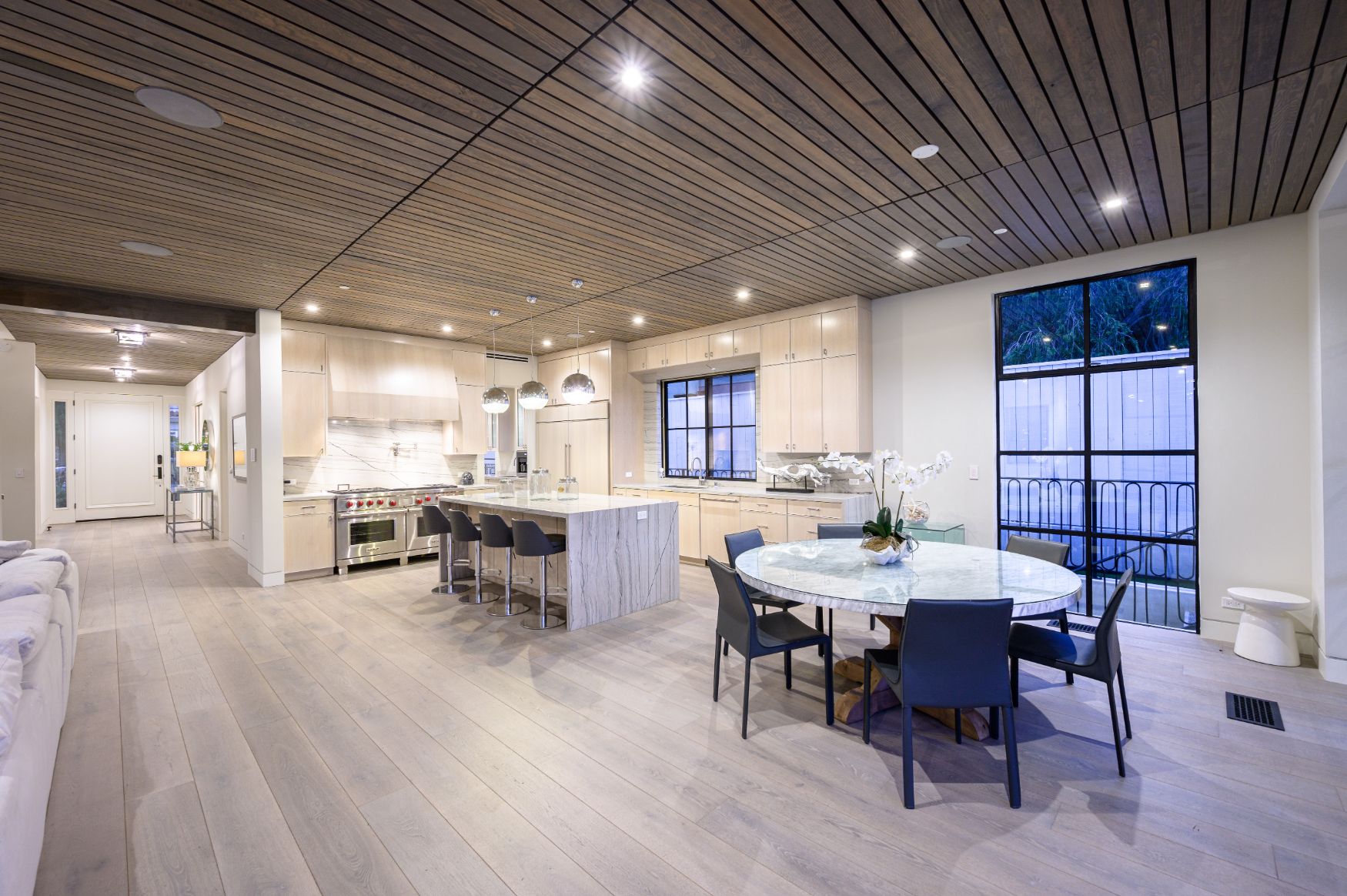 A beautiful infusion of contemporary and traditional style, this 5 bedroom, 6 bathroom home gives you the ultimate in California luxury living located North of Montana. Recently completed, the stunning architectural was completed with the highest end finishes and attention to detail. Perfect for entertaining, the open floor plan showcases volume, steel casement windows and seamless indoor/outdoor flow. The main living floor boasts a sun-filled living room, impressive dining room, office, gourmet kitchen and family room with breakfast nook opening to a heated loggia with fireplace. Upstairs features grand master suite with vaulted ceilings, large walk-in closet, and a luxurious master bath. All other bedrooms have either en-suite or jack and jill baths. The lower level is outfitted with a guest suite and fully equipped movie theater, yoga room, pocket door enclosed lounge. This home sets the bar for Westside luxury living. Truly a must see!