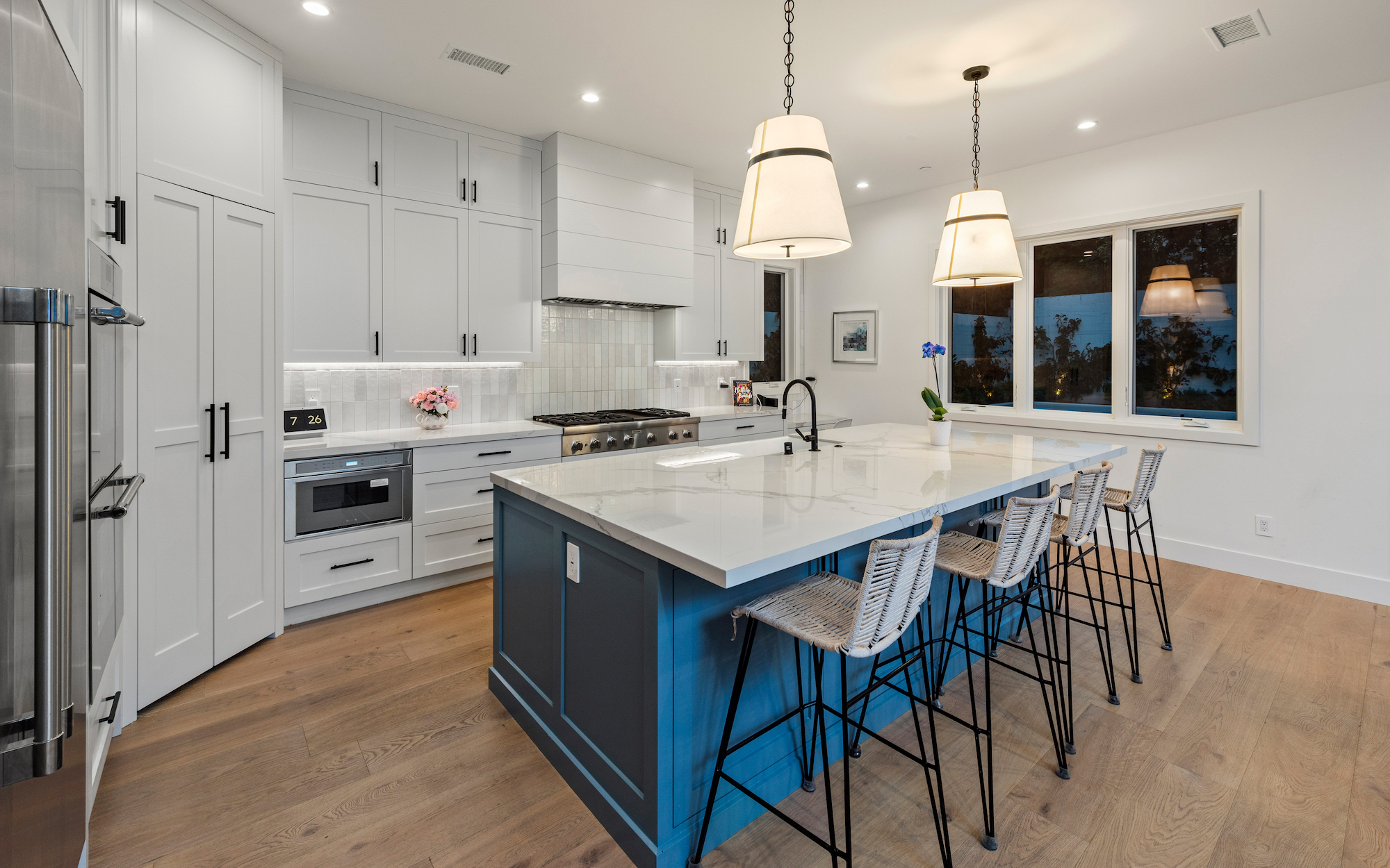 Remarkable 2022 New Construction Modern Farmhouse situated in the highly sought after Manhattan Beach neighborhood featuring ~5,000 square feet with 7 bedrooms and 8 bathrooms. From the inviting exterior to the light and airy open floor plan, every detail is meticulously crafted to embrace the vibrant indoor/outdoor beach lifestyle. Created by renowned designer CMS Interior Design, Inc., this masterpiece welcomes you with a blue Dutch-door entry and features a Chef's kitchen with top-of-the-line appliances, custom cabinetry, and elegant European wide-plank, white oak wood flooring throughout. Unwind by the custom-designed fireplaces and take advantage of the three-stop elevator leading to the lower level with a custom bar, media room, and gym. This extraordinary home showcases eco-friendliness with an LG solar system and offers a spacious backyard with lush landscaping and a covered patio with heaters. Conveniently located near the beach, downtown Manhattan Beach, and award-winning schools, this residence seamlessly blends luxury and practicality. Experience a lifestyle beyond compare in this captivating oasis. ** PROPERTY IS BEING OFFERED FULLY FURNISHED AT $21,000/MTH. **
