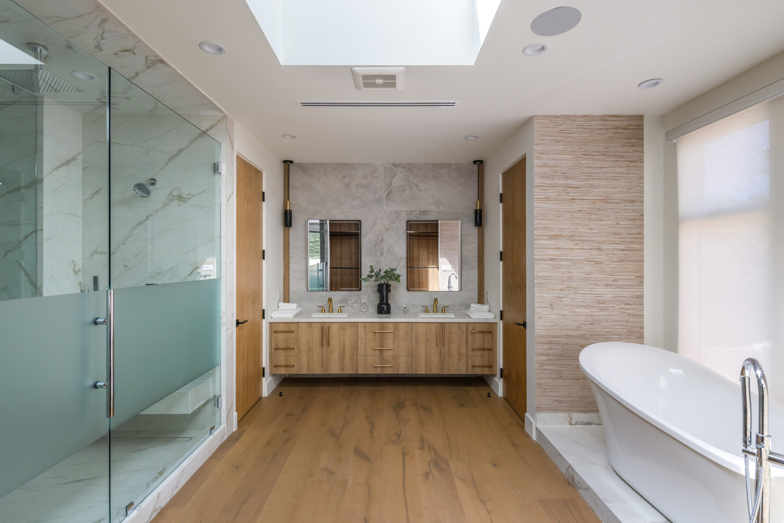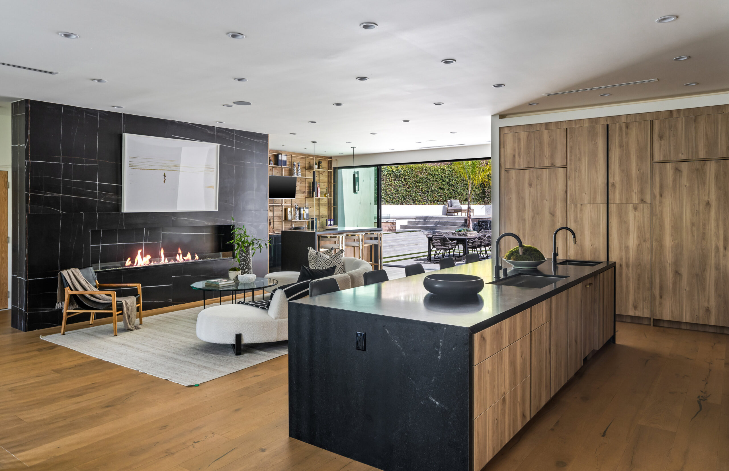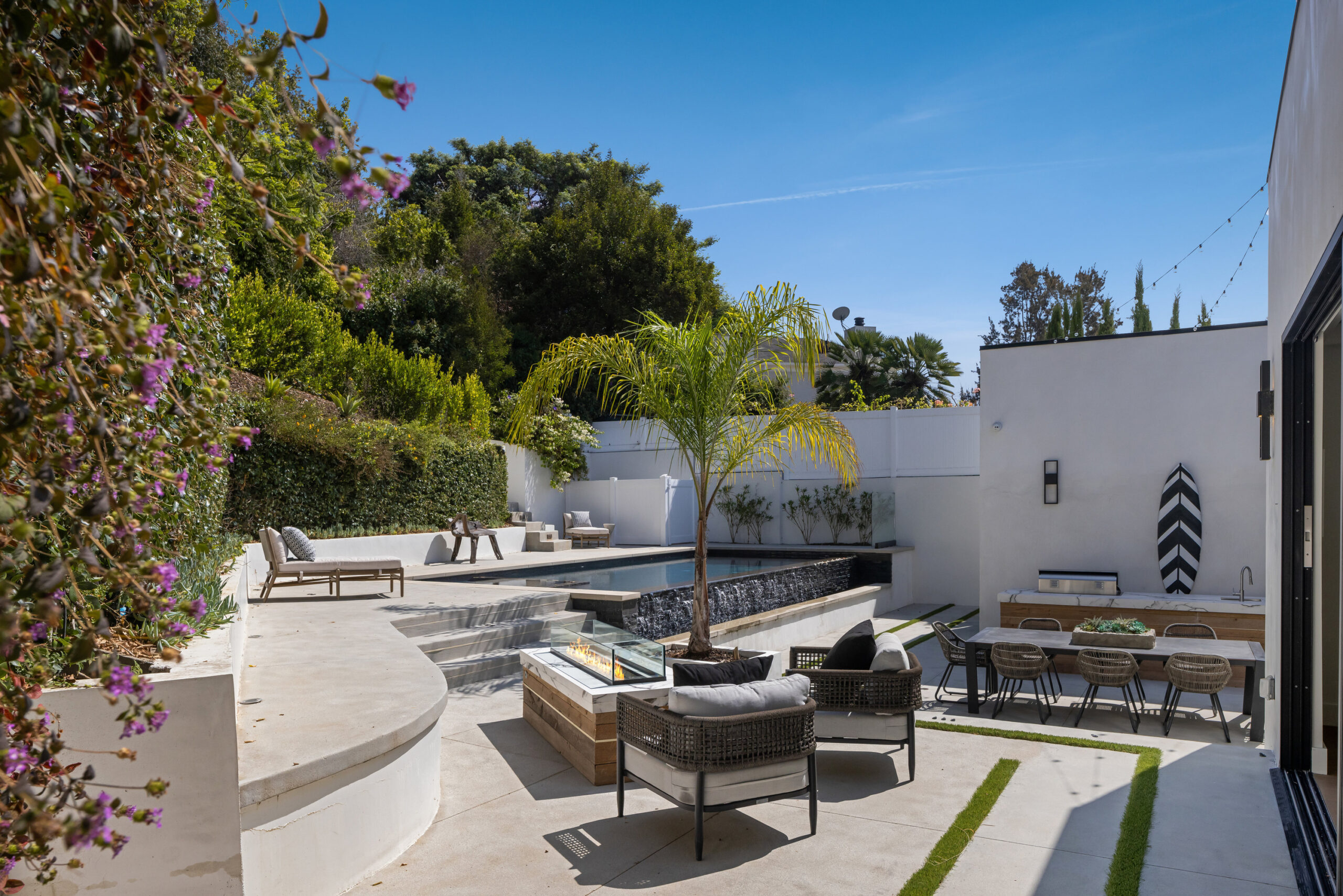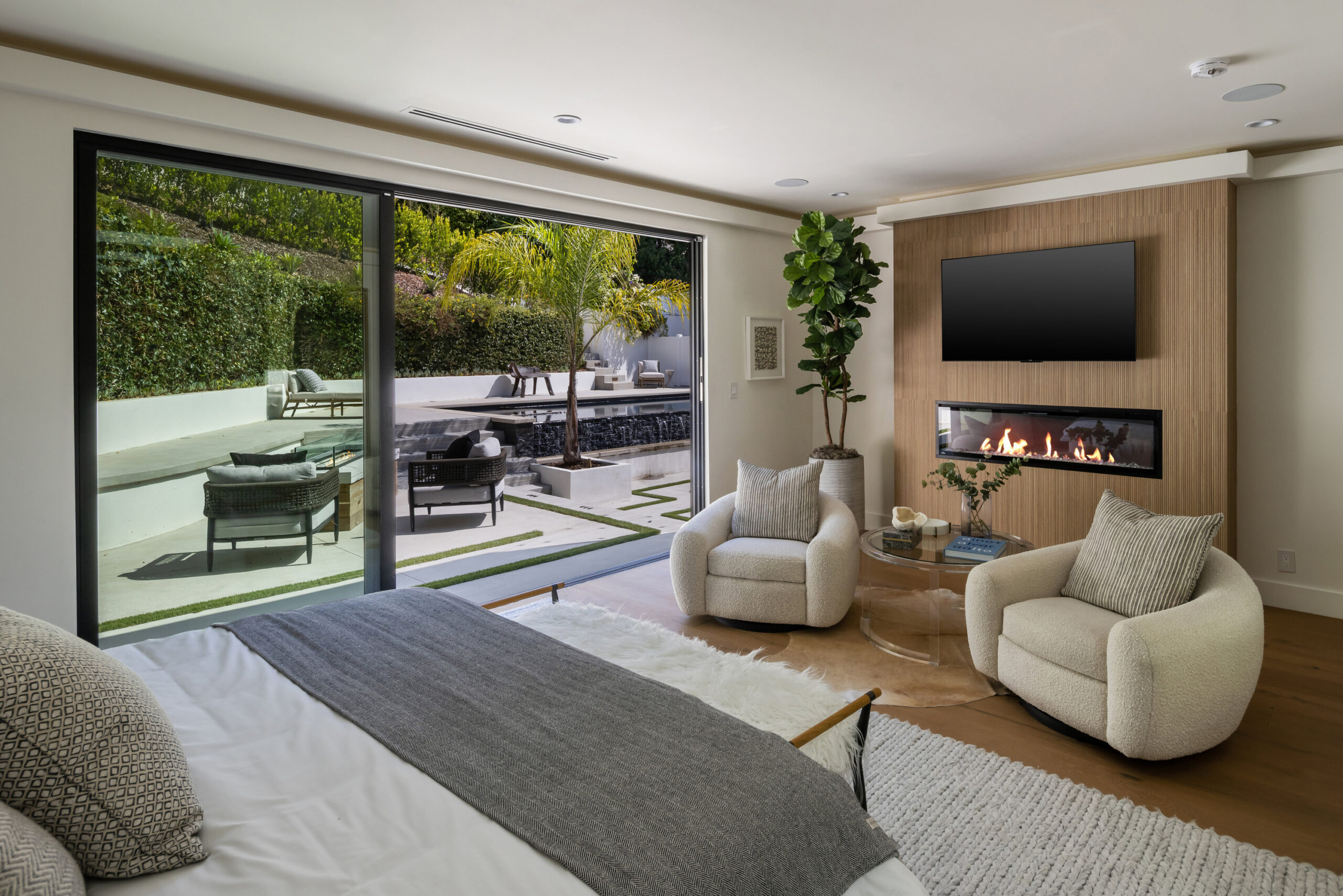Tucked within the prestigious enclave of Little Holmby Hills, this modern masterpiece epitomizes the zenith of luxury living. Offering a seamless blend of opulence and functionality, this stunning residence boasts an impressive array of features designed for the discerning homeowner. Upon entering, you're welcomed by the timeless grandeur of Brazilian-imported stone, which elegantly graces the home. The gourmet kitchen is outfitted with sophisticated Dacor appliances, complemented by sleek music-black stone countertops and pristine white French oak floors that flow through the open-plan living spaces. Flooded with natural light, the home's interiors effortlessly merge with the outdoors through Fleetwood sliding doors, revealing lush views. A Control 4 smart home system enhances convenience, providing effortless control of security and entertainment. The home theater, featuring a Samsung 3.1 channel DTX Virtual X sound system, elevates movie nights to cinematic proportions. A custom backlit entry wall by acclaimed designer Mario Romano sets the tone for the home's refined aesthetic. Ascending the floating staircase to the upper levels, or opting for the convenience of an elevator, you'll find multiple indoor and outdoor fire features adding warmth and romance throughout. The Jandy Pool & Spa system, with its infinity waterfall, offers endless relaxation. Hosting gatherings is effortless with the outdoor BBQ island, perfect for al fresco dining. Additional features include a three-car garage and a large walk-in pantry, ensuring ample storage and ease of living. This residence stands as a testament to modern luxury, enhanced by cutting-edge technology and meticulous design. Ideally located near UCLA, this home offers an unparalleled opportunity to experience the epitome of contemporary living in one of Los Angeles' most sought-after neighborhoods.
