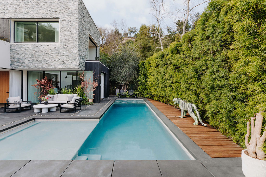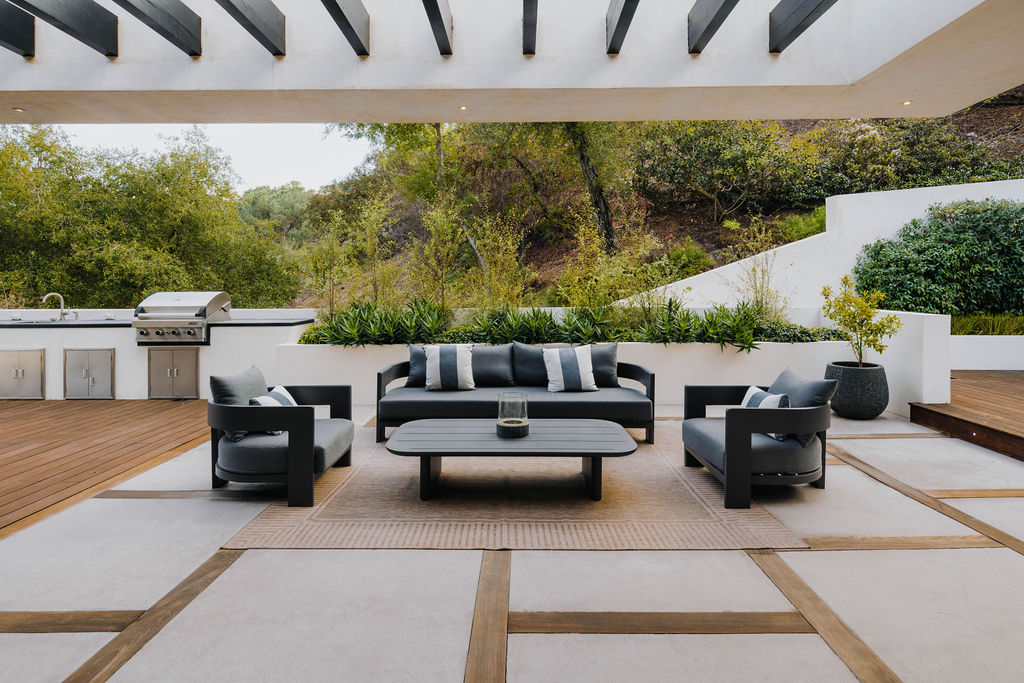 Experience the pinnacle of modern luxury with this stunning contemporary estate, seamlessly blending architectural brilliance and serene privacy. The expansive open floor plan is bathed in natural light, with floor-to-ceiling glass doors connecting indoor and outdoor living spaces. The gourmet kitchen features top-of-the-line appliances, custom cabinetry, and a striking island, flowing effortlessly into the elegant living and dining areas. The primary suite is a tranquil retreat with a private sitting area, spa-inspired bathroom, and views of lush greenery. Additional en-suite bedrooms, a state-of-the-art media room, and a luxurious sauna offer unmatched comfort and convenience. A fully-equipped home office and custom smart home technology enhance functionality throughout. The outdoor spaces are a true entertainer's dream, featuring a sparkling pool, spa, outdoor kitchen, and multiple lounge areas surrounded by impeccable landscaping. A covered patio and private terraces provide the perfect spots to unwind and enjoy the serene ambiance. With a gated entry, three-car garage, and unparalleled attention to detail, this home offers privacy, style, and modern sophistication, all within moments of local amenities. Don't miss the opportunity to make this one-of-a-kind retreat your own.