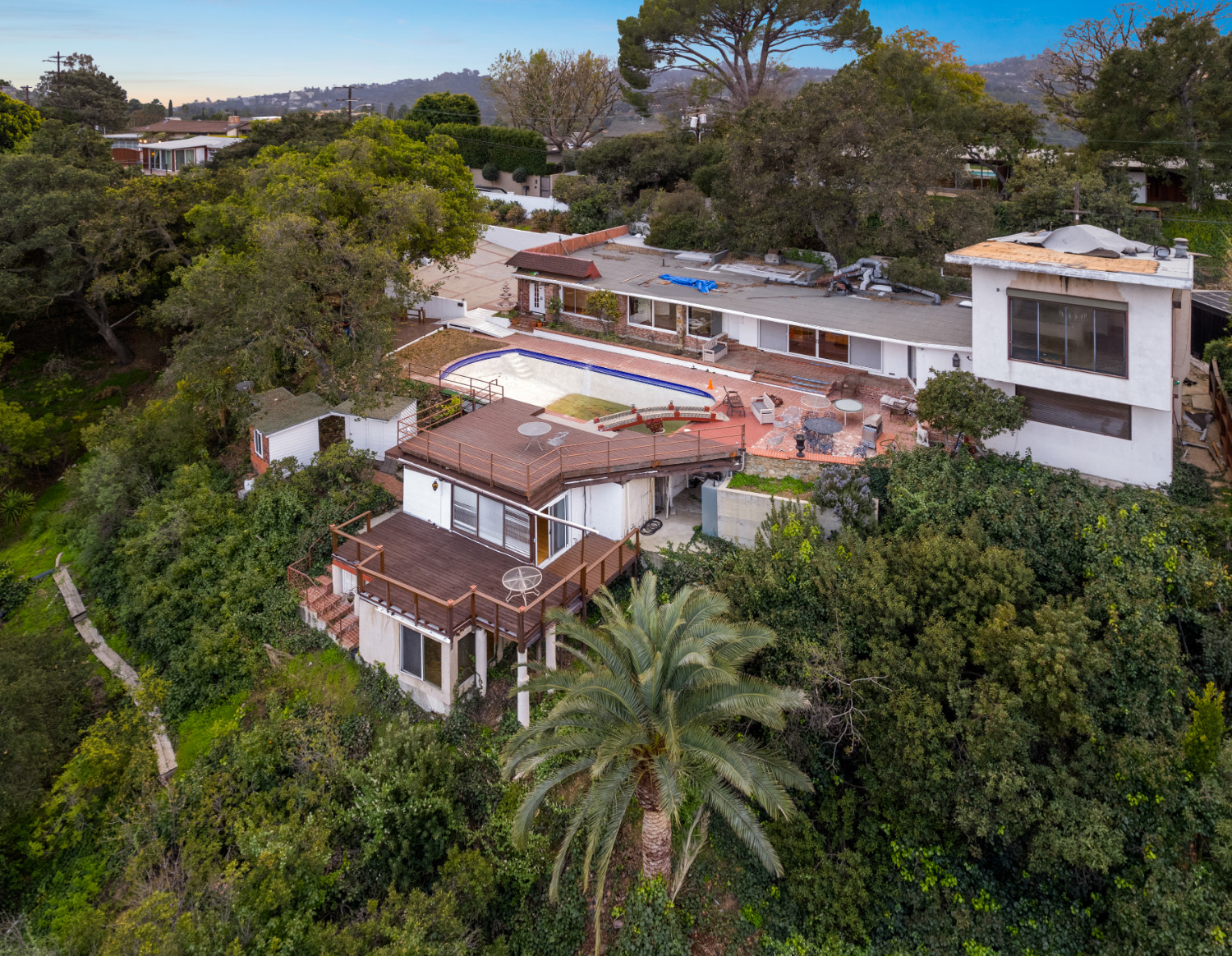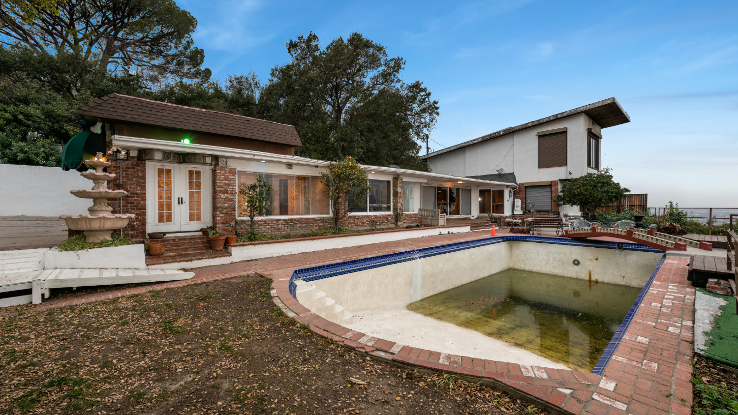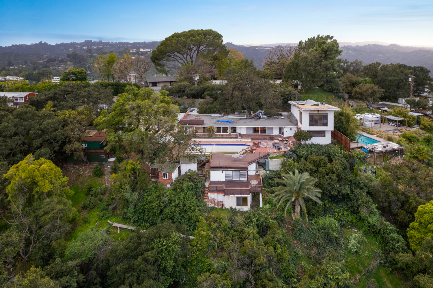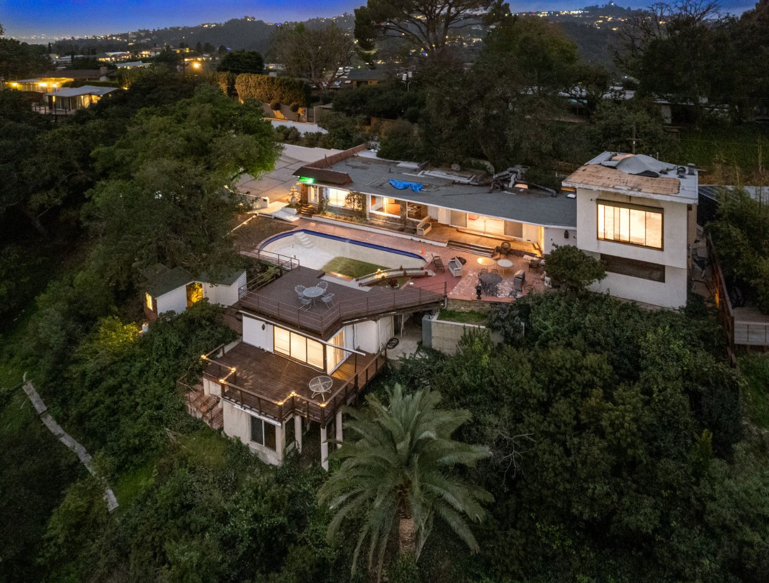 Incredible opportunity to be perched at the top of Hollywood Hills! Showcasing insane 180-degree jetliner city views, take in all that this large, gated and private lot has to offer! Existing home spans ~2,400sf with a spacious outdoor area and large pool deck. This home can either be extensively updated or could be the perfect development opportunity. Encompassing a ~28,500 square foot lot, this incredible home offers the chance to build a one-of-a-kind estate with one of the best views that the city has to offer!