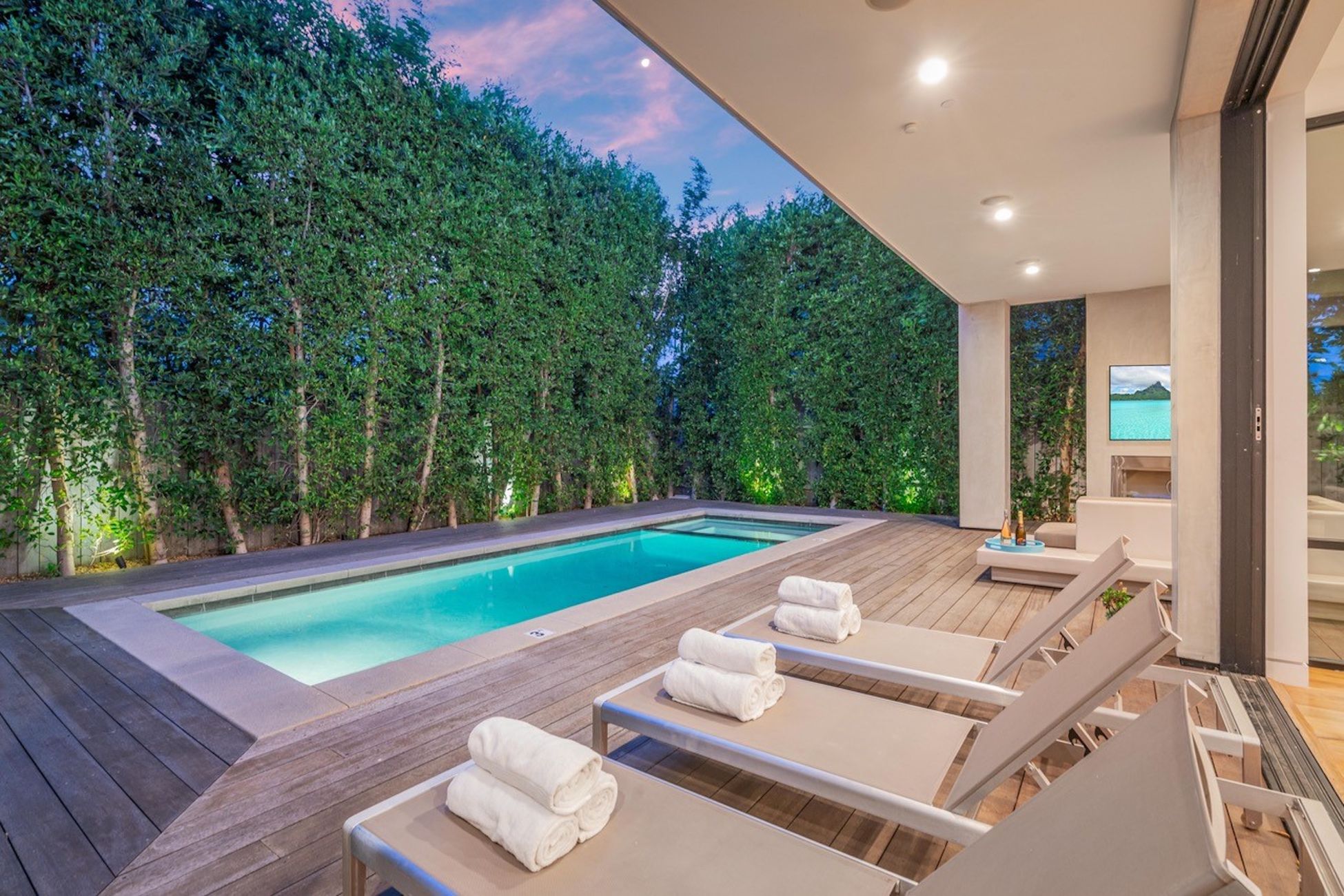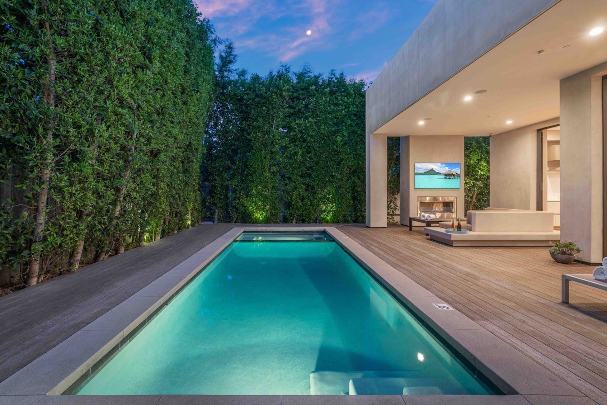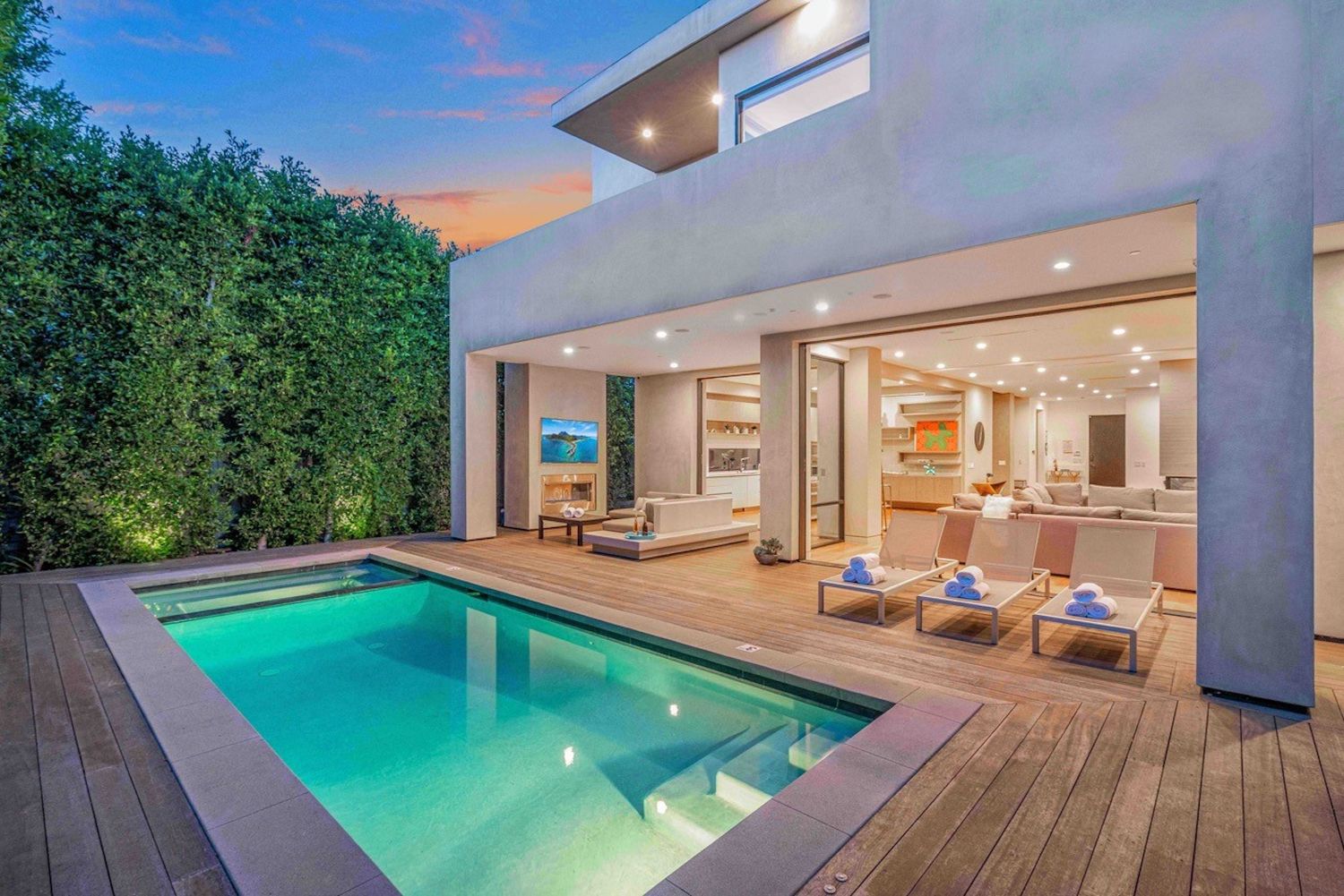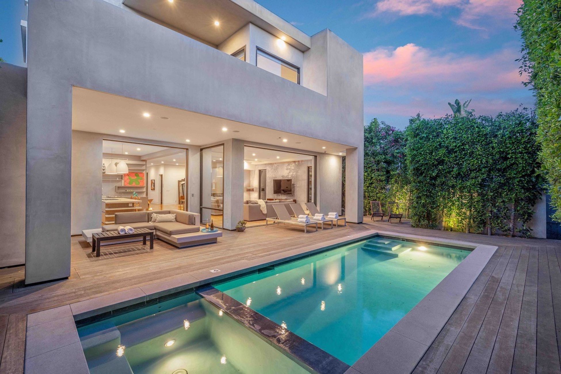 string(1004) "Stunning luxury villa located in the heart of West Hollywood between Melrose & Santa Monica Blvd. The new modern house is a hidden beauty for guests & families who seek absolute privacy while being close to all attractions. High-end finishes & technology including a Smart Home System & security cameras. Spectacular sunset views of LA & Hollywood Hills from the 1,600 sqft roof top deck w/ a fireplace. Gated & hedged for complete privacy in an elegant neighborhood with beautiful tree lines. Offering a modern private salt water heated pool & spa. 5 bedrooms, 6 baths w/ warm walnut floors. Spacious bedrooms w/ balconies, walk-in closets & walk-in showers. Gated entry leads to the open and airy atrium courtyard which opens to spacious living room of sheer elegance & impeccable architectural details. 16 ft ceilings offer great open floor plan w/ a large dining area. Fully-equipped kitchen appointed with stainless steel appliances, a five-burner stove and hood."
